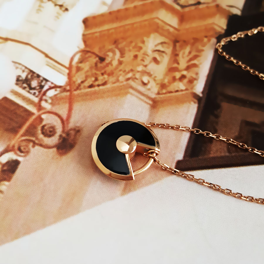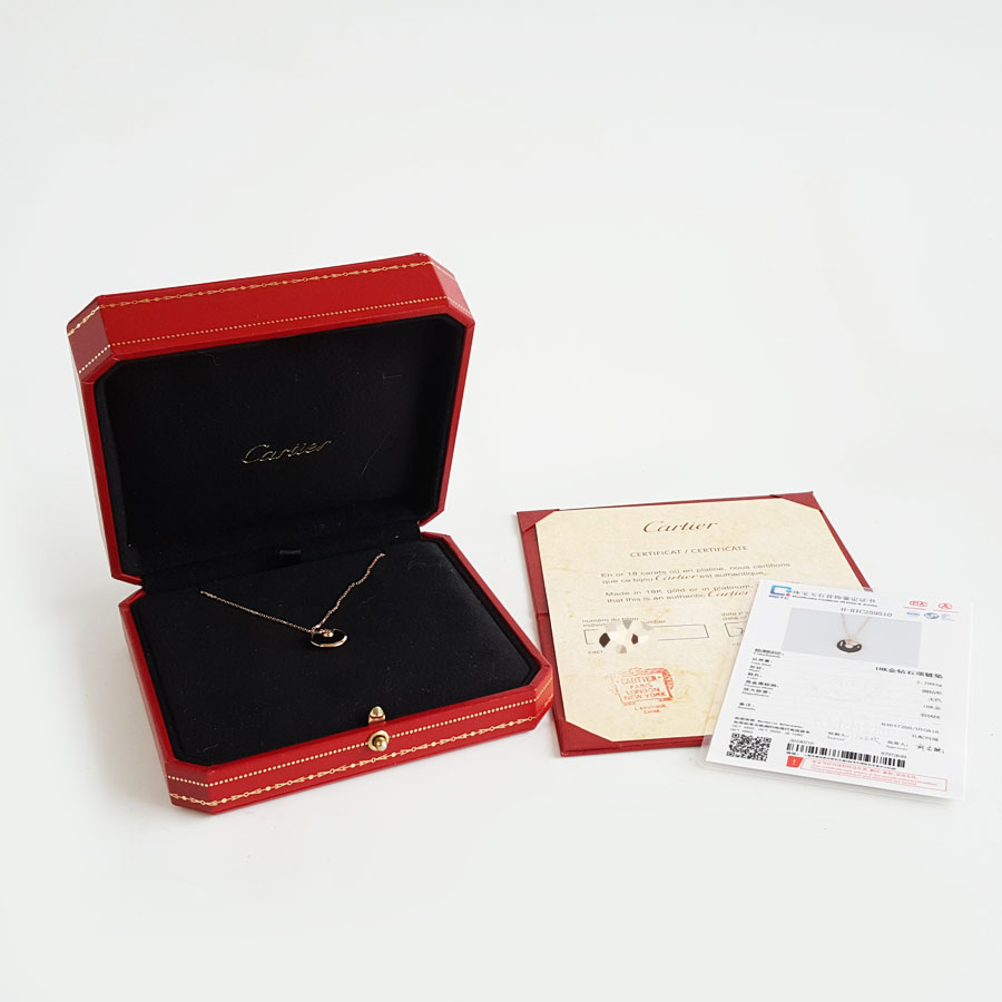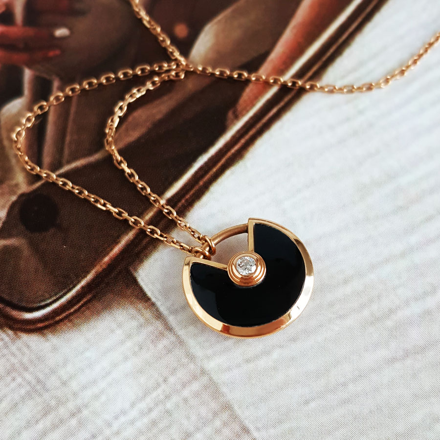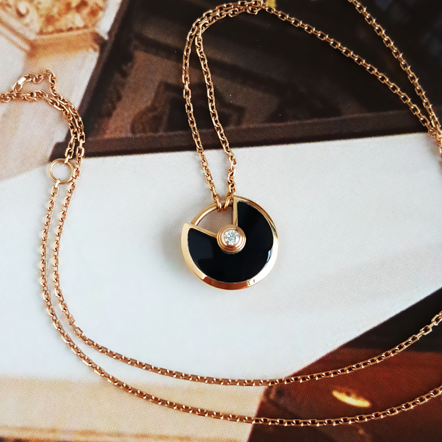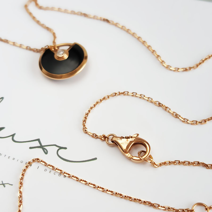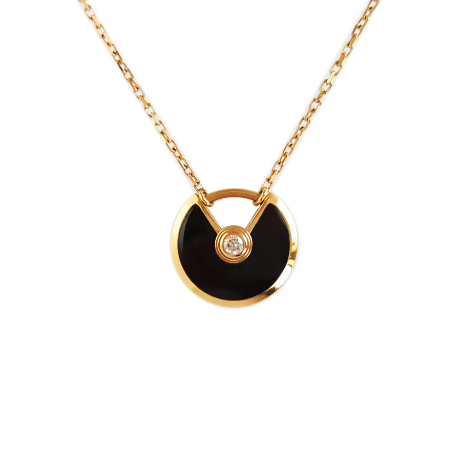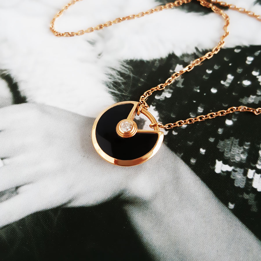 【95新】Cartier卡地亚Amulette de Cartier项链B3047200玫瑰金镶钻黑玛瑙护身符项链链长约41cm,吊坠直径12mm女士 060126AK19