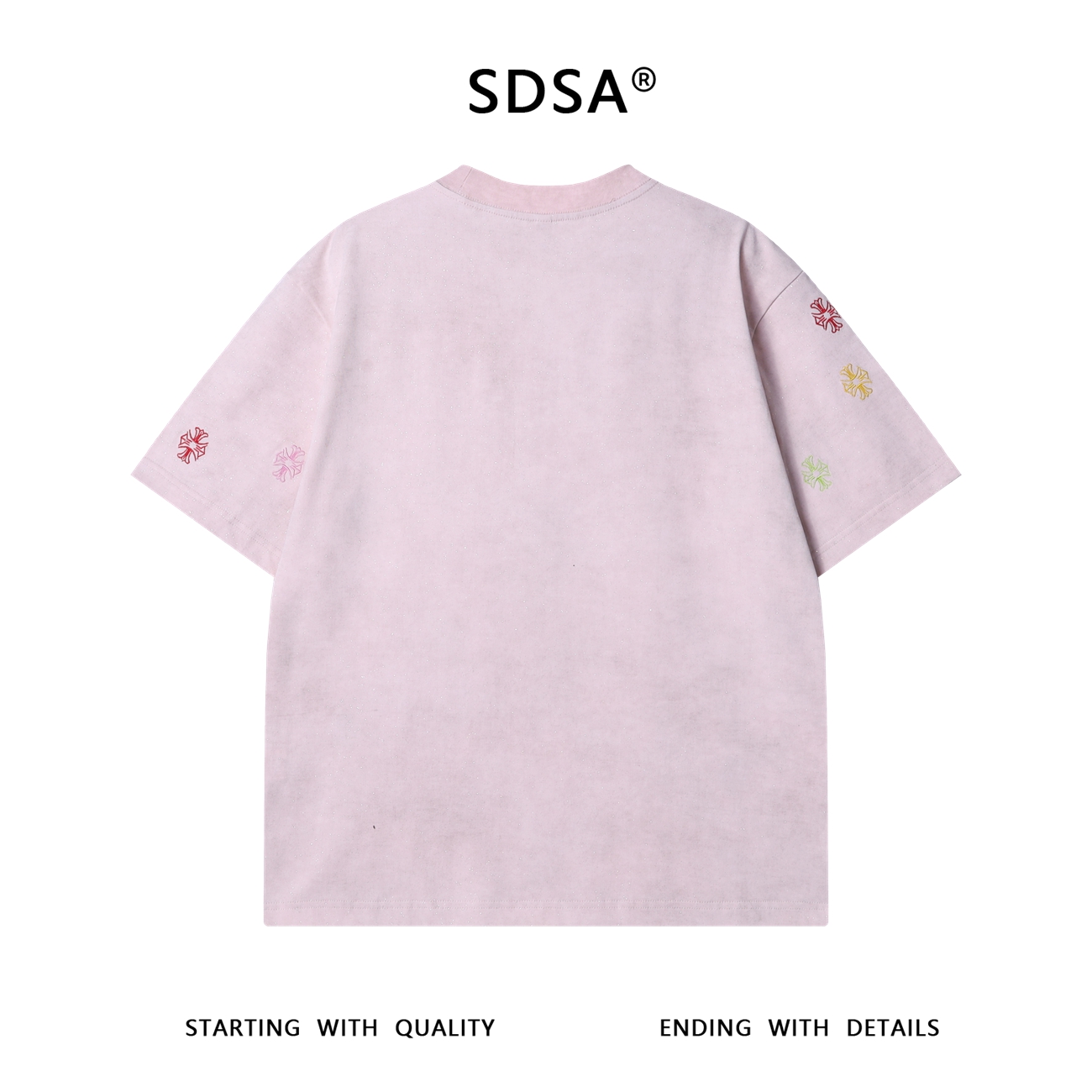 T3214夏季高级感新款韩系细闪彩色十字刺绣圆领短袖T恤百搭简约上衣