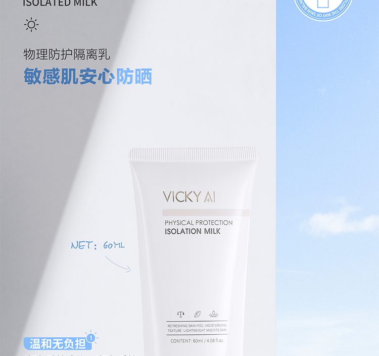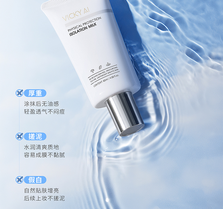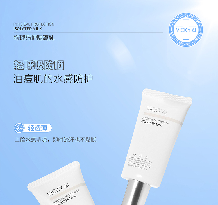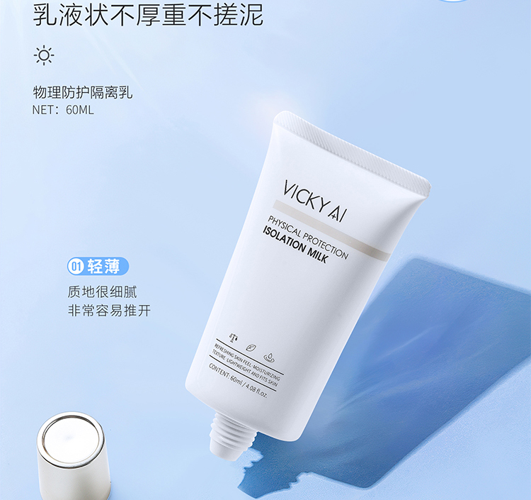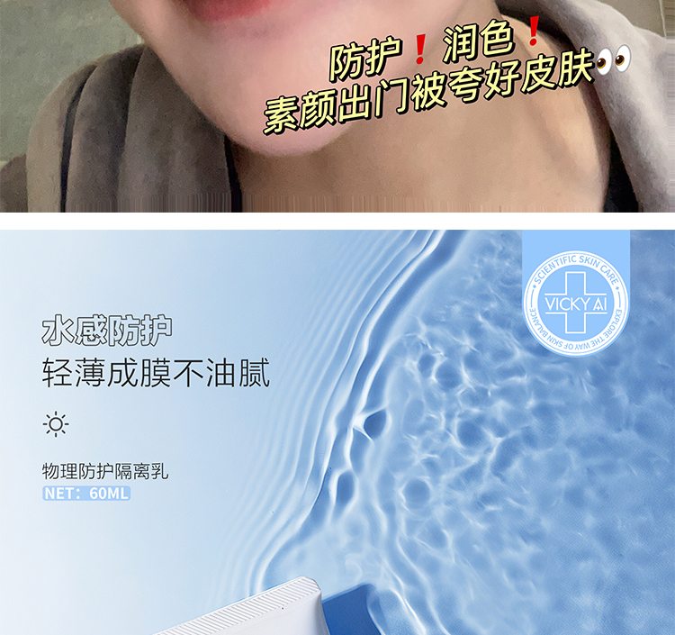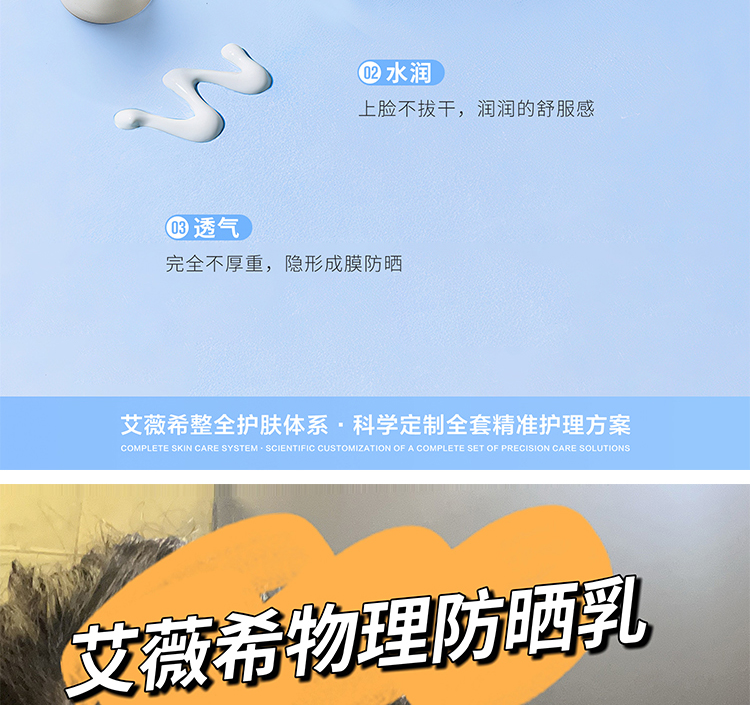 艾薇希清透温和防晒乳霜60ml纯物理不假白防紫外线