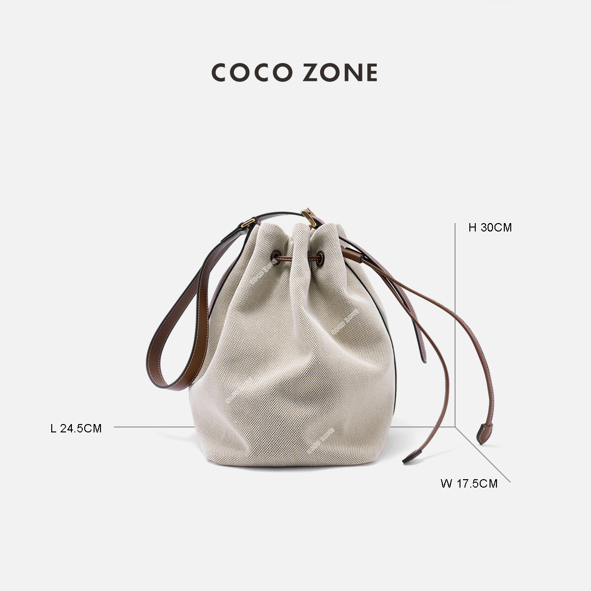 COCO ZONE 复古纯色简约百搭抽绳束口单肩包CC2B0962