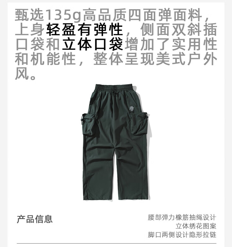 LUSHISI秋冬新款户外徒步吸湿速干轻盈舒适宽松口袋登山长裤徒行