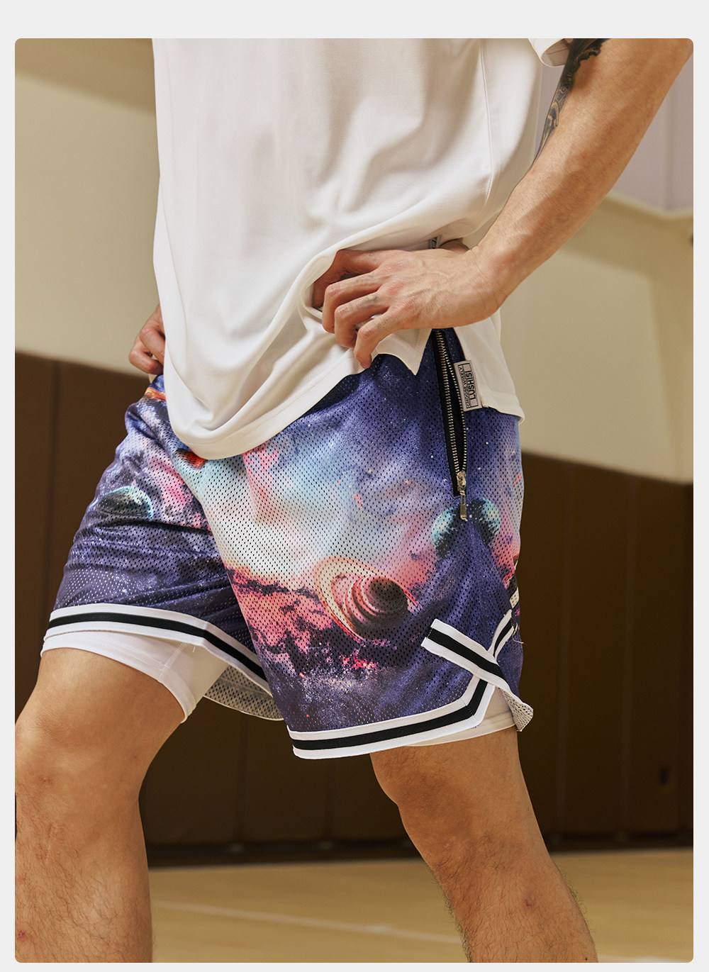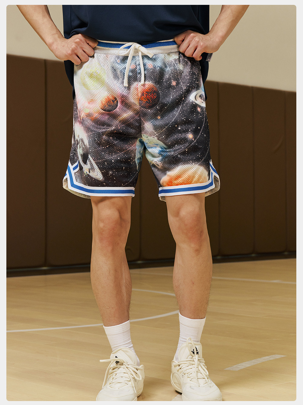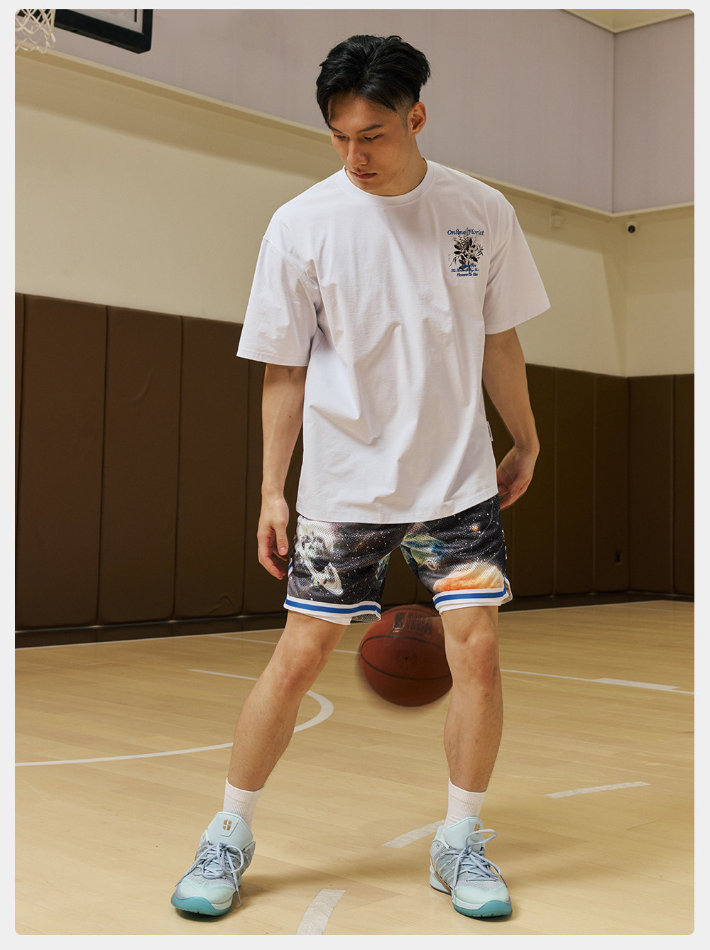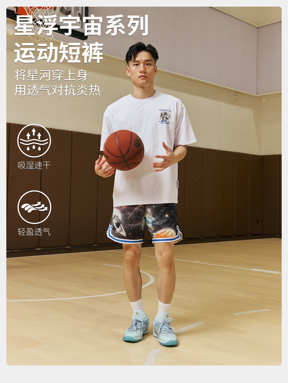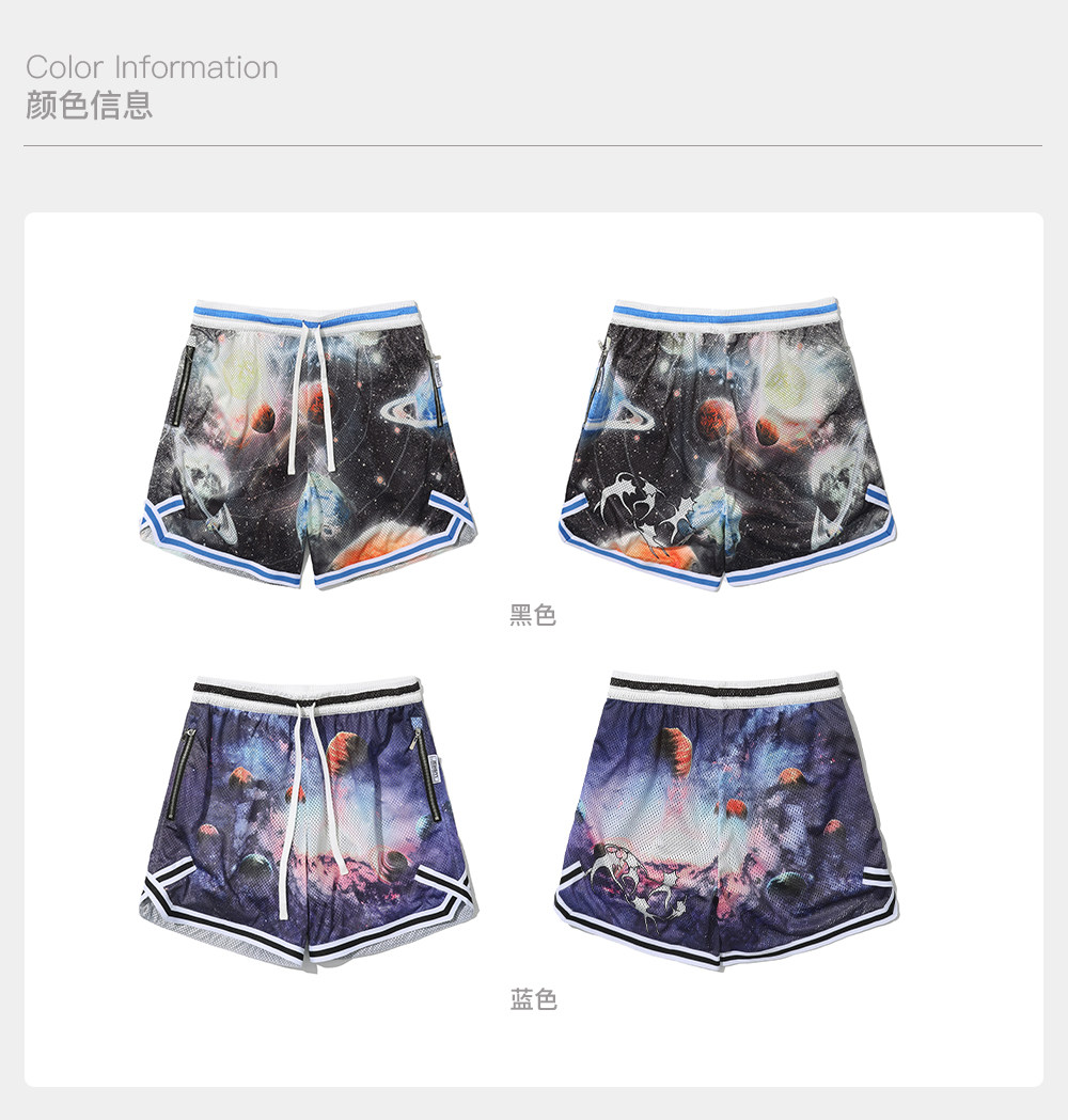 录士LUSHISI星浮主题美式四分短裤 数码印花吸湿排汗透气篮球裤男
