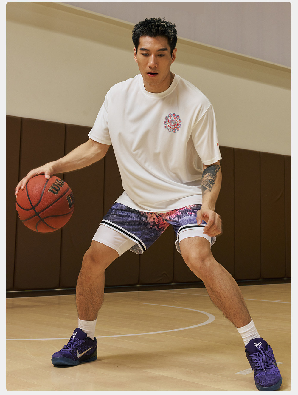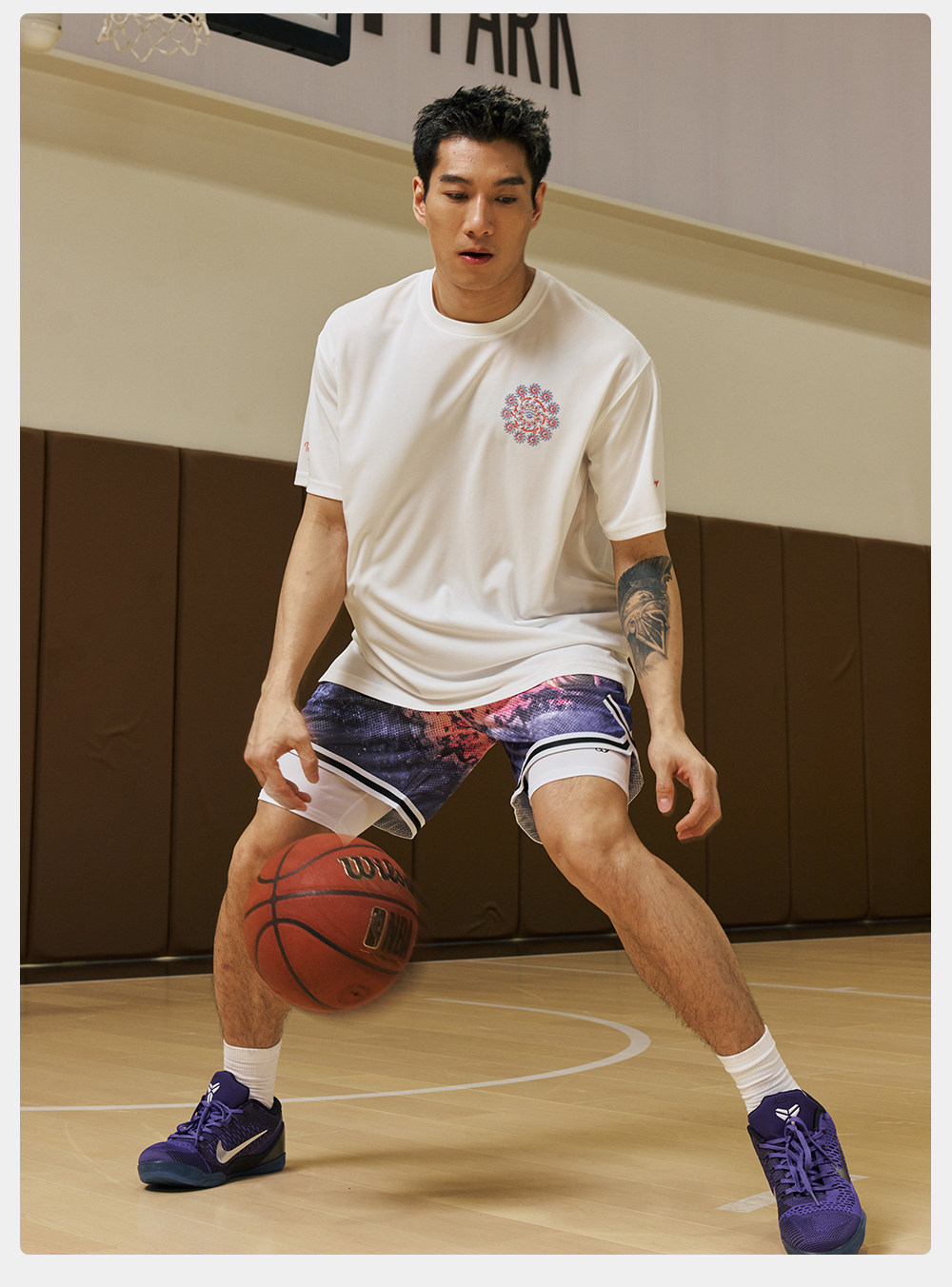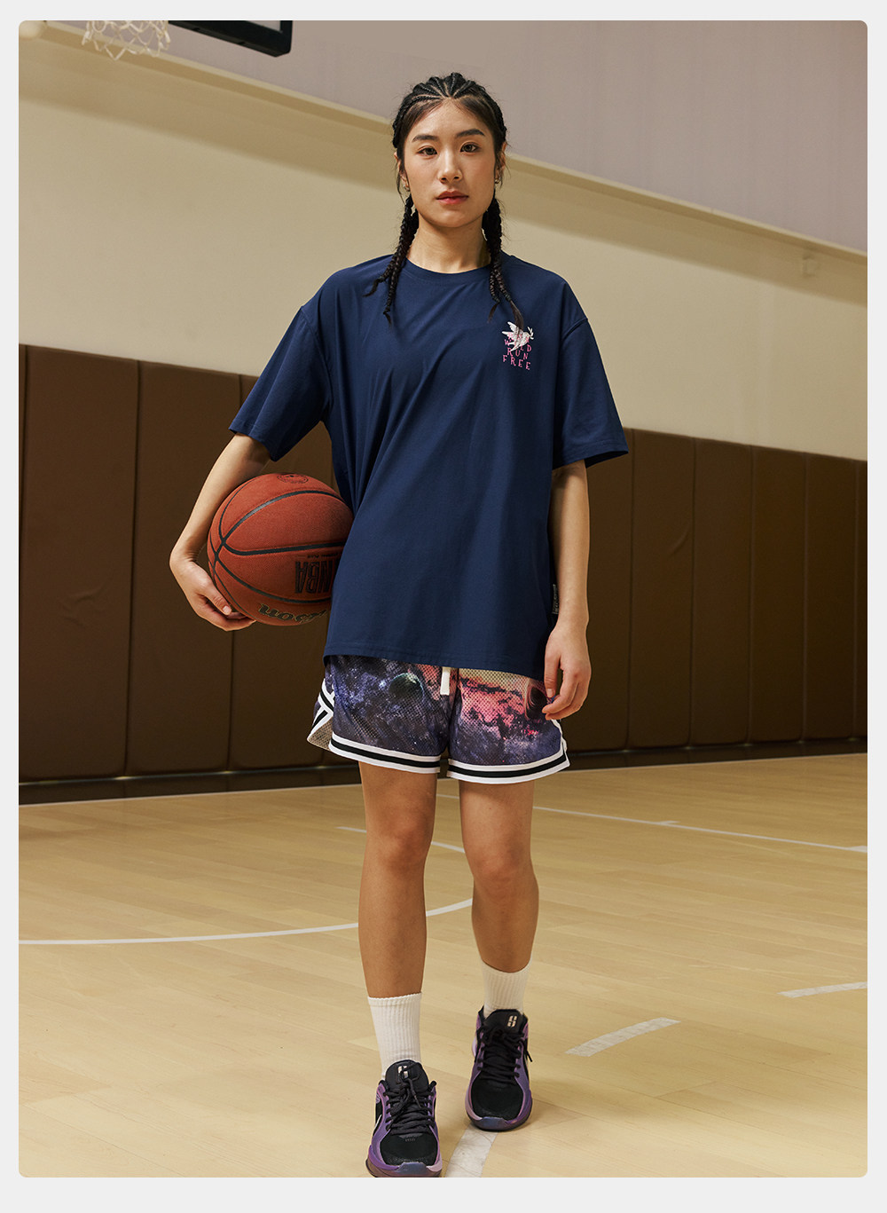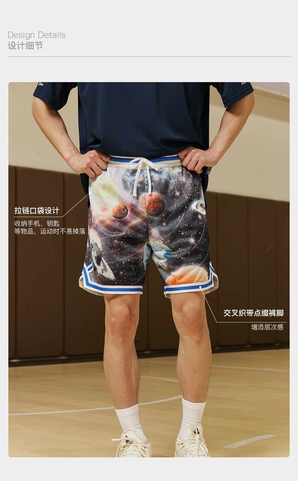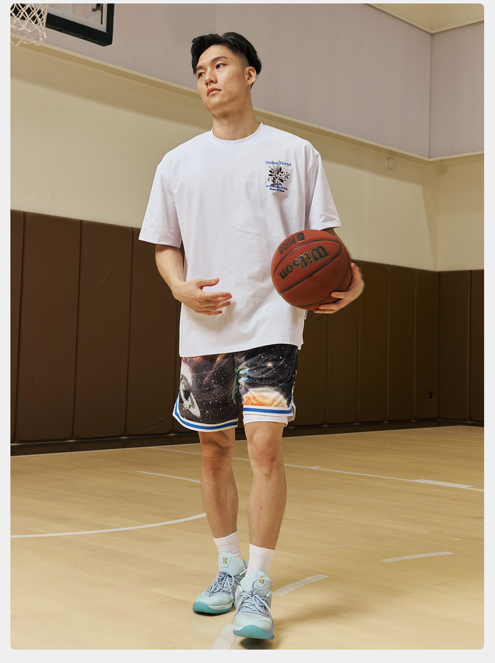 录士LUSHISI星浮主题美式四分短裤 数码印花吸湿排汗透气篮球裤男