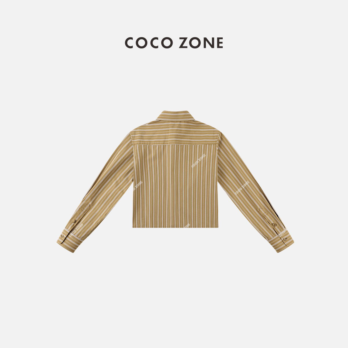 COCO ZONE莱塞尔天丝+棉条纹衬衫翻领长袖衬衣23C19179