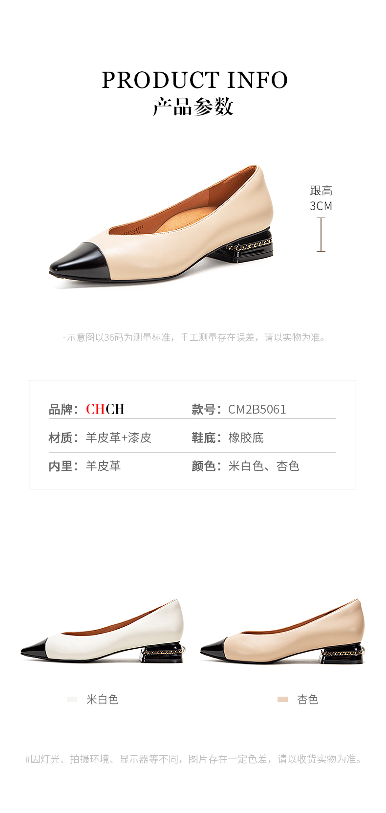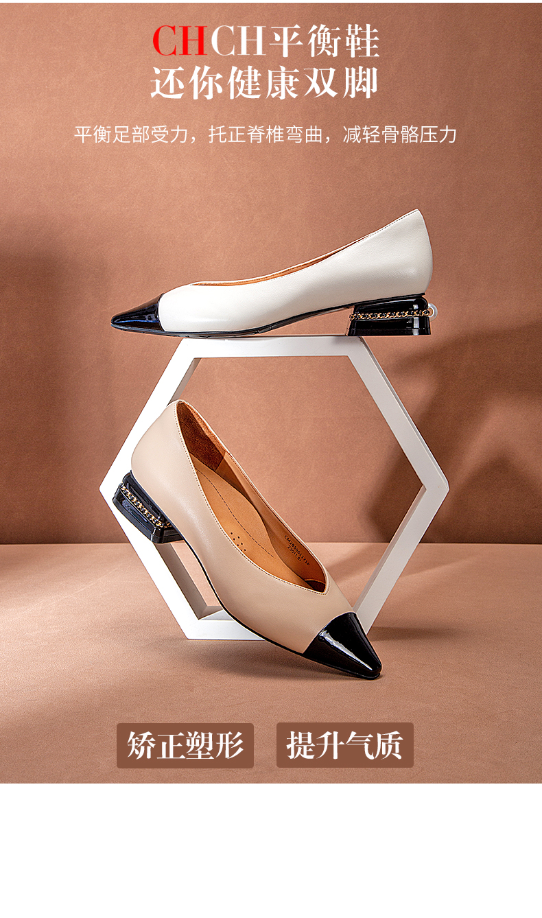 CHCH平衡鞋2025春夏新款牛漆皮粗跟女浅口单鞋不累脚CP1B5131