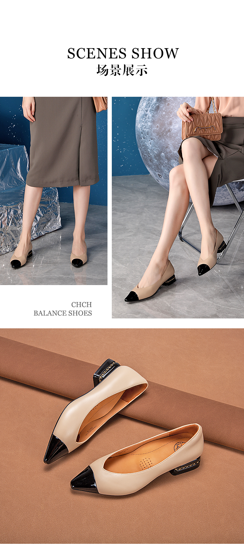 小香风优雅尖头24春夏CHCH潮牌真皮平底浅口平衡鞋单鞋女鞋