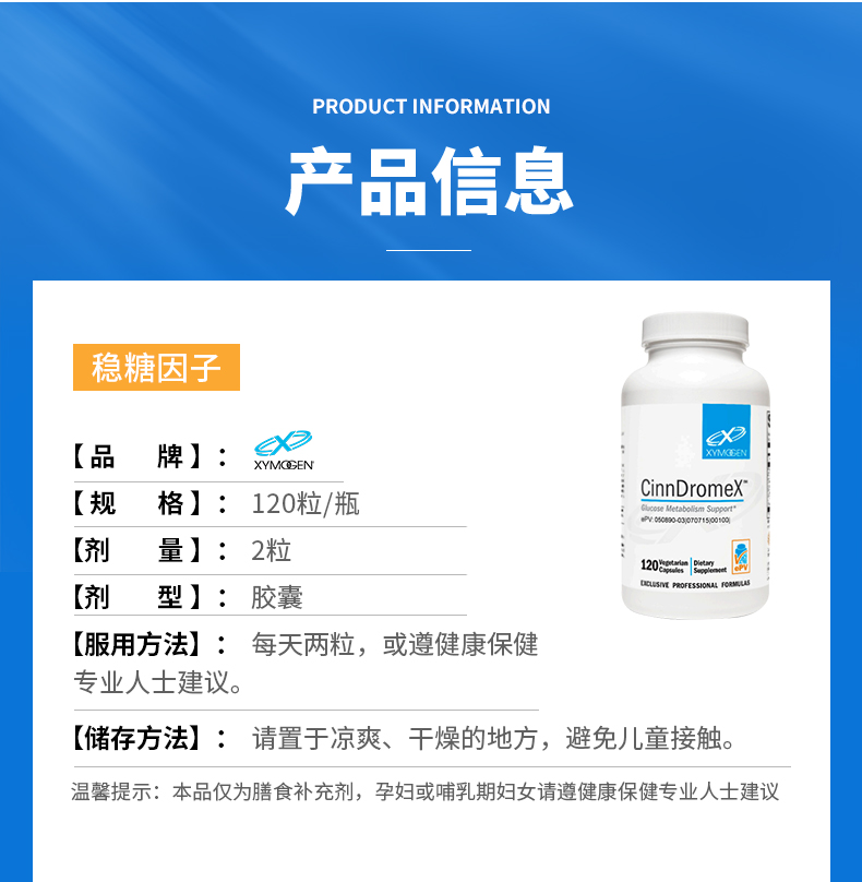【效期至27年2月】稳糖因子胶囊 XYMOGEN CinndromeX 120粒/瓶