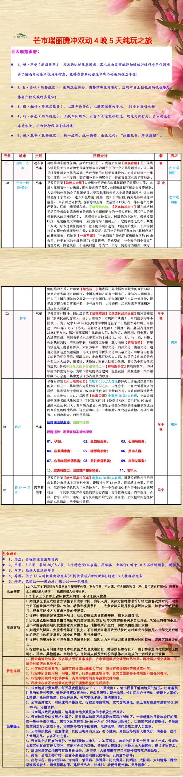 悦美滇西芒市瑞丽腾冲双动 4 晚 5 天纯玩之旅(YX)