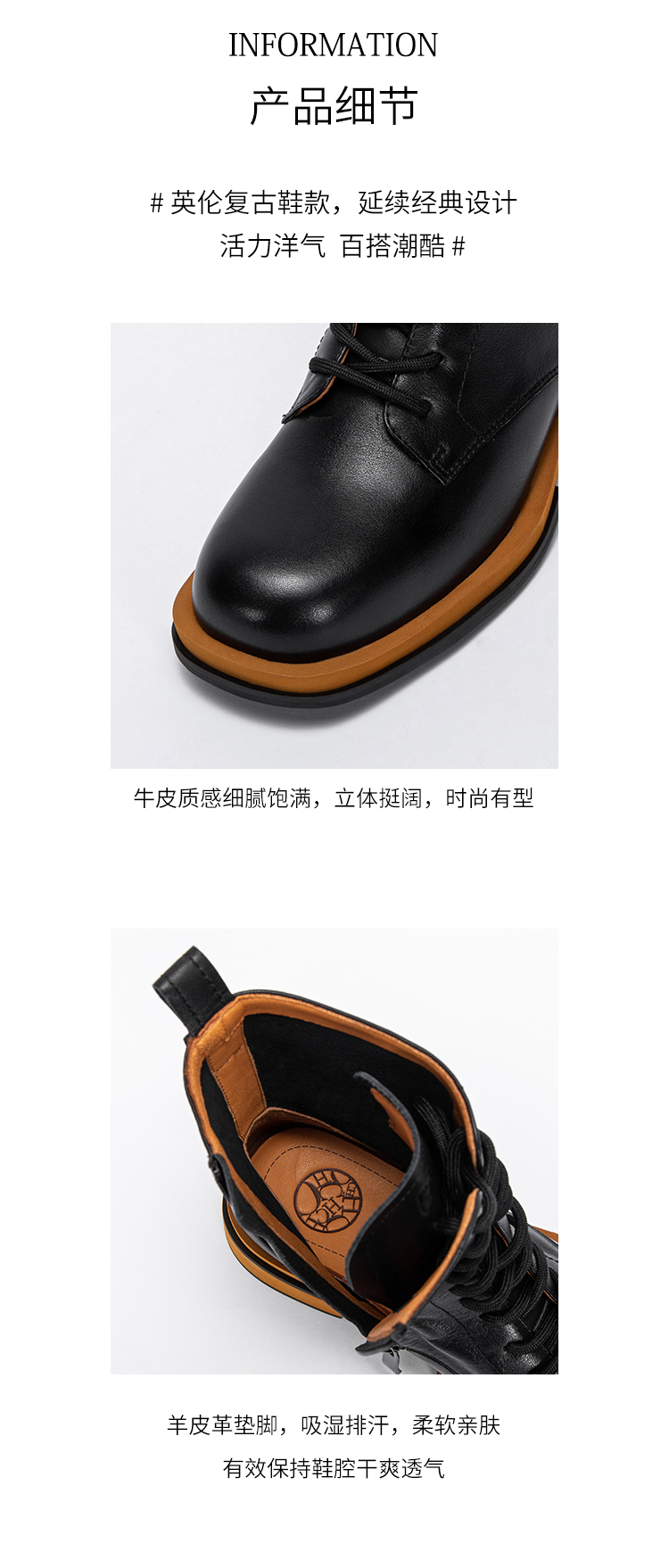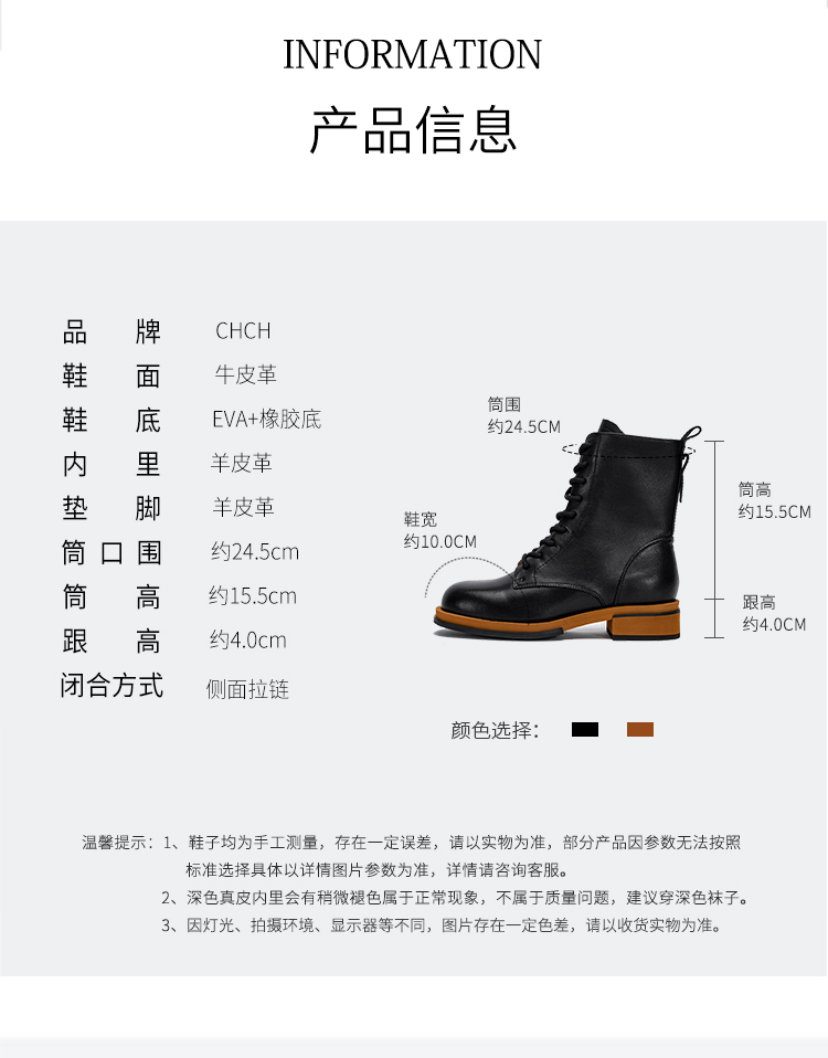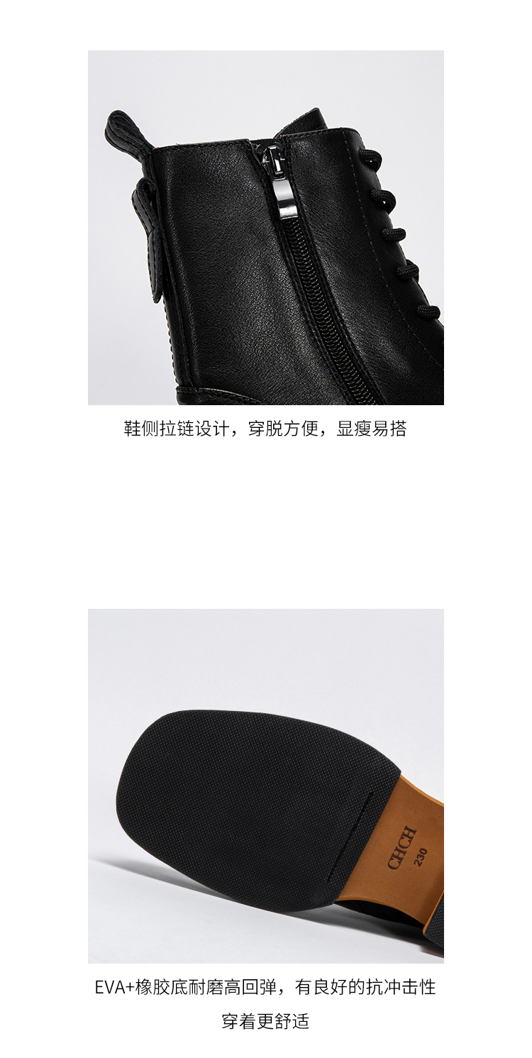 CHCH平衡鞋短靴2024秋冬新品拉链粗跟时尚女靴短靴马丁靴CN2B6141