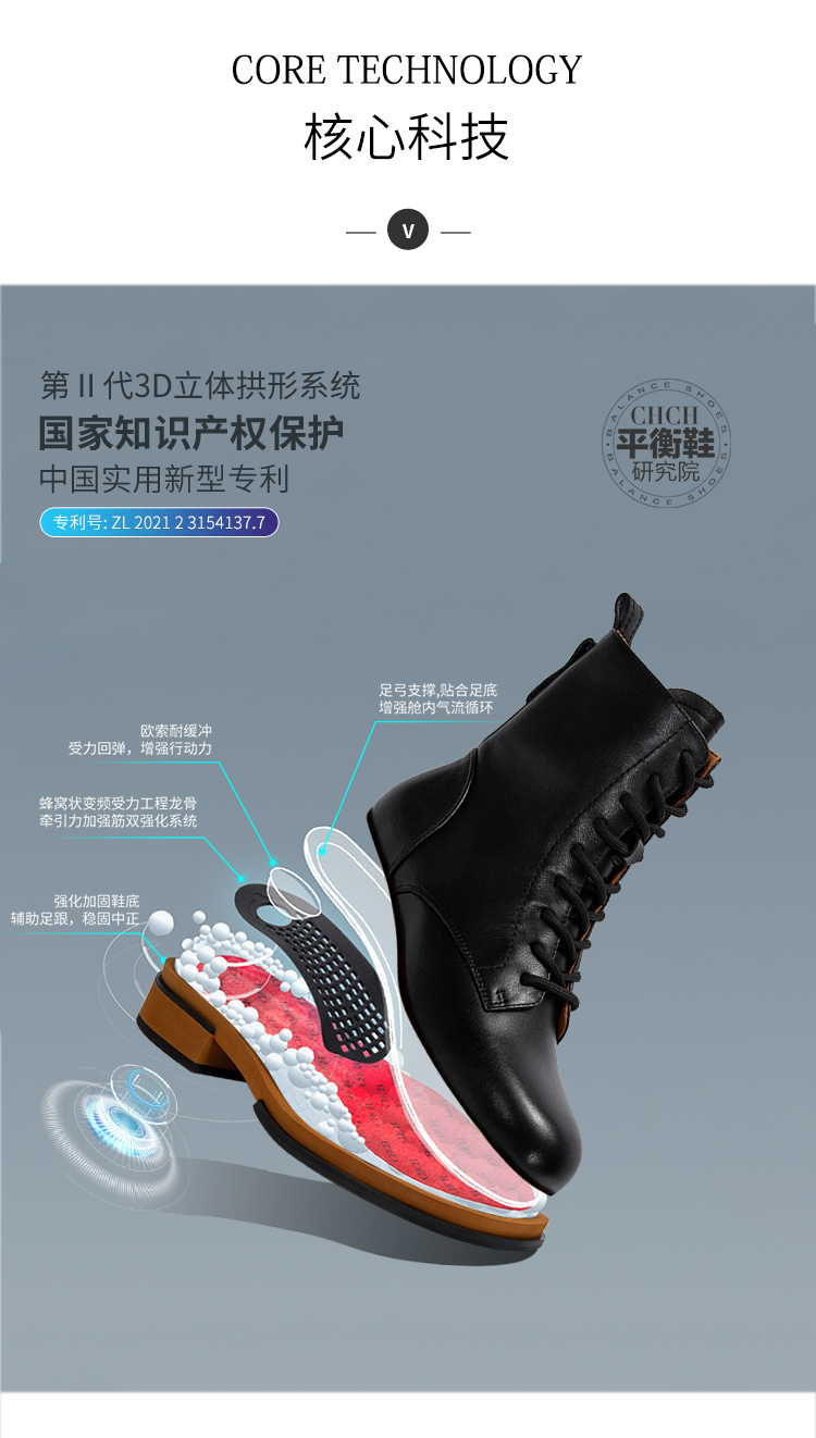 CHCH平衡鞋秋冬新款粗跟方头牛皮时尚女靴CM2B6111