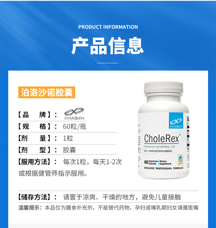 【效期至26年4月】泊洛沙诺胶囊 XYMOGEN CholeRex 60粒/瓶