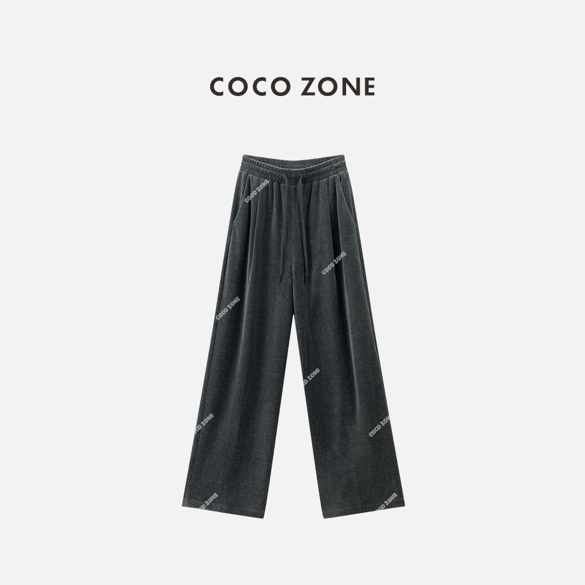 COCO ZONE 复古松紧腰休闲裤百搭显瘦直筒阔腿裤CC1C1742