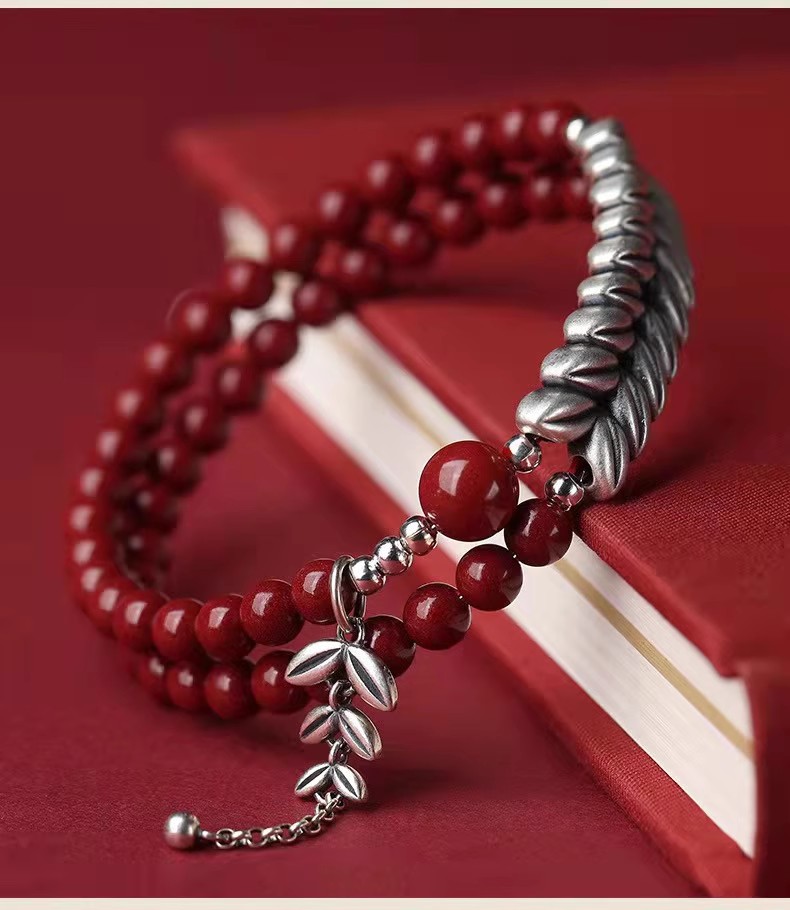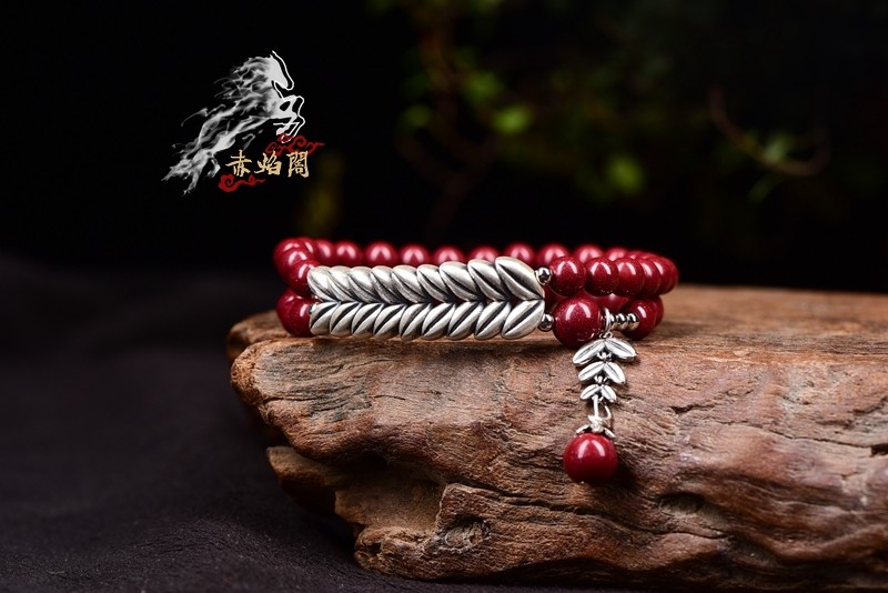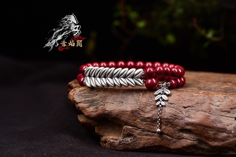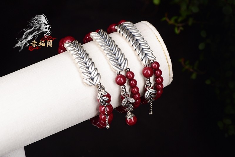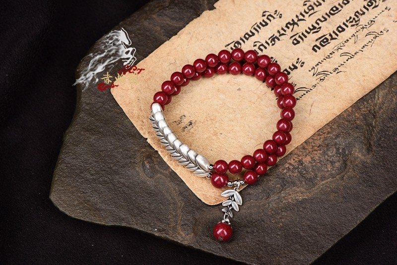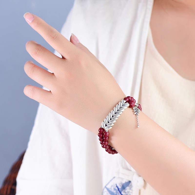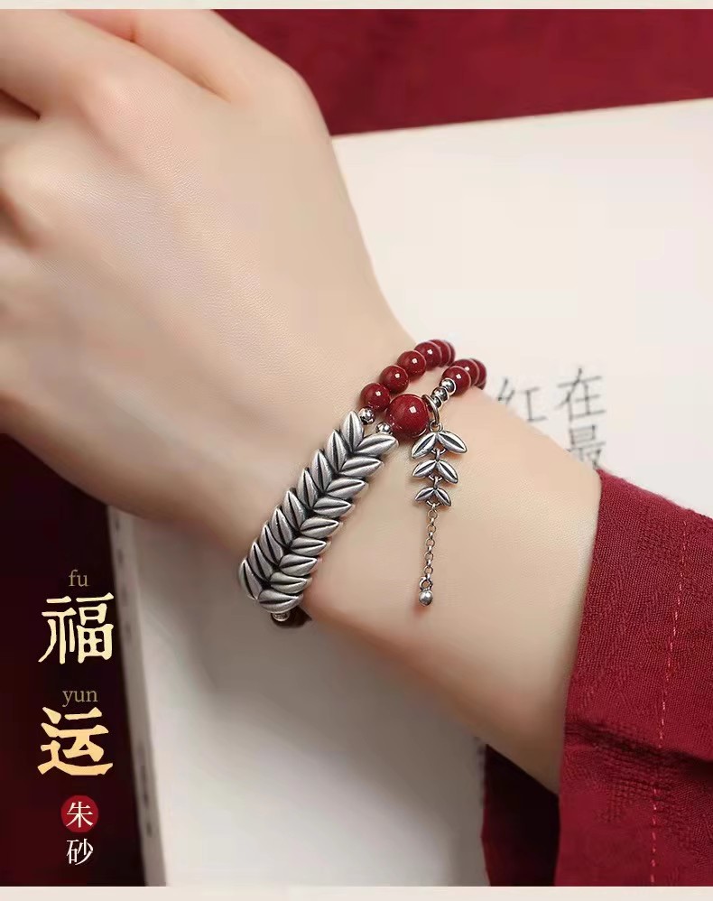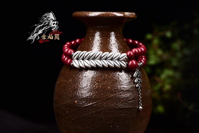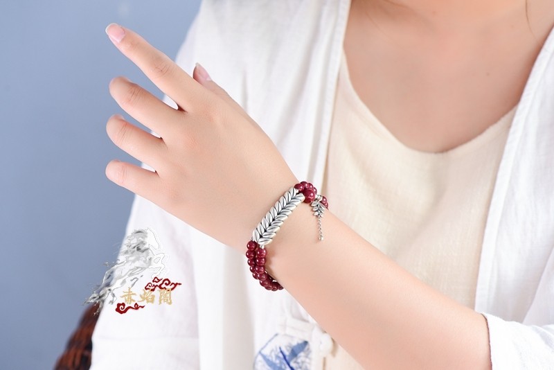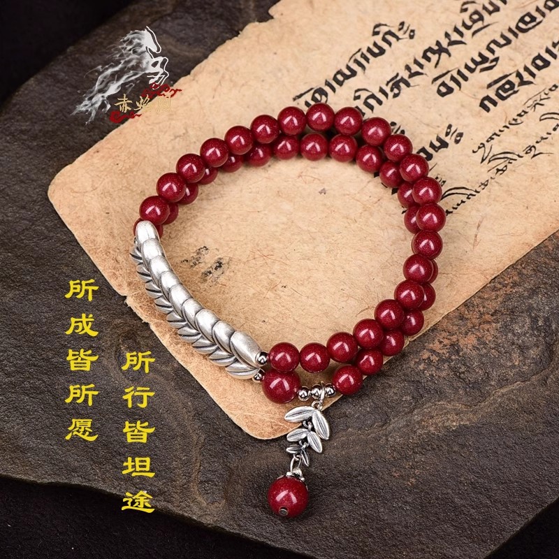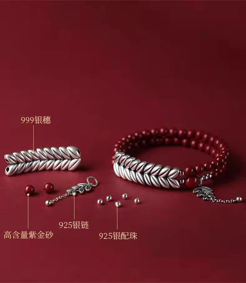 【东营特产】朱砂纯银麦穗女手串6mm紫金砂圆珠