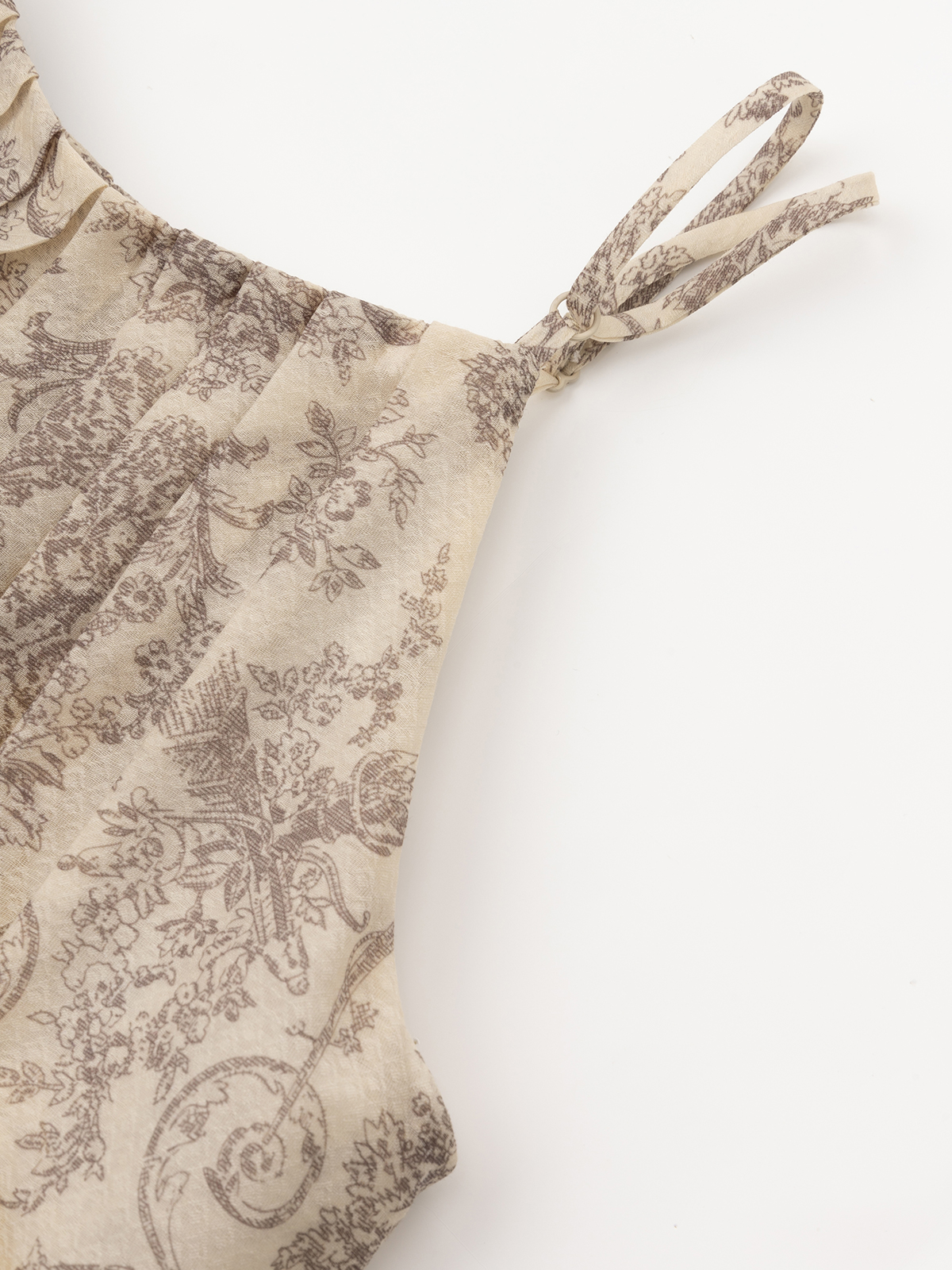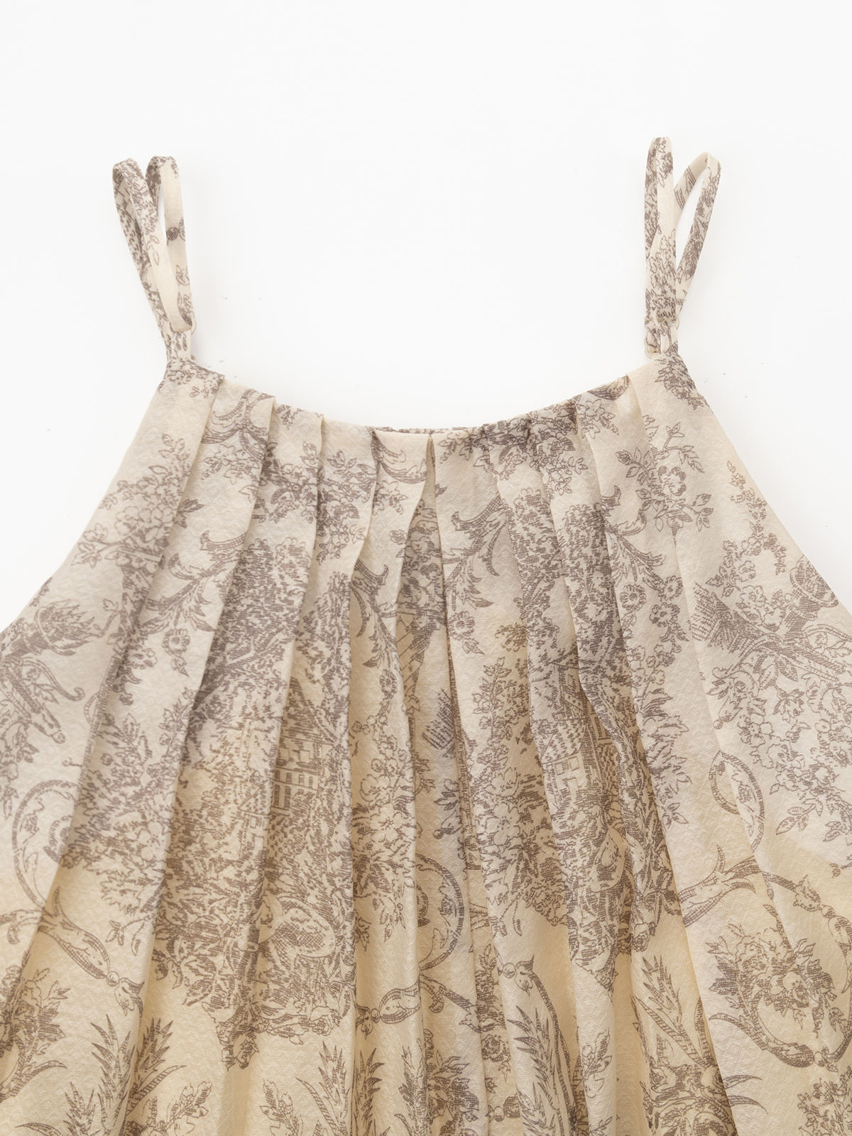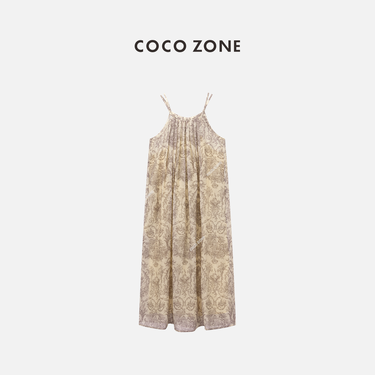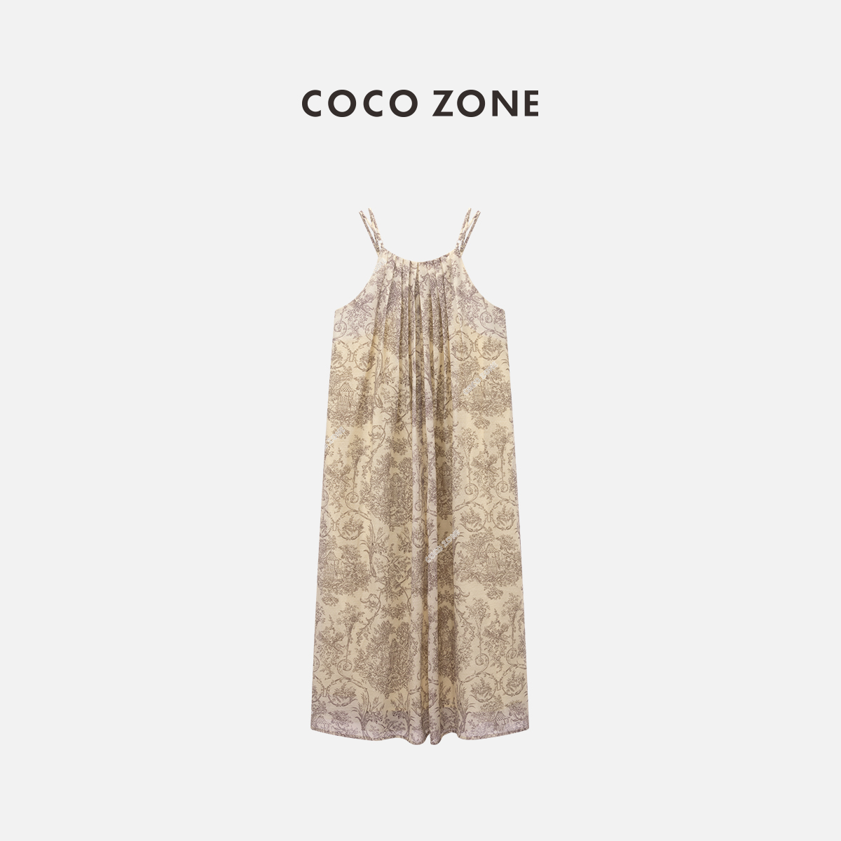 COCO ZONE"觅屿”法式复古印花吊带连衣裙高级感显瘦A字长裙CC1B0997