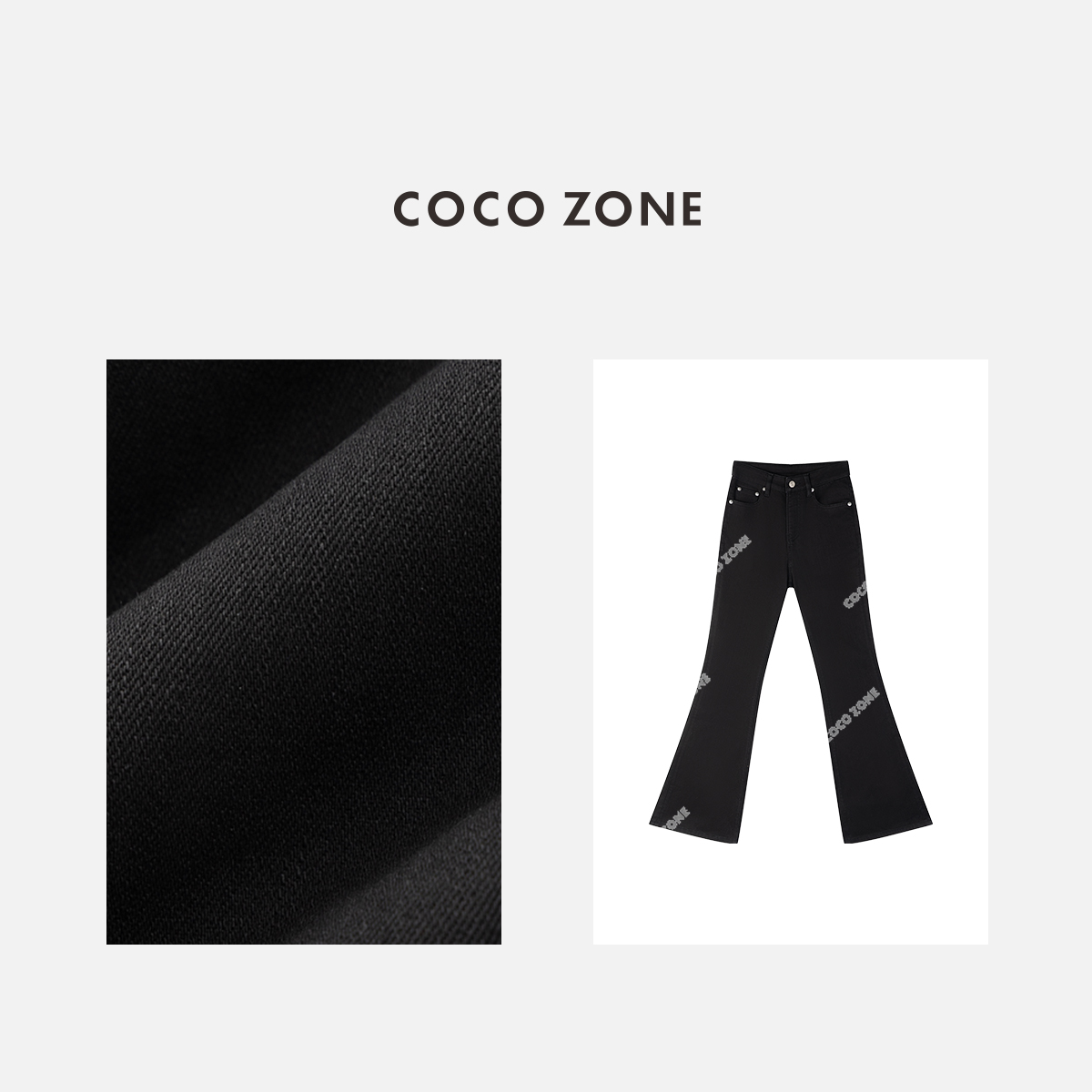 COCO ZONE 刘一一秋冬简约纯色设计感底磨毛微喇牛仔裤CC1D2906