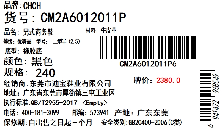 CHCH平衡鞋牛皮革一脚蹬简约商务男鞋CM1A6171