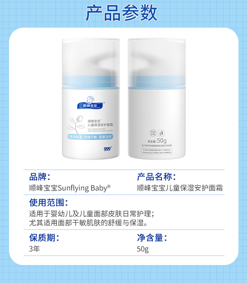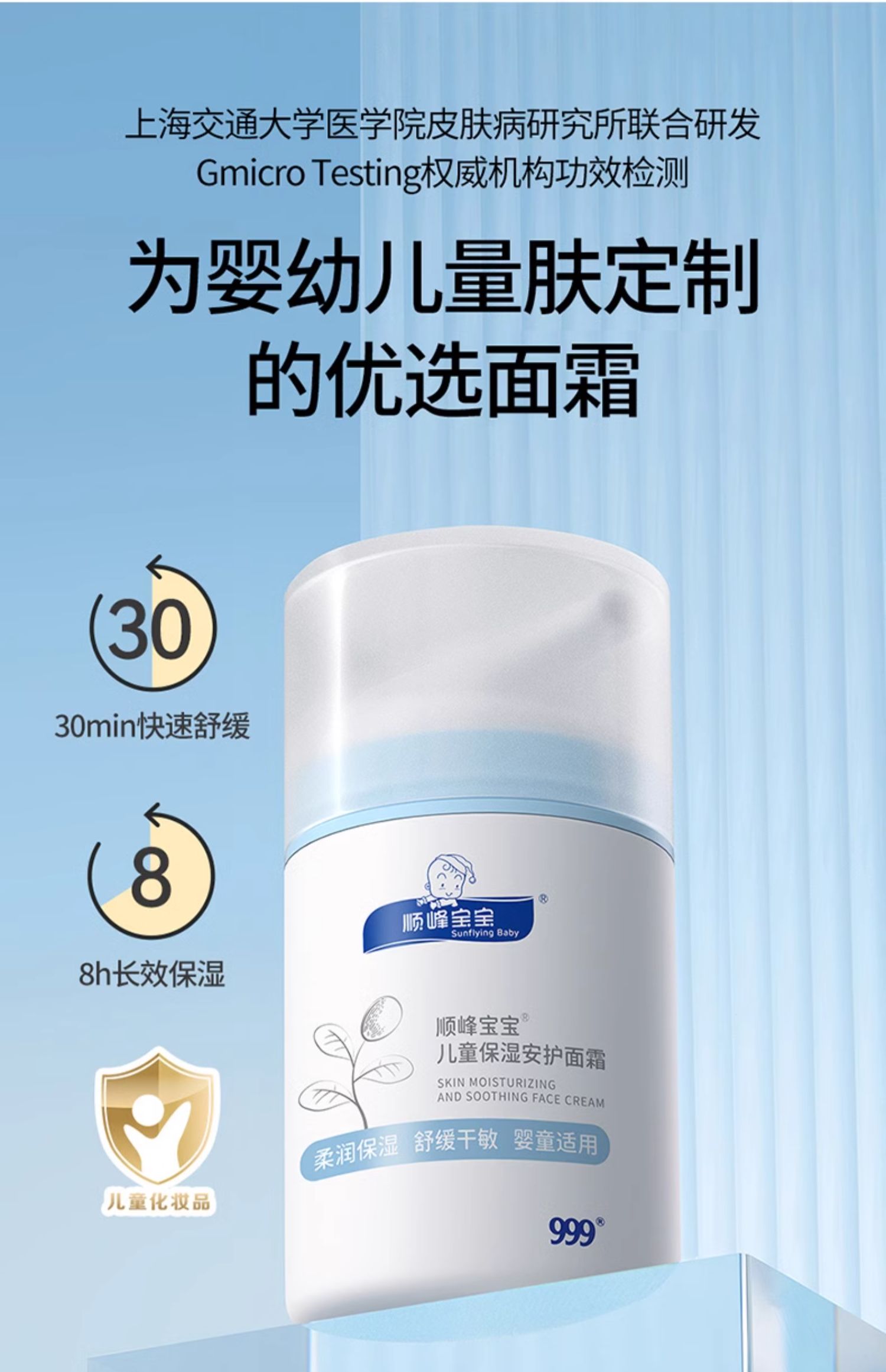 【新品】顺峰宝宝儿童保湿安护面霜50g婴儿秋冬面部滋润补水舒缓