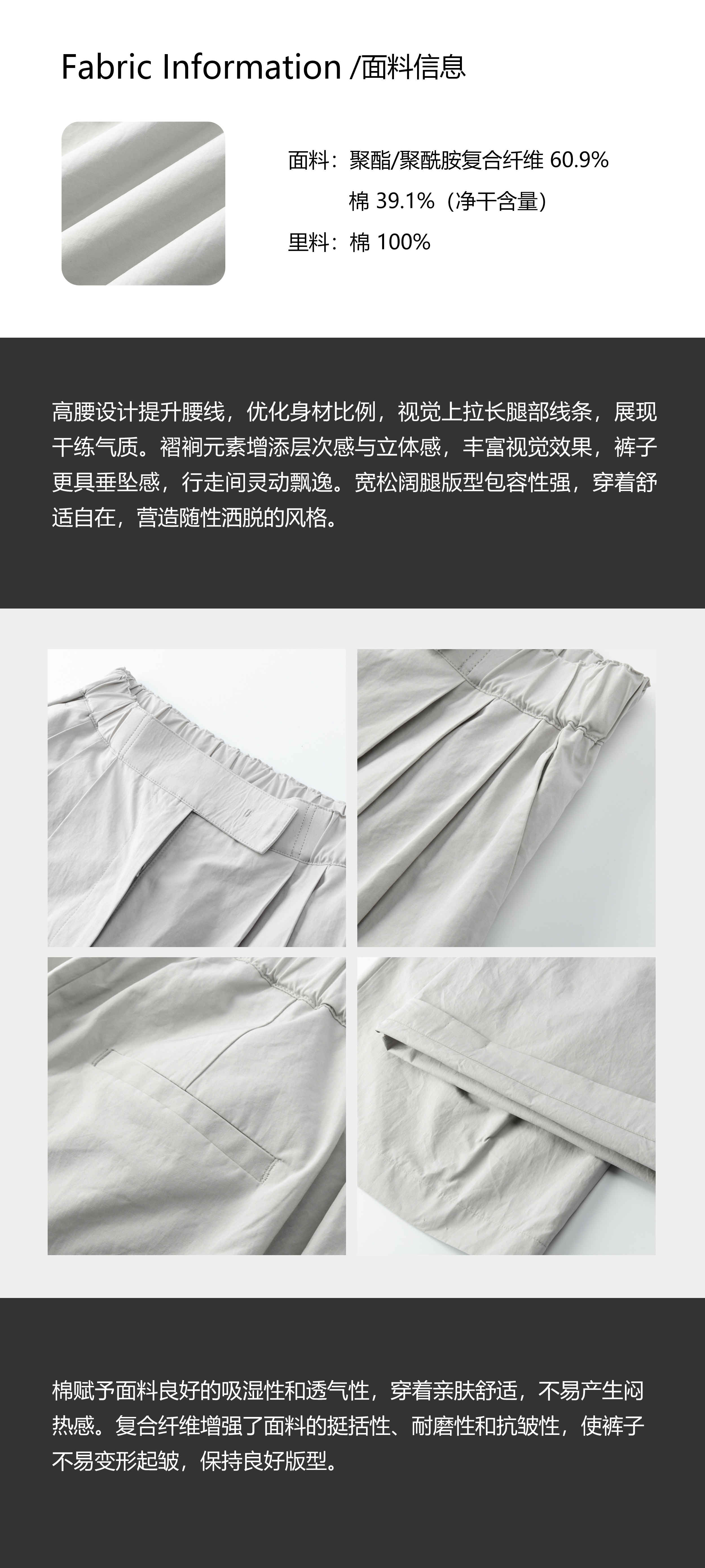 COCO ZONE 刘一一 【棉混纺】半橡筋弹力高腰阔腿休闲裤CD2A0445
