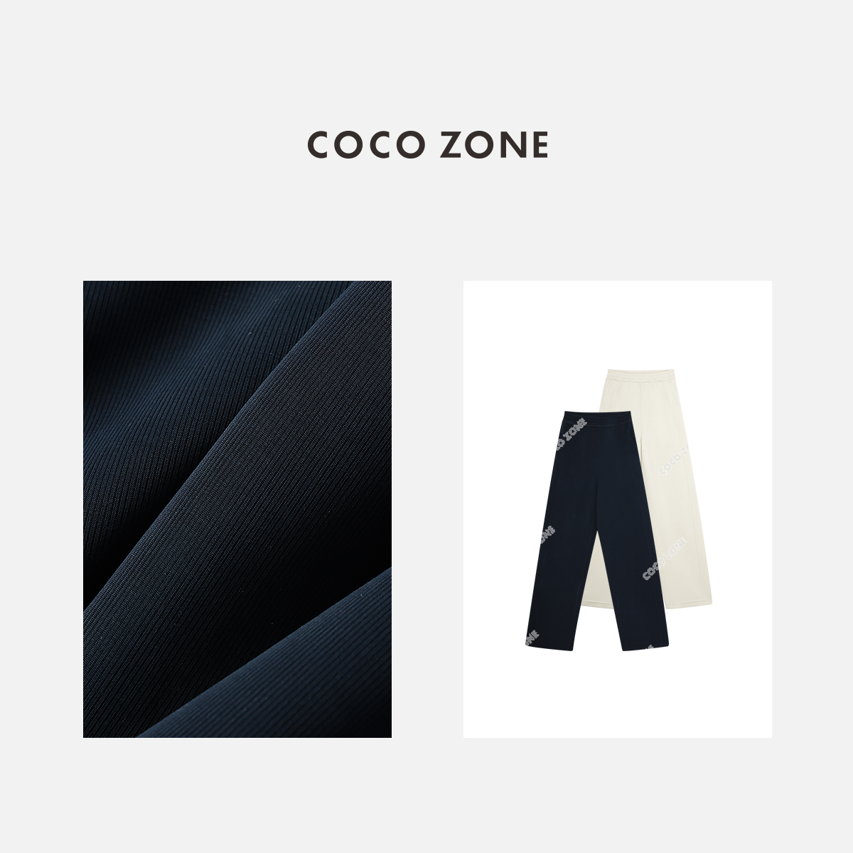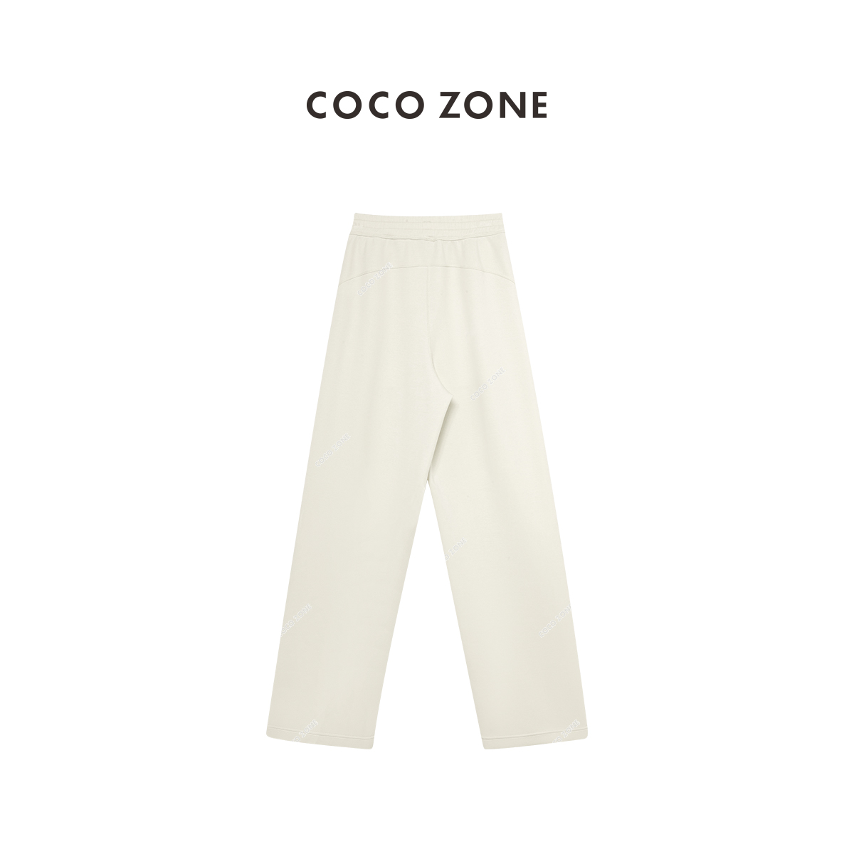 COCO ZONE直筒阔腿裤运动线条松紧腰百搭休闲裤24C10331