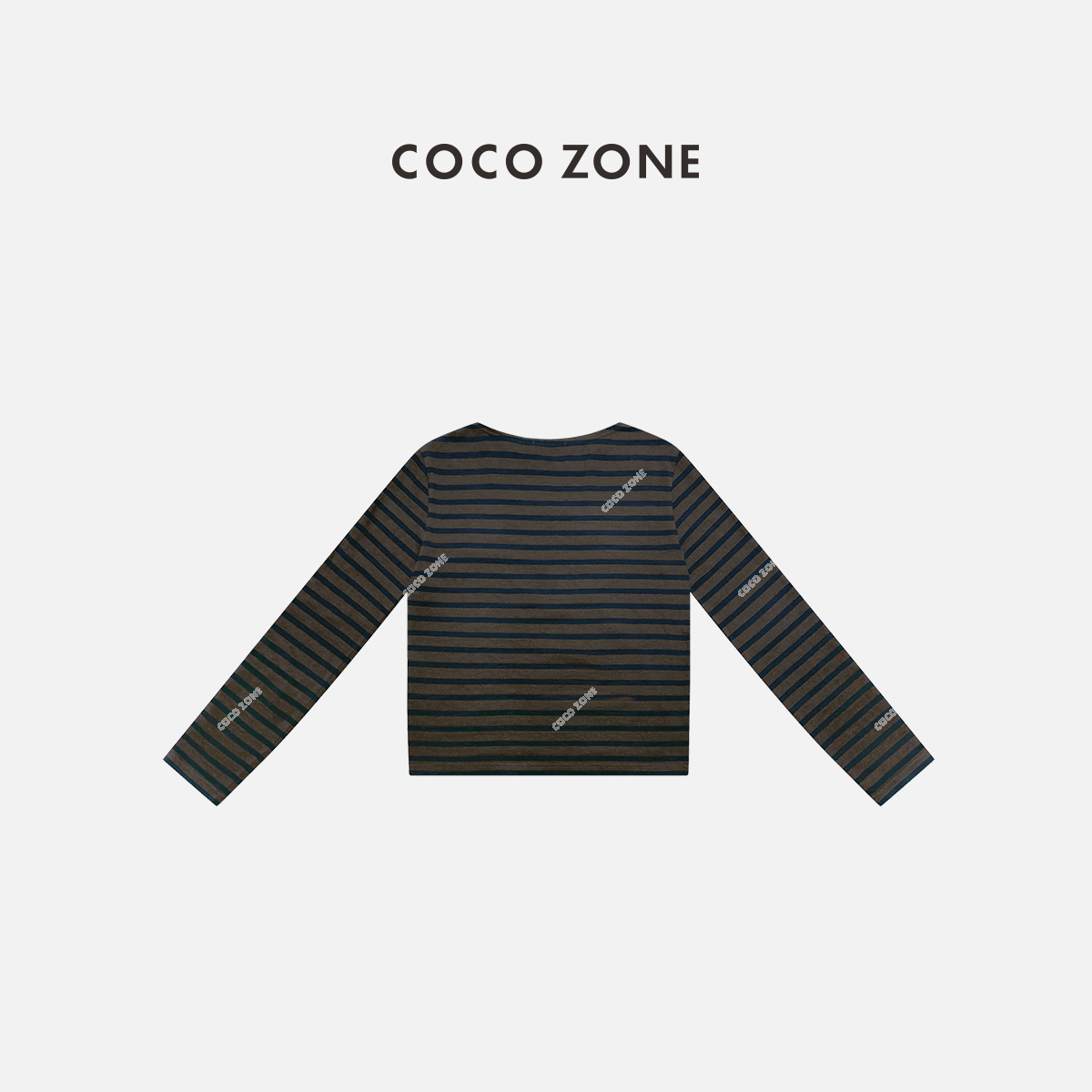COCO ZONE 时尚条纹长袖T恤百搭圆领休闲上衣CC2C1560