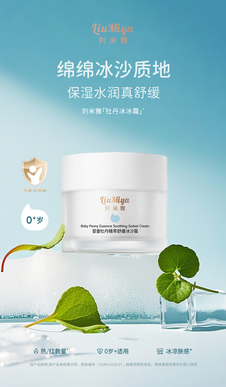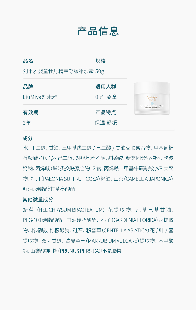 刘米雅婴童牡丹精萃舒缓冰沙霜宝宝护肤品清爽保湿晒后舒缓润肤乳50g