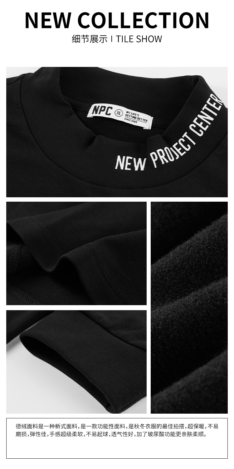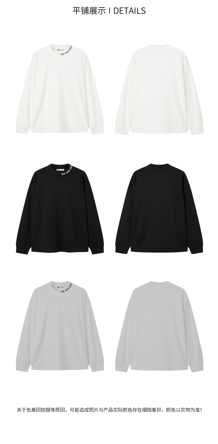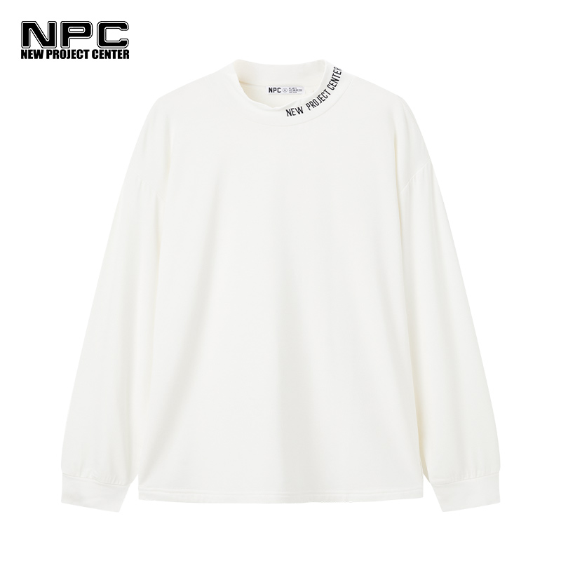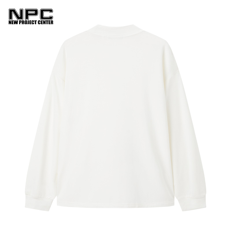 NPC潮牌领口字母LOGO绣花德绒长袖T恤百搭纯色宽松情侣NP28TL21