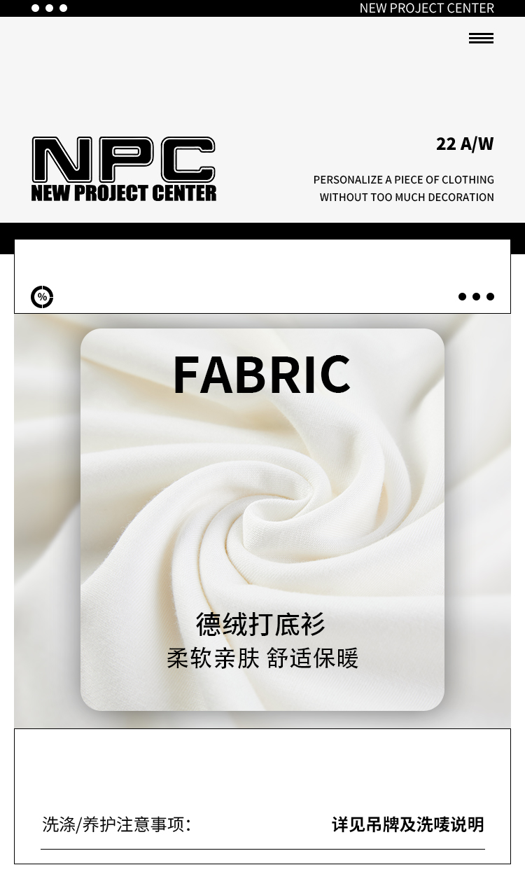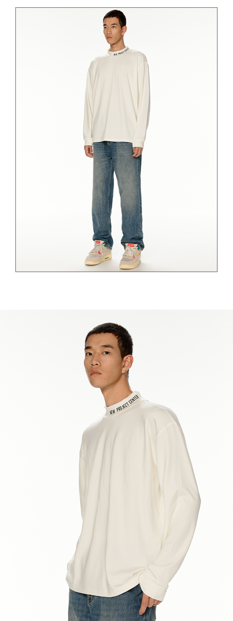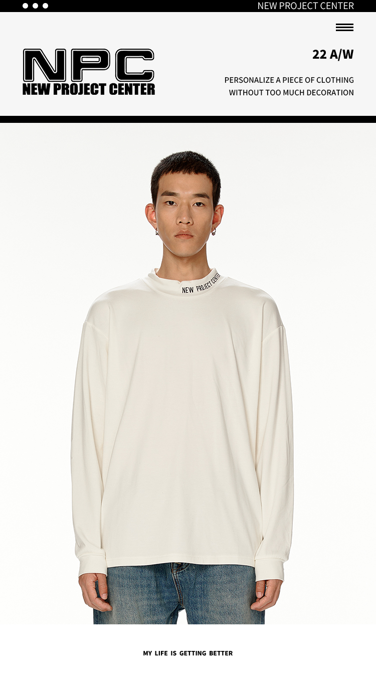 NPC潮牌领口字母LOGO绣花德绒长袖T恤百搭纯色宽松情侣NP28TL21