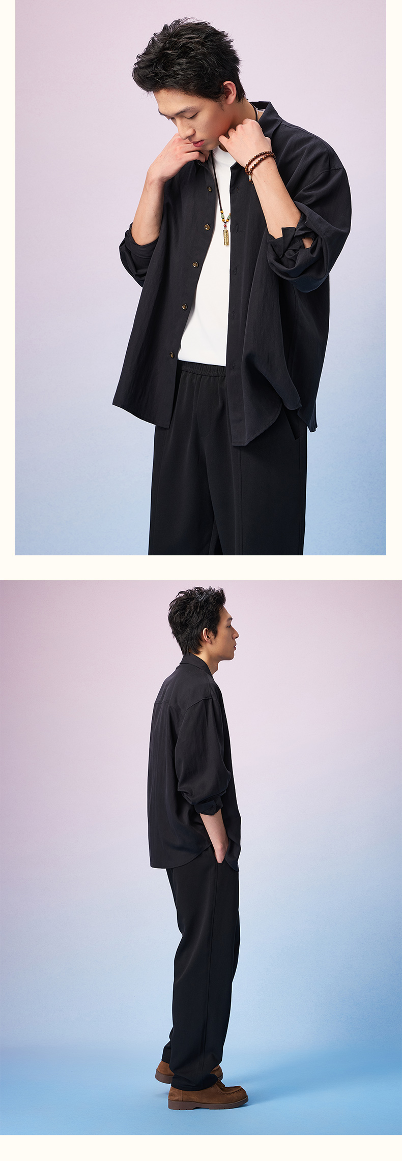 NPC潮牌【莱赛尔】亚麻混纺宽松落肩衬衫男立体剪裁秋季新NP57SH19