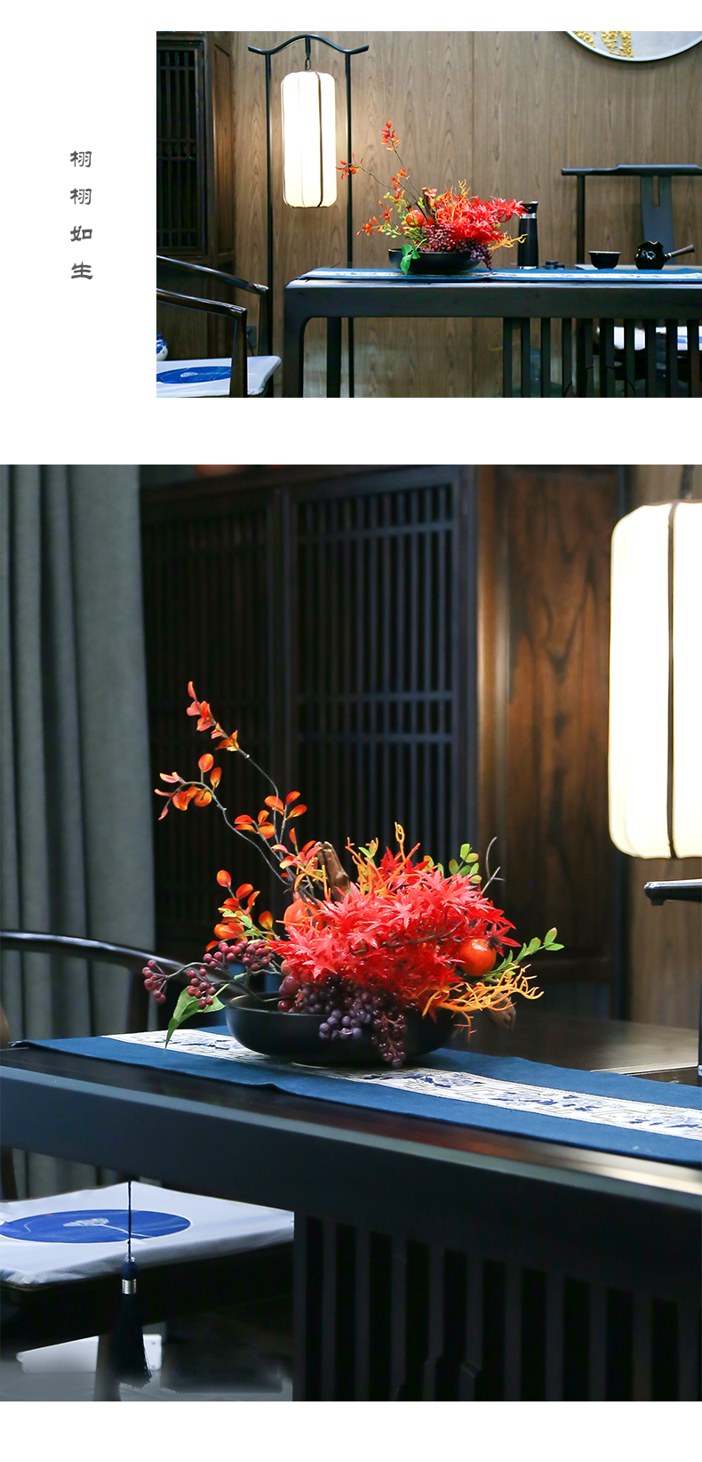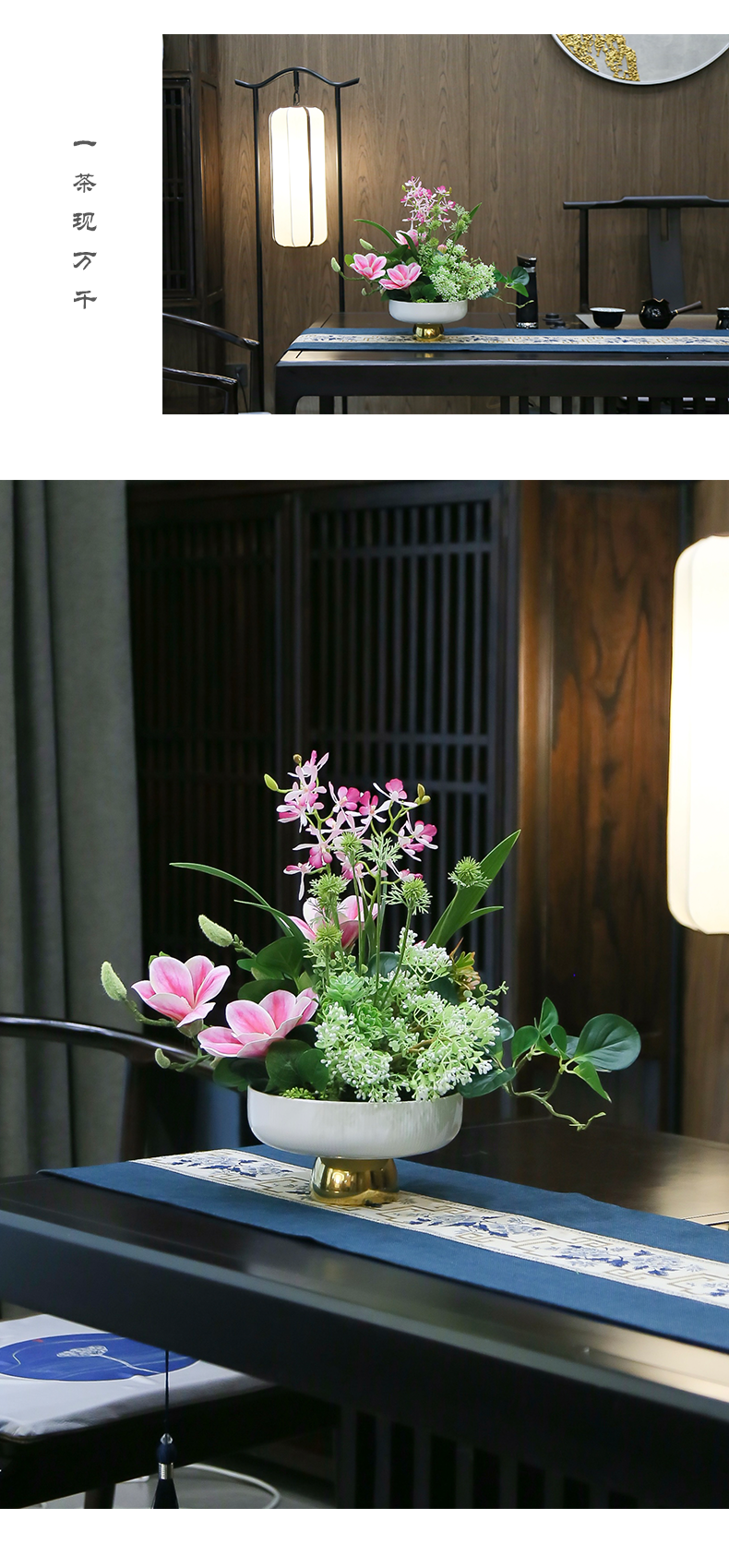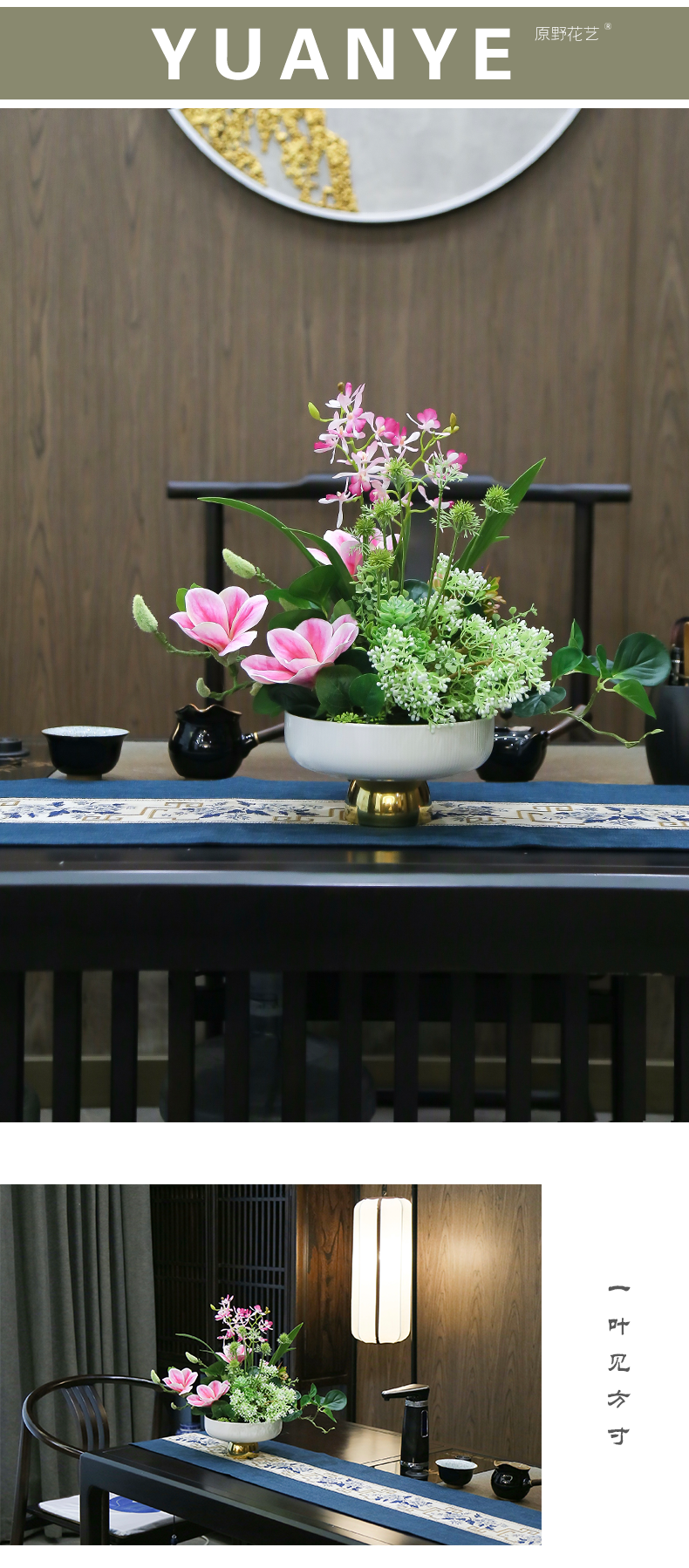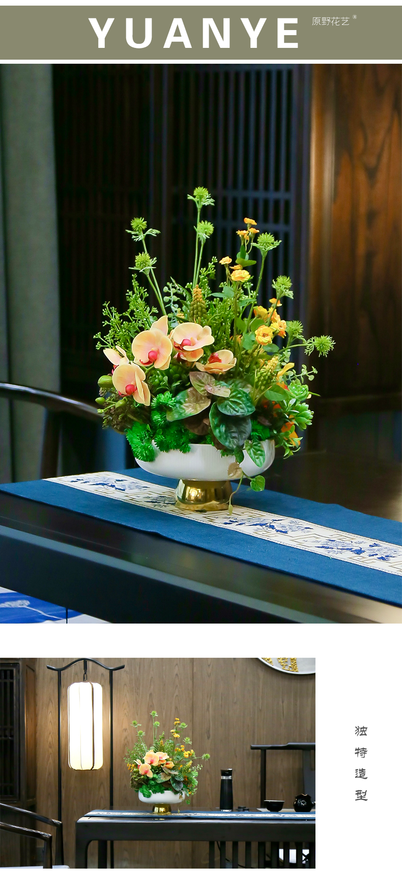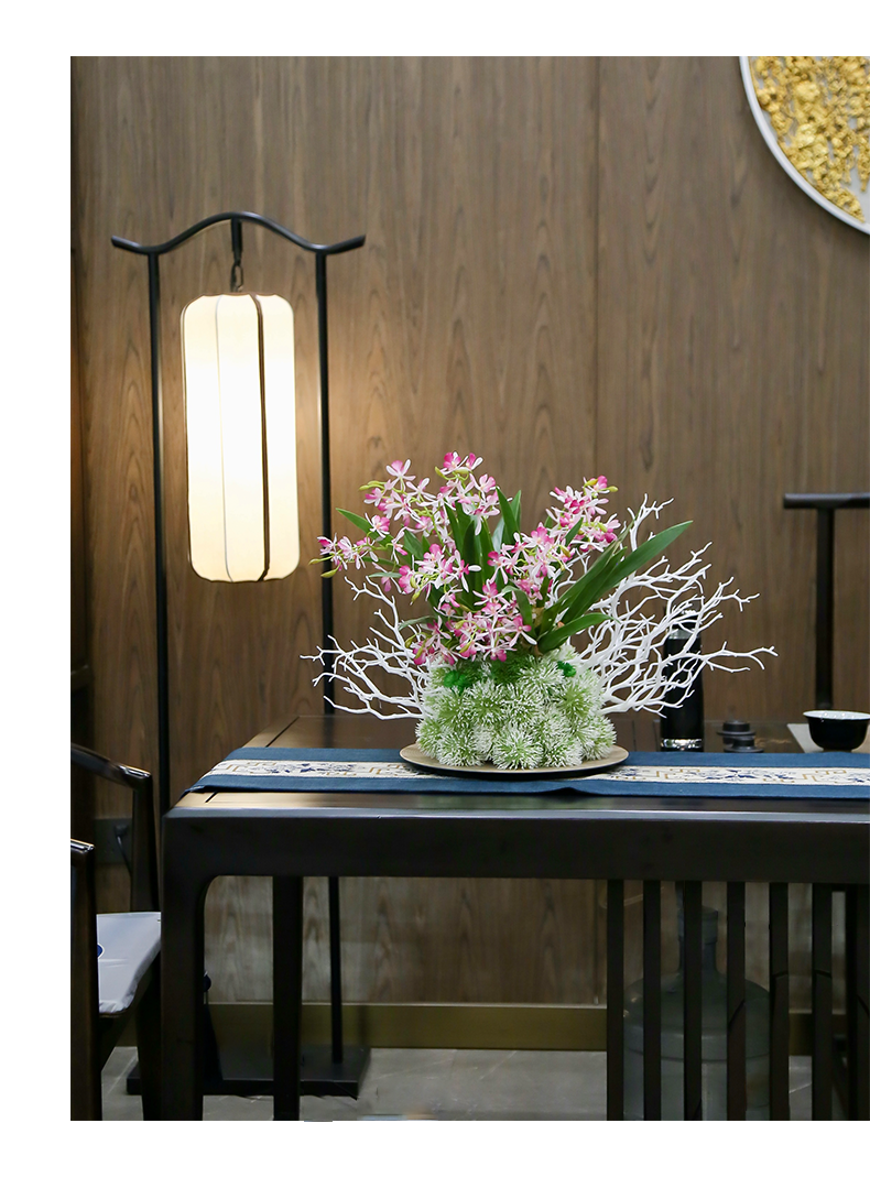 新中式高端餐桌花摆花酒店餐厅茶室客厅玄关摆设件茶几装饰仿真花