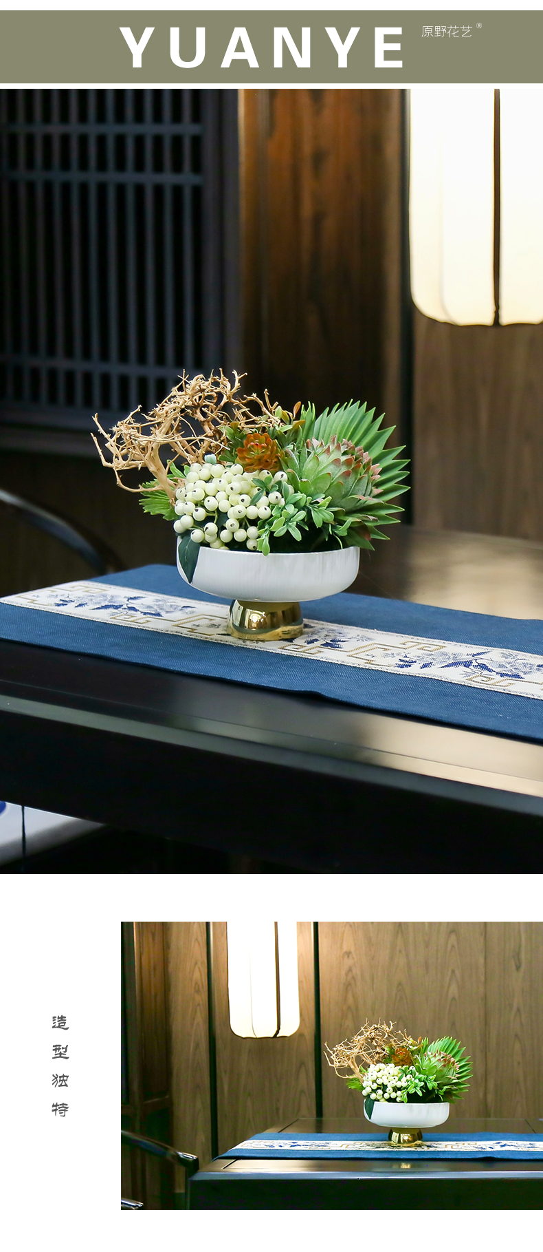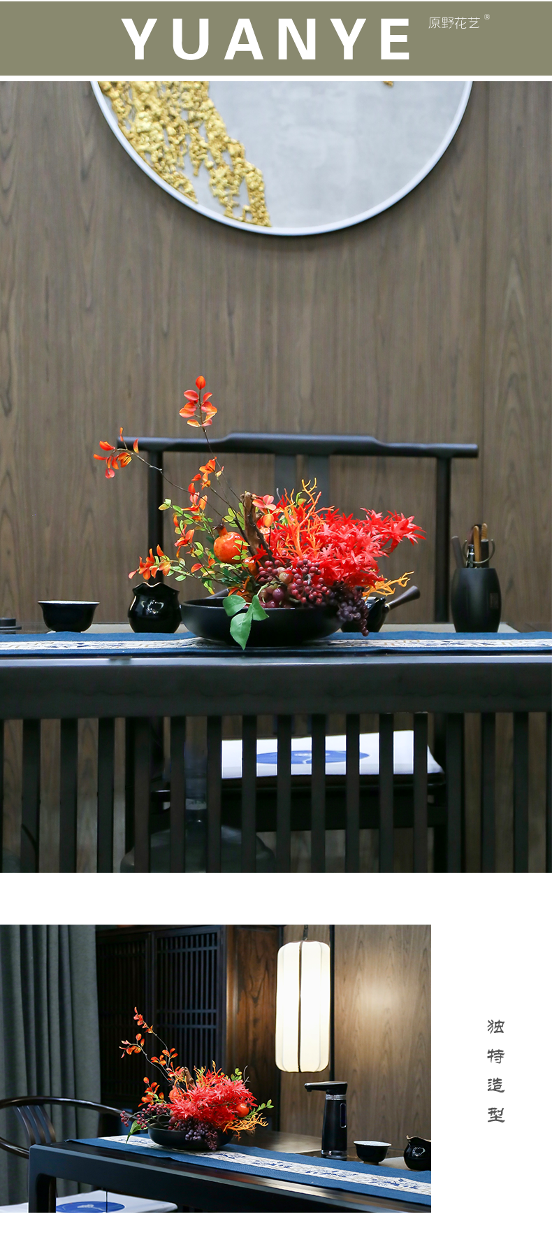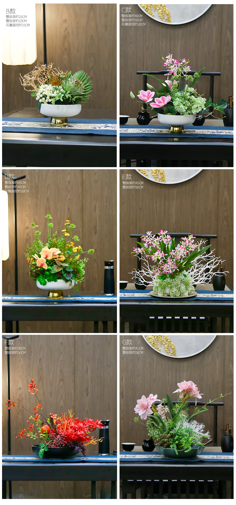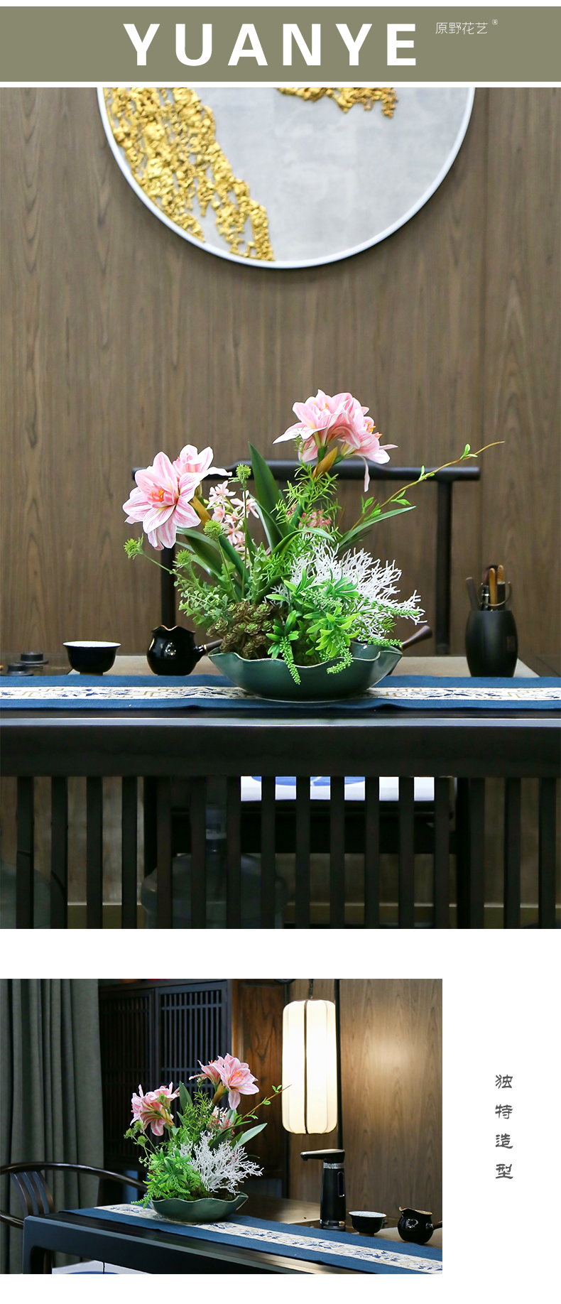 新中式高端餐桌花摆花酒店餐厅茶室客厅玄关摆设件茶几装饰仿真花