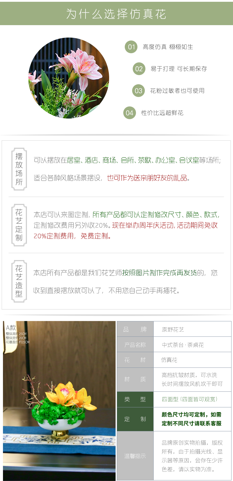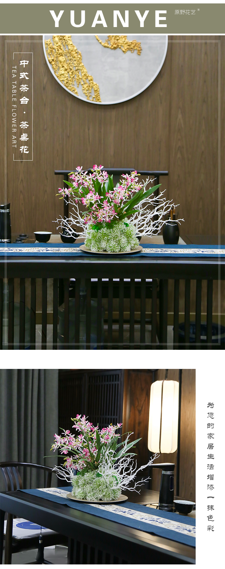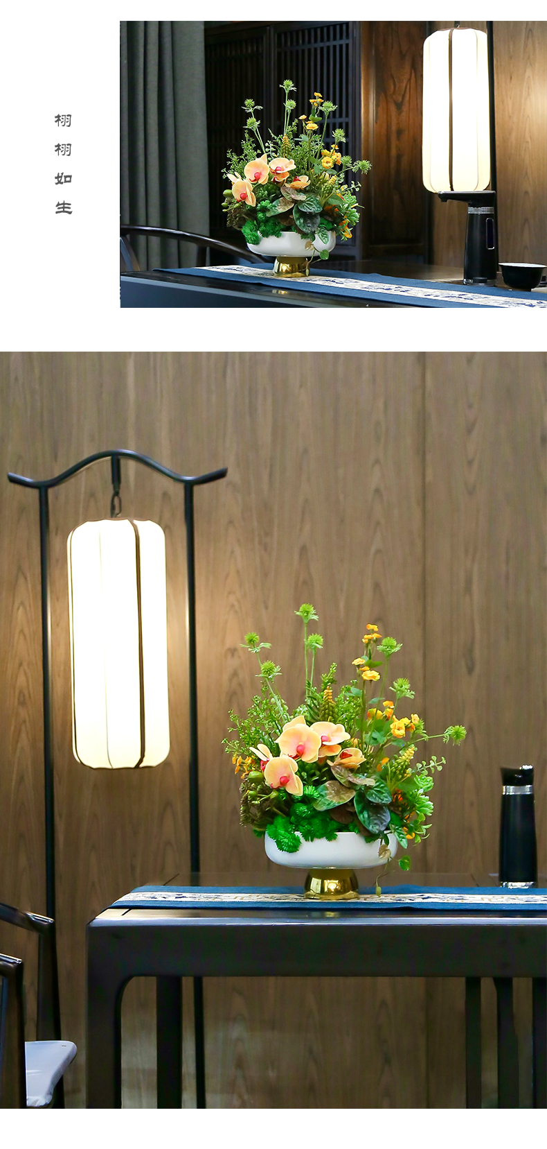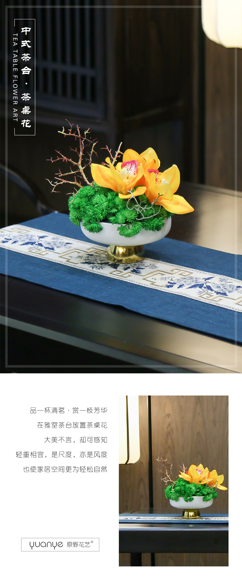 新中式高端餐桌花摆花酒店餐厅茶室客厅玄关摆设件茶几装饰仿真花