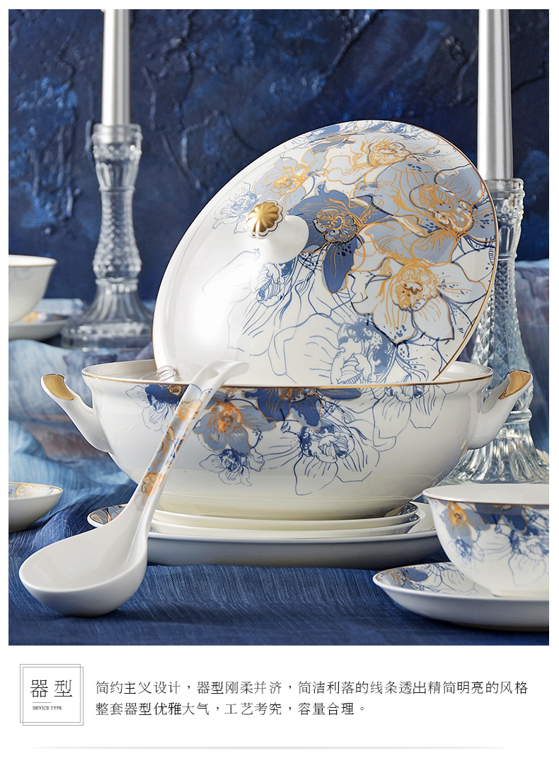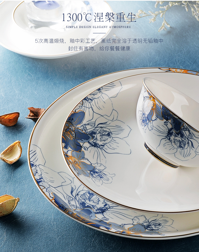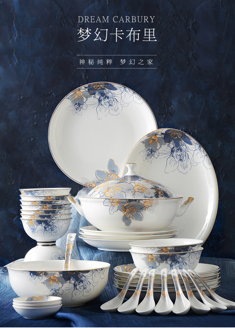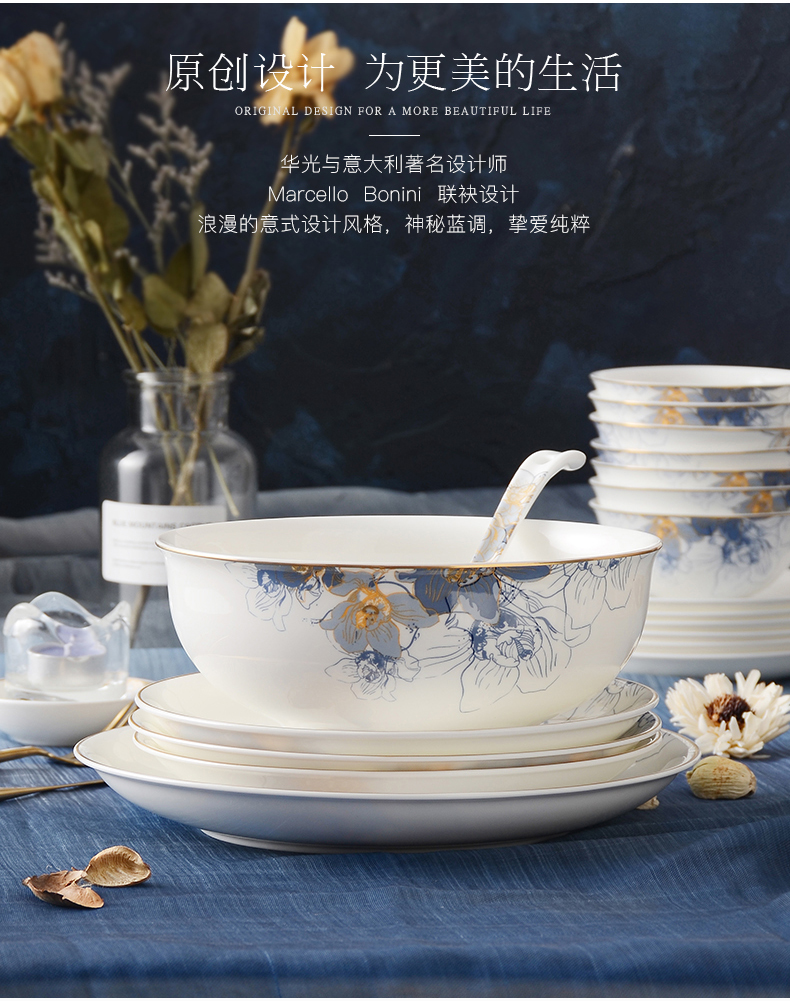 华光国瓷骨瓷餐具套装碗碟套装家用高档轻奢欧式礼盒梦幻卡布里