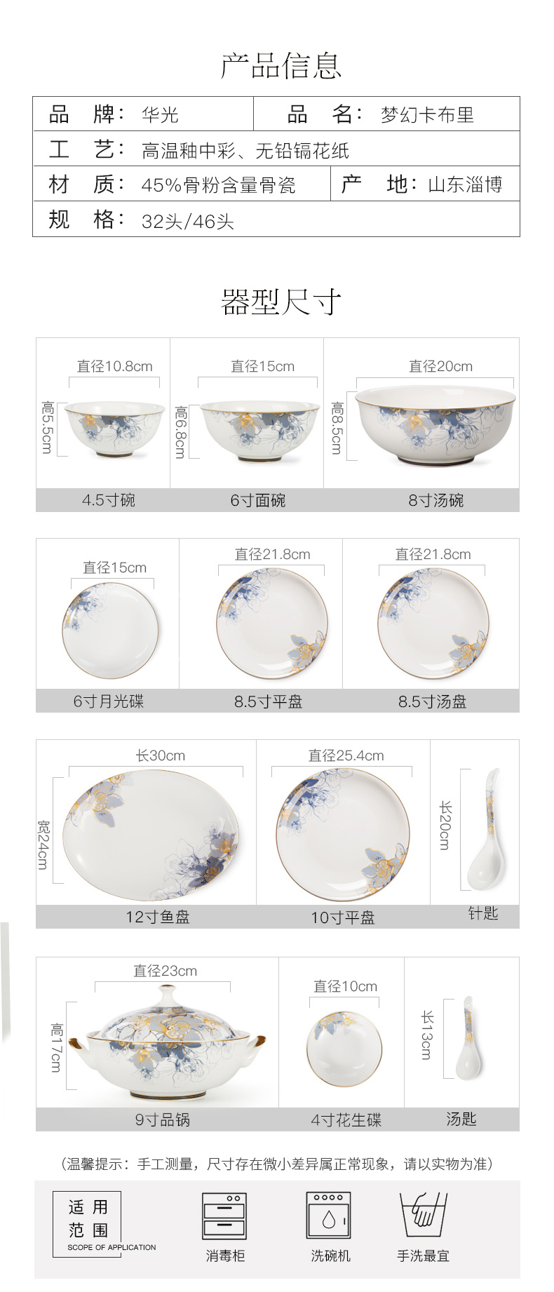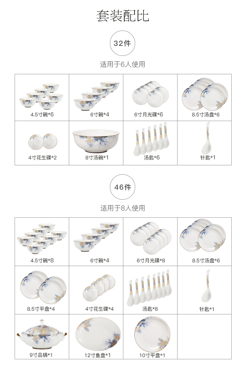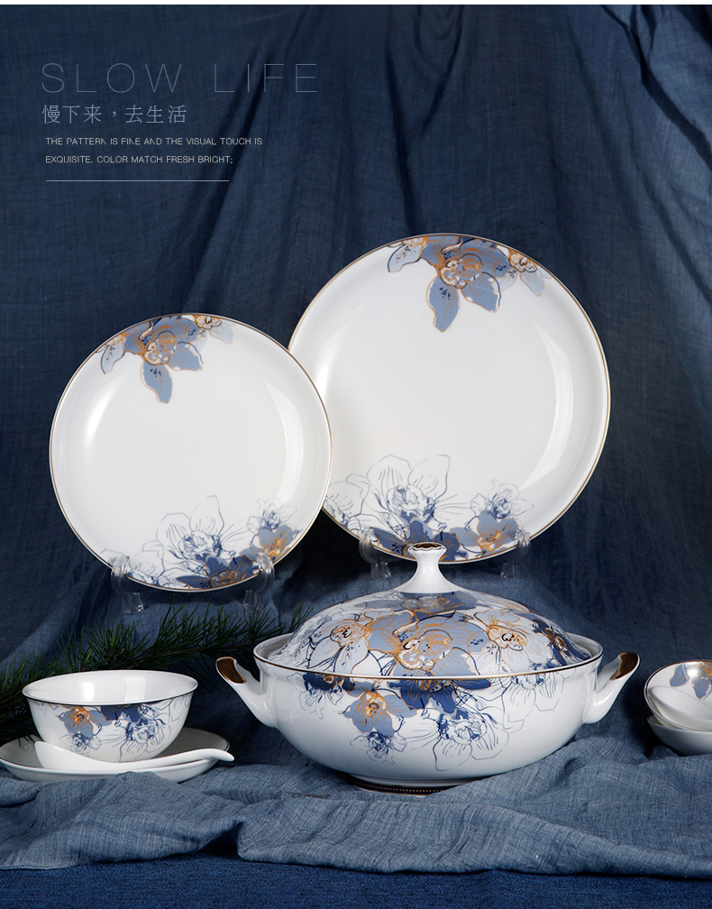 华光国瓷骨瓷餐具套装碗碟套装家用高档轻奢欧式礼盒梦幻卡布里