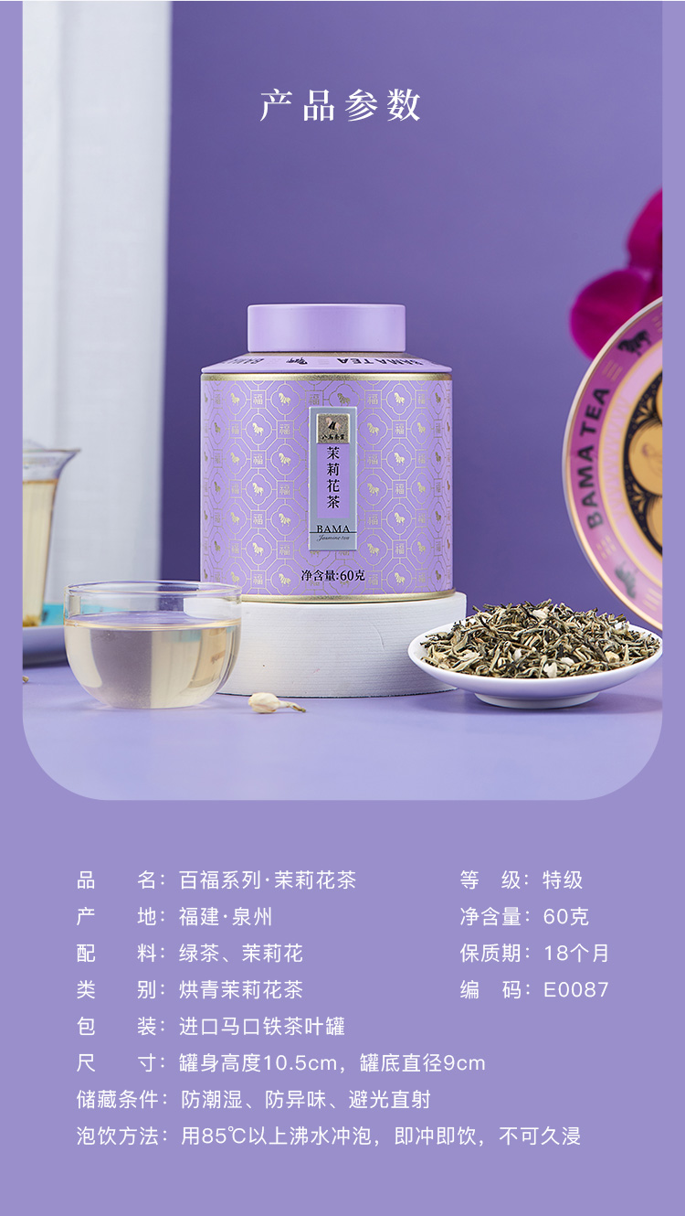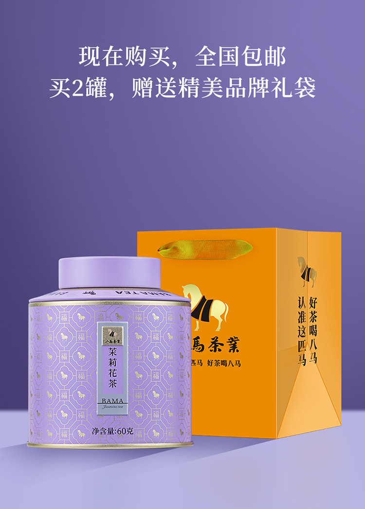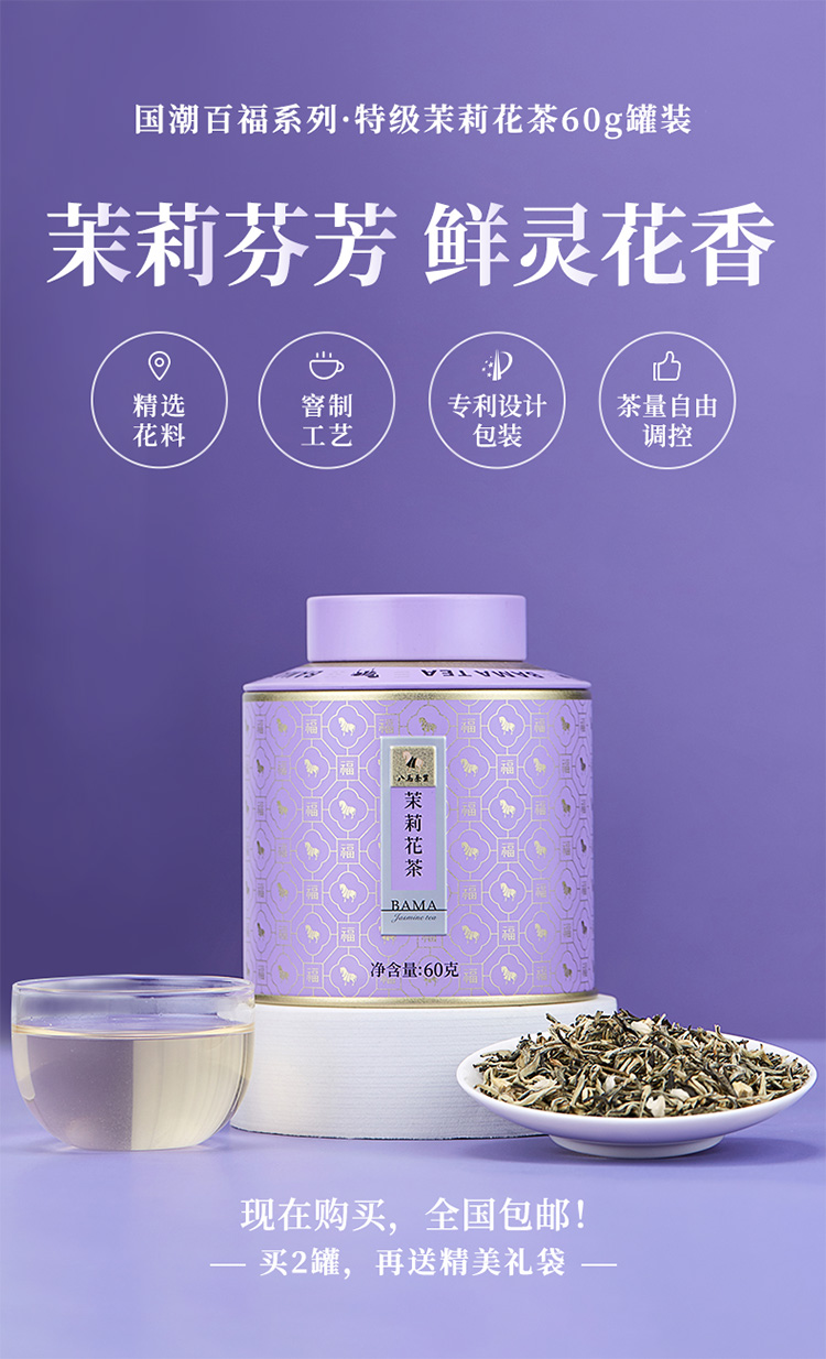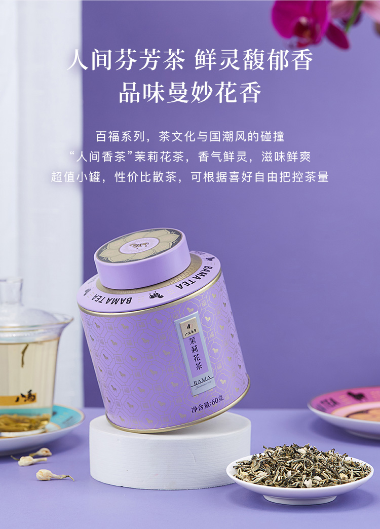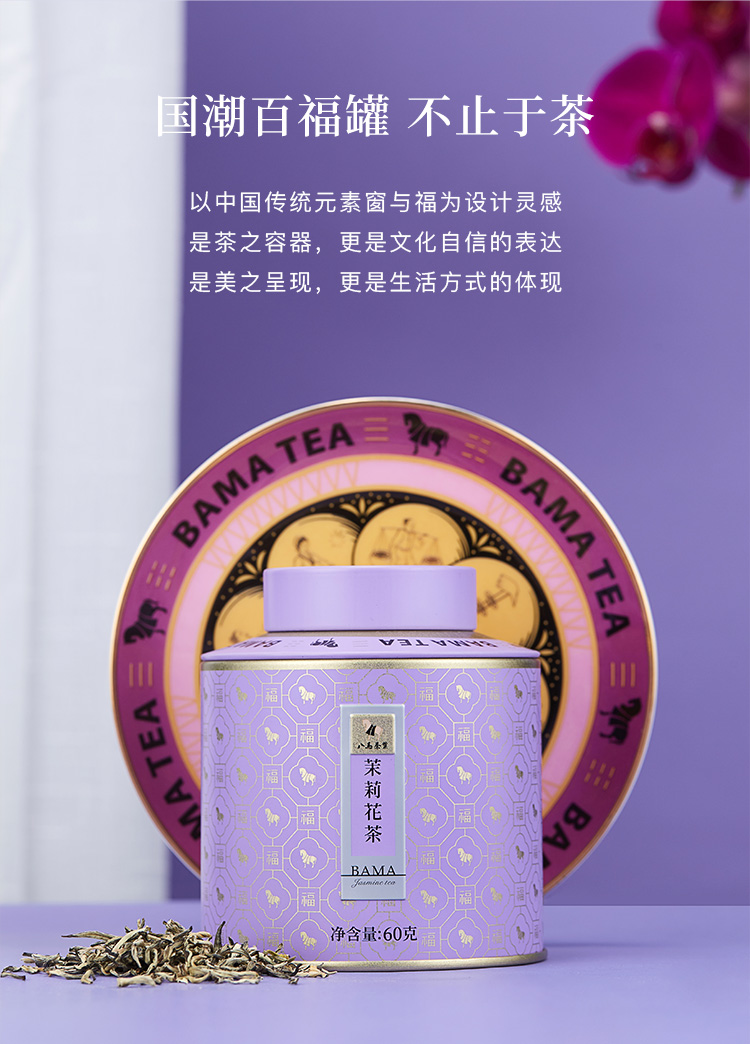 【99元任选2罐】八马茶业丨特级茉莉花茶百福1号罐茉莉花茶60g