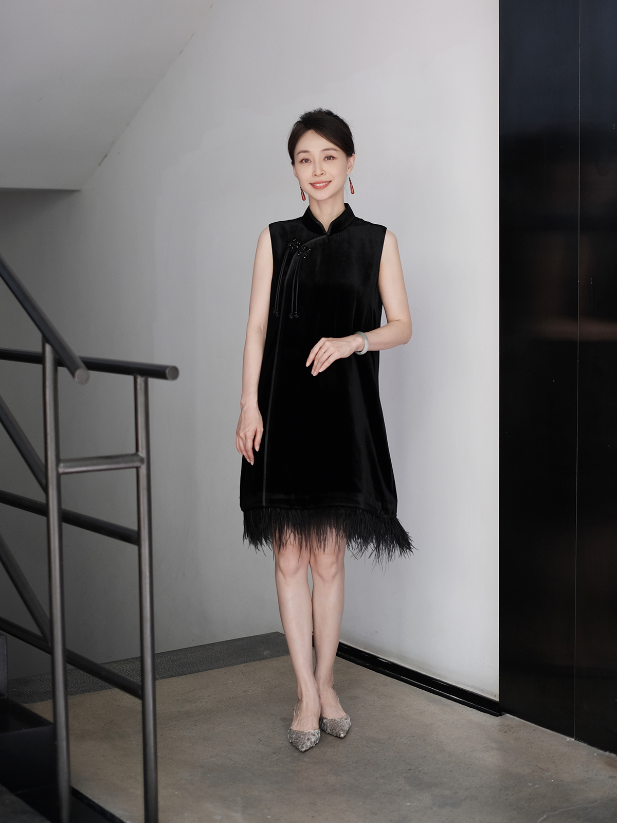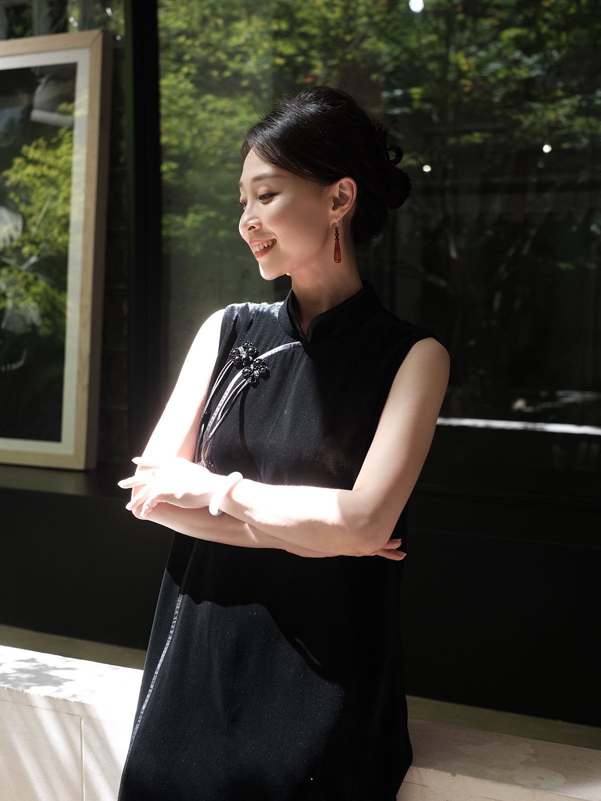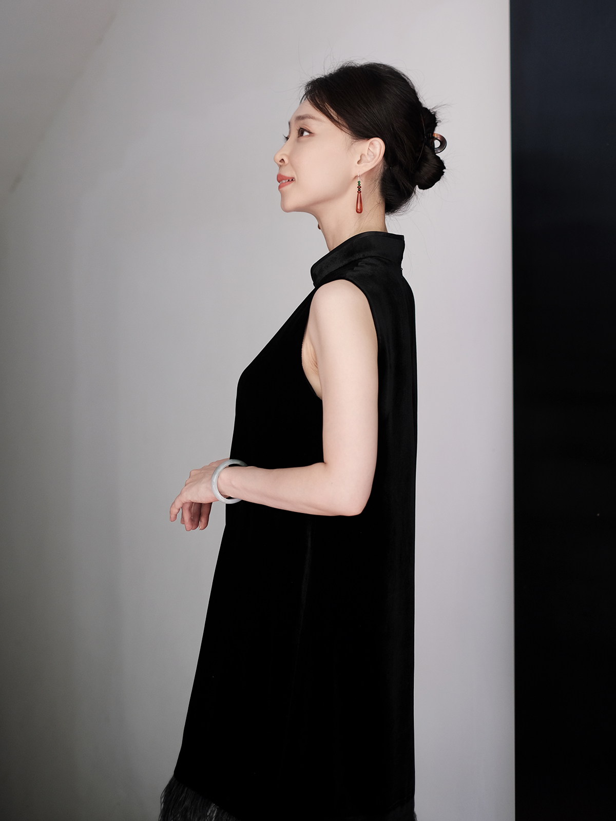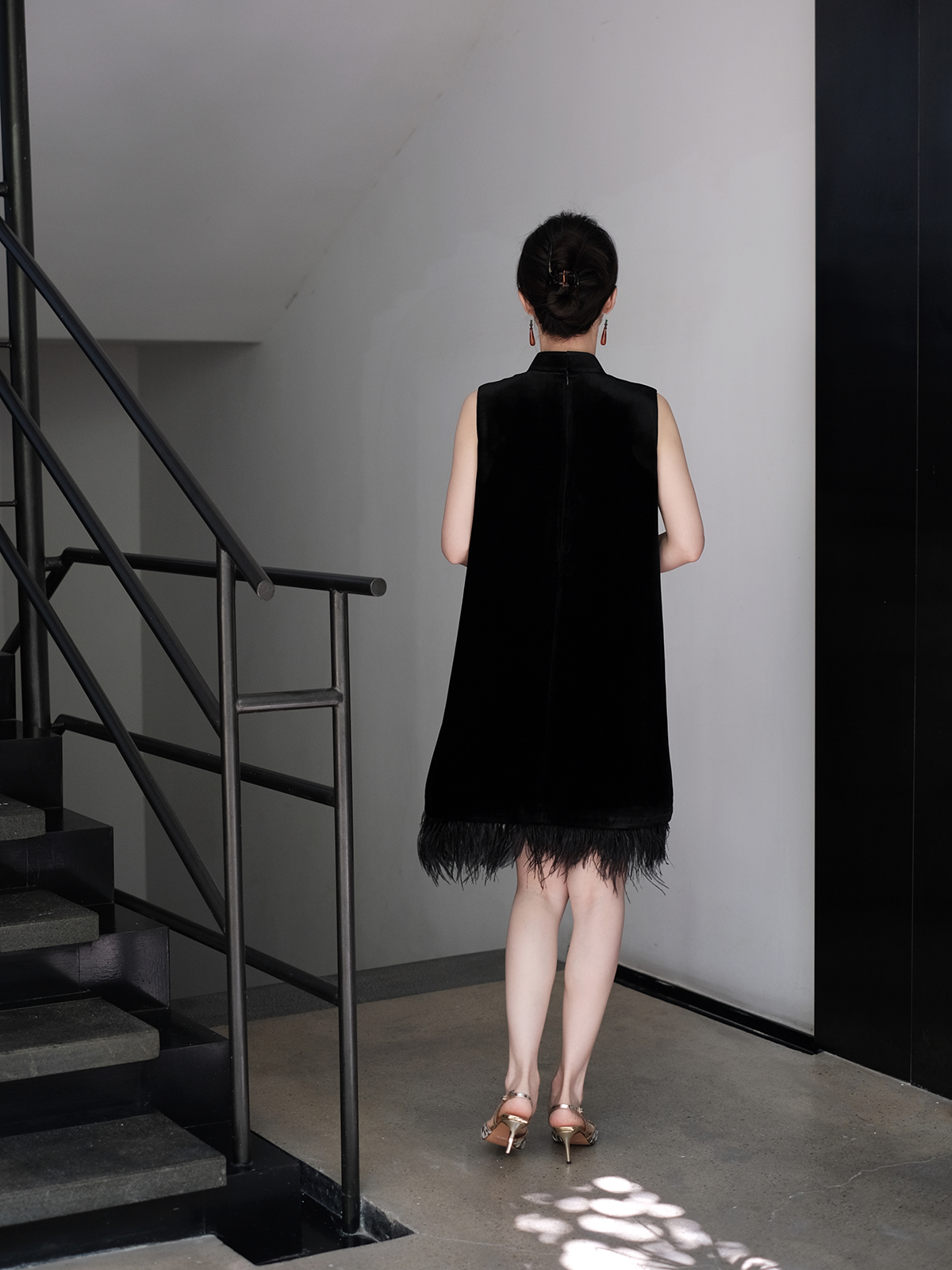 盛唐牡丹 |真丝丝绒花扣斜襟旗袍裙