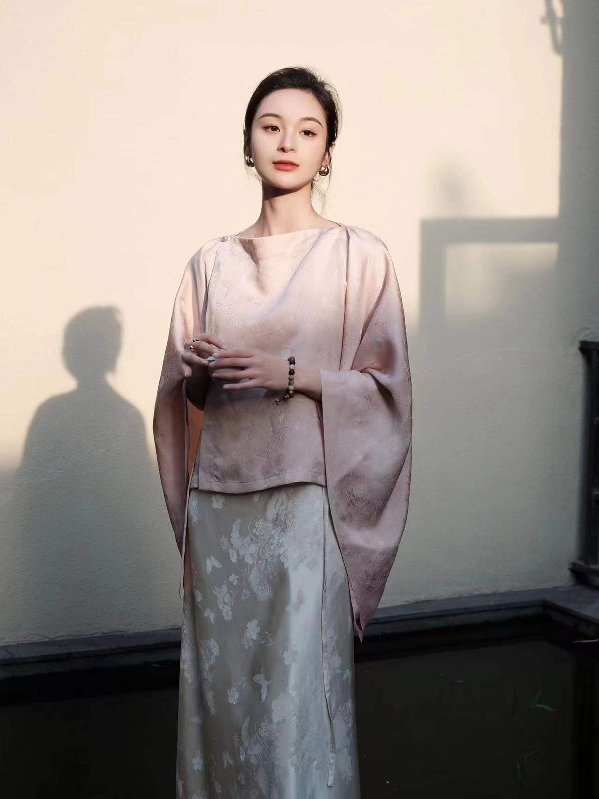 盛唐婧 |淡翠绿国风提花上衣[特价品]