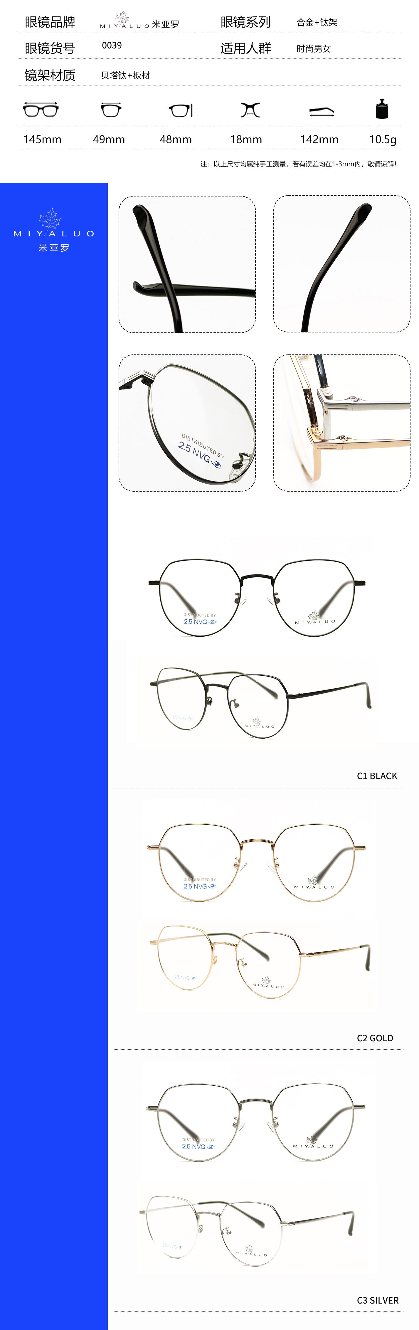 DSG00039 米亚罗MIYALUO 新款光学镜架 全钛合金钛架 DSG00039
