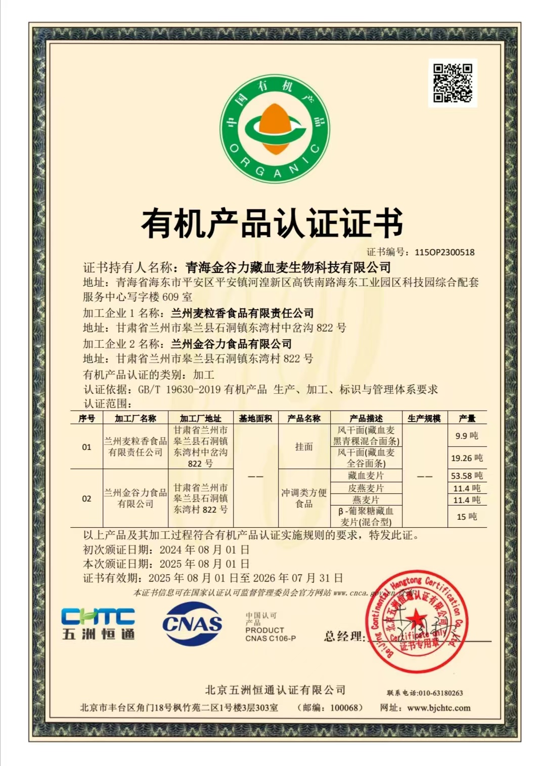 有有机藏血麦片600克/袋*2(全麦麸型略煮)| 金谷力