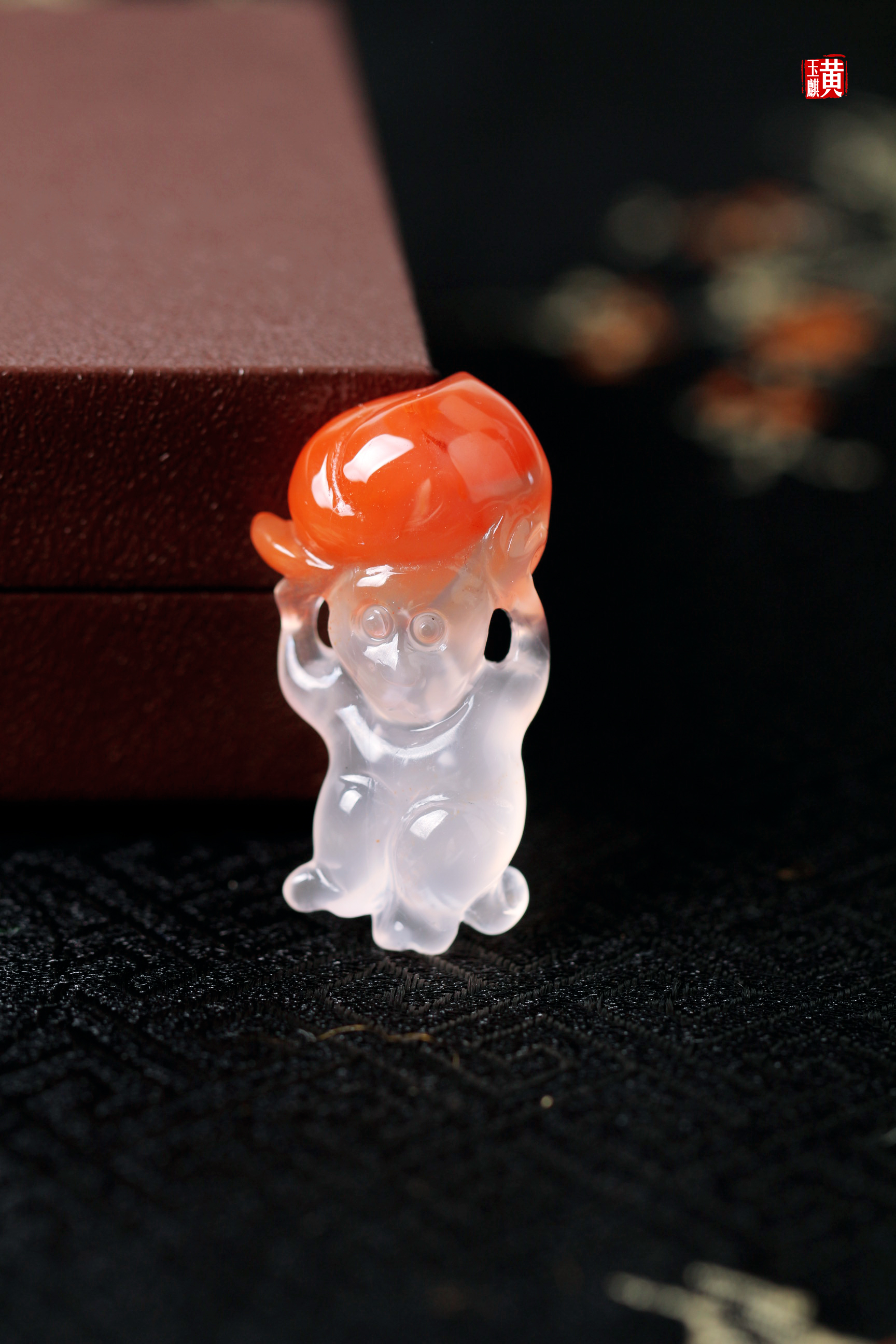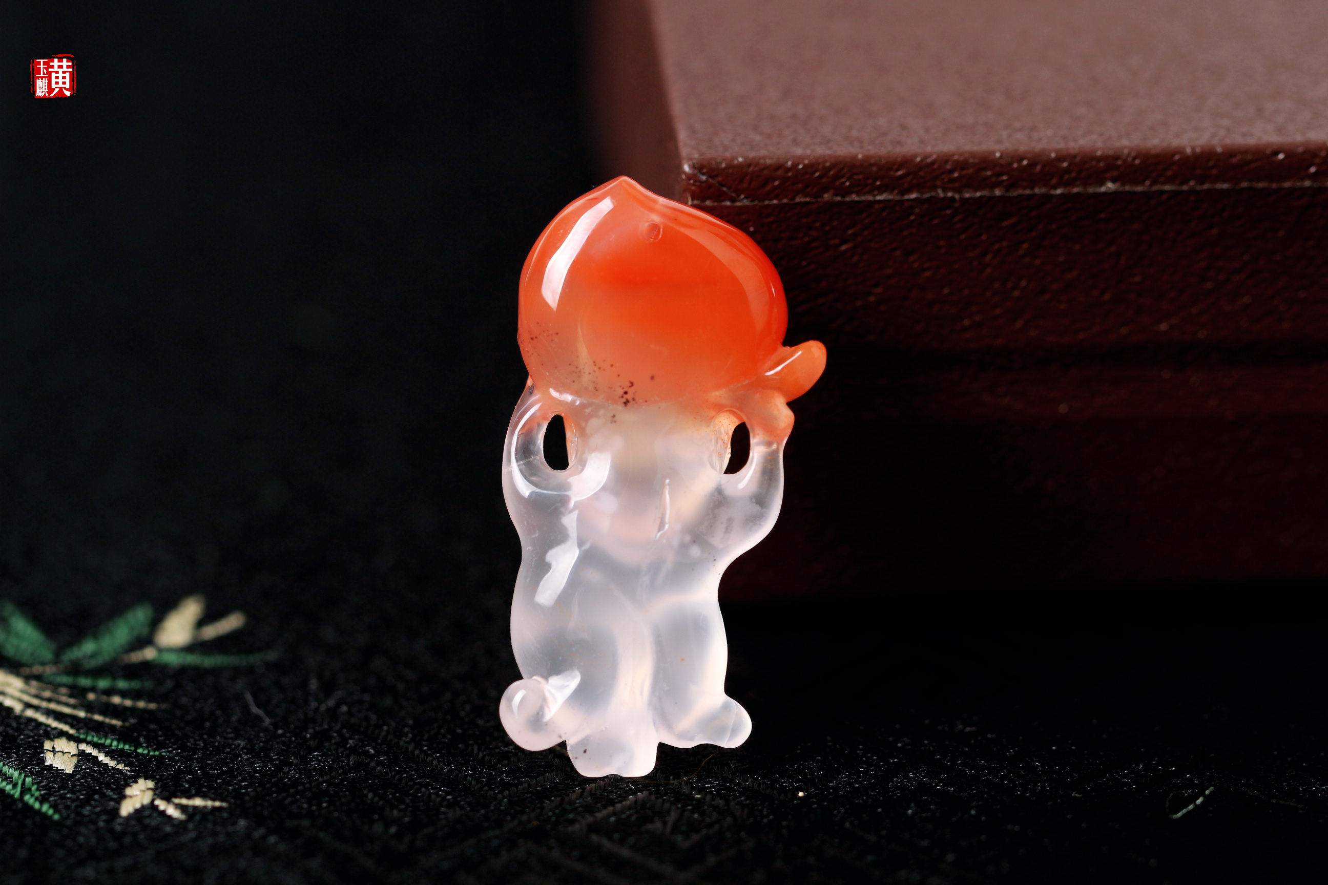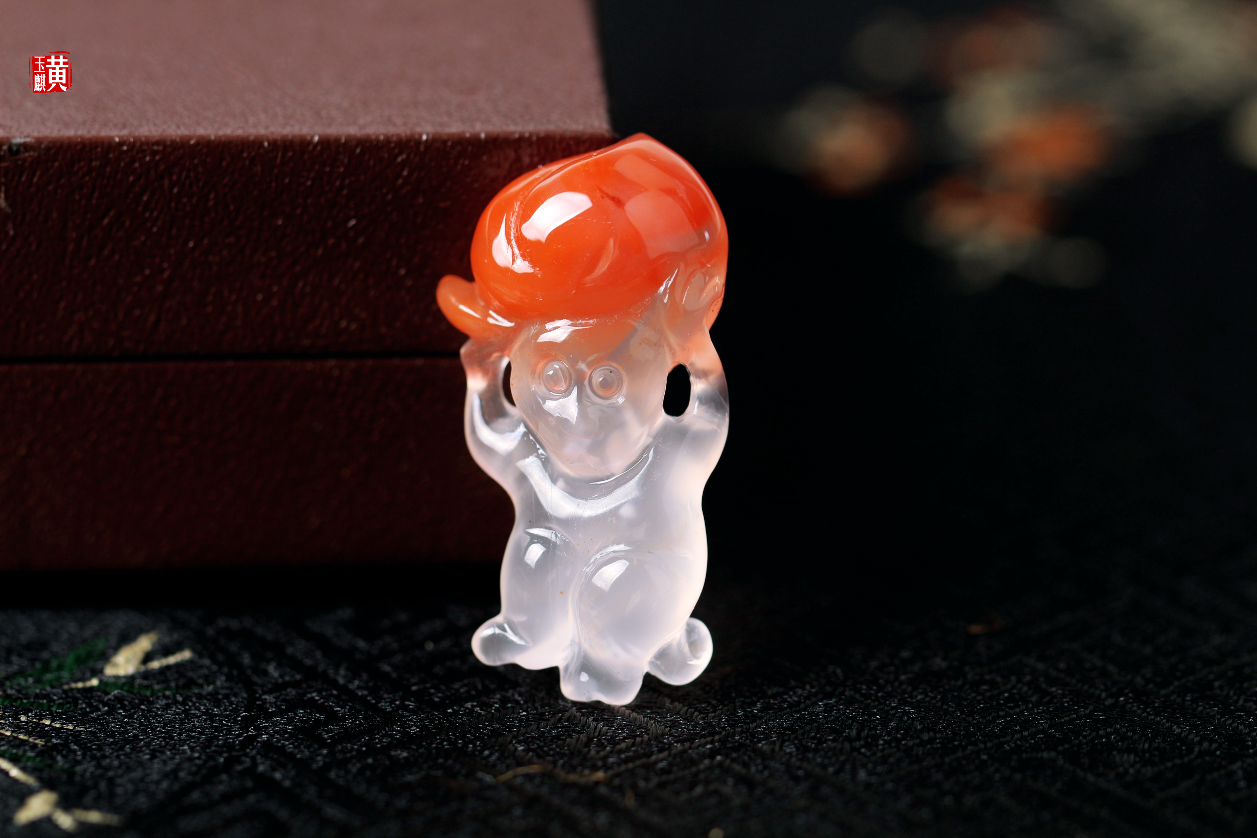南红冰飘【灵猴献瑞】吊坠 配精美挂绳