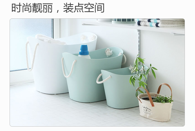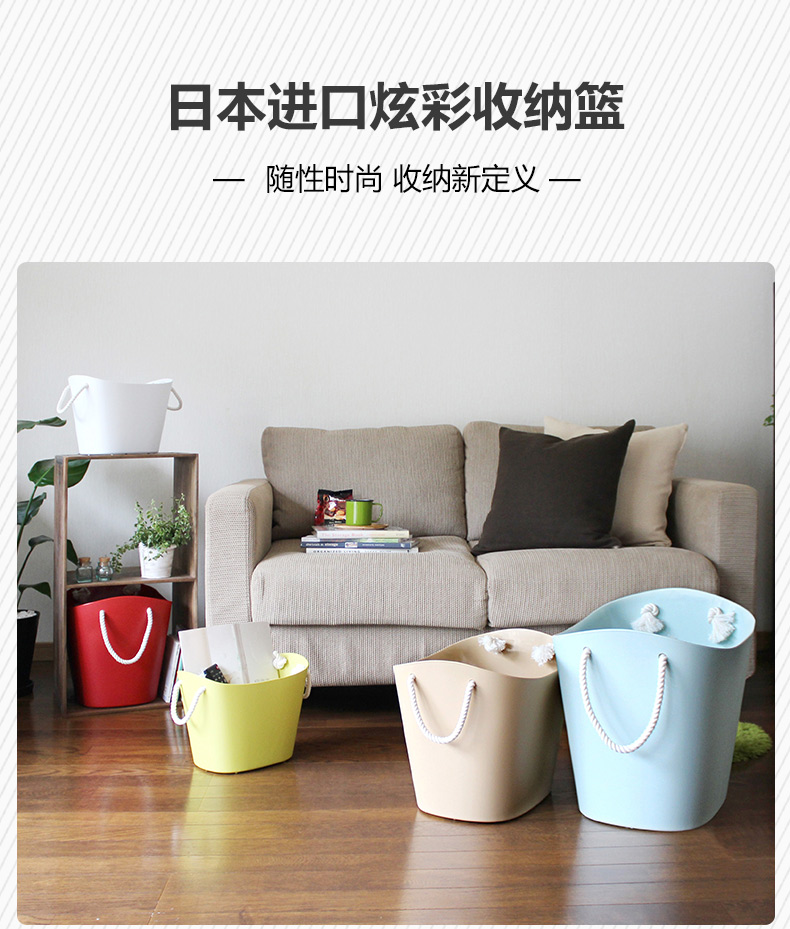 【6F】利快洗衣篮收纳筐日本进口脏衣篮柔性手提整理筐储物篮 蓝色19L