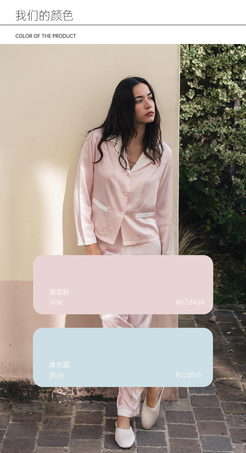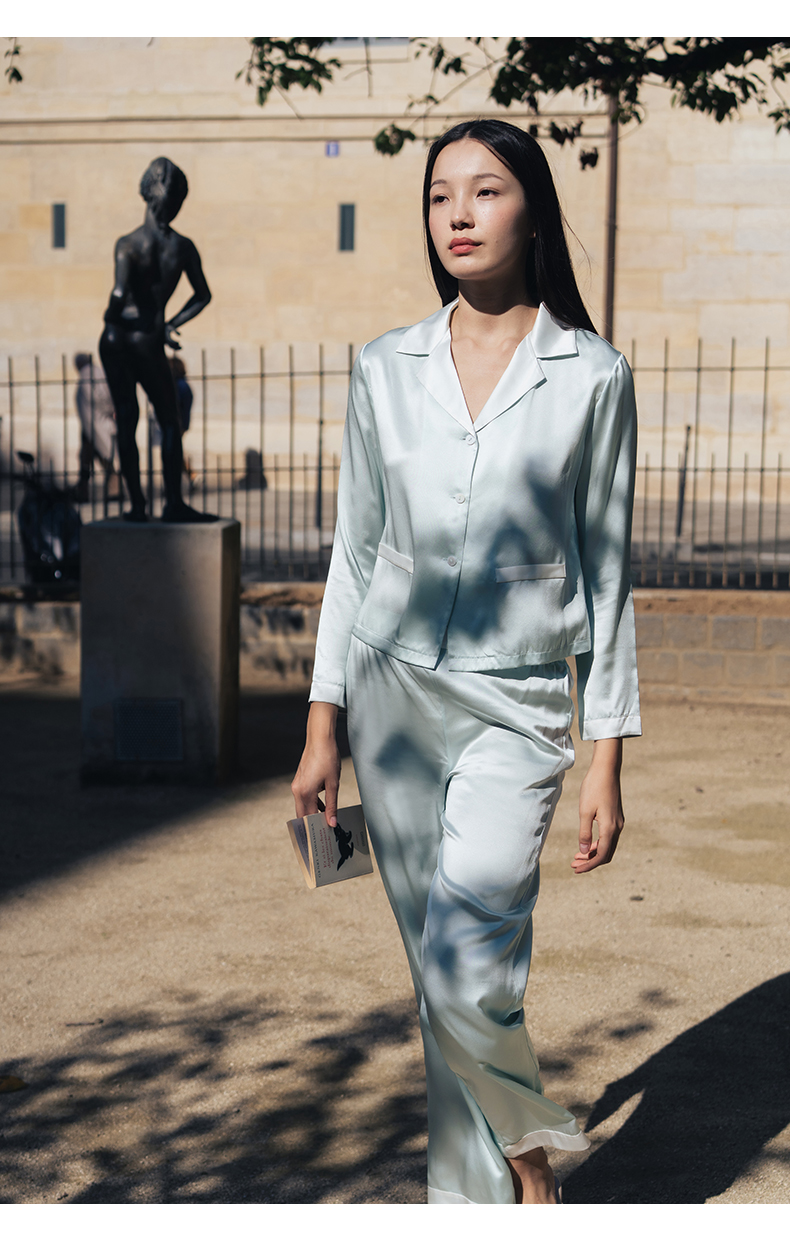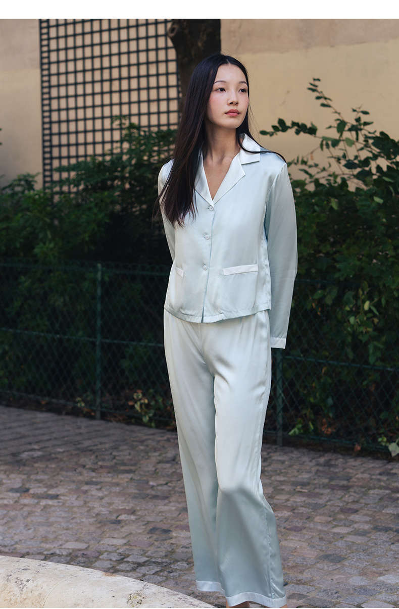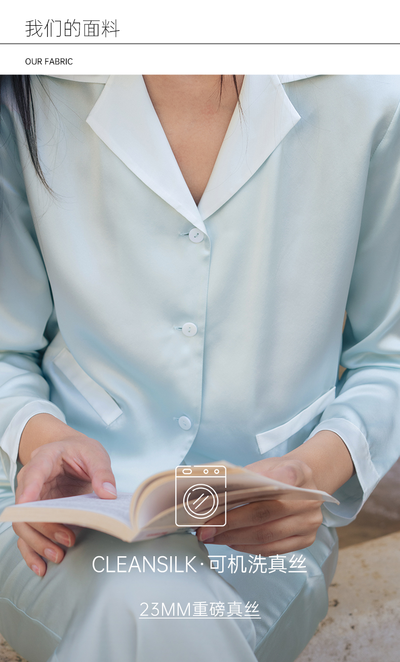 可机洗桑罗23姆米真丝睡衣套装100%桑蚕丝女长袖家居服可外穿