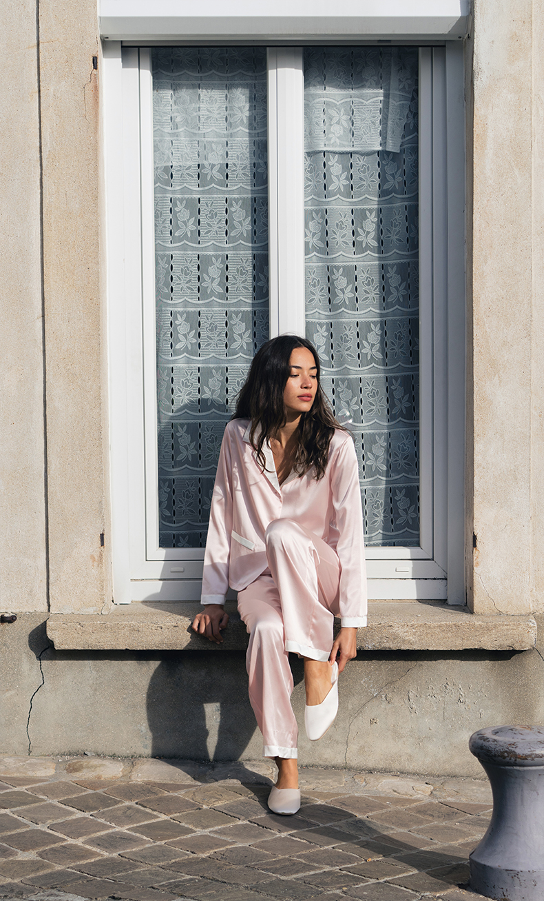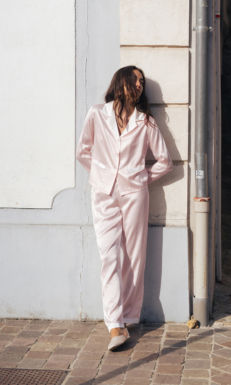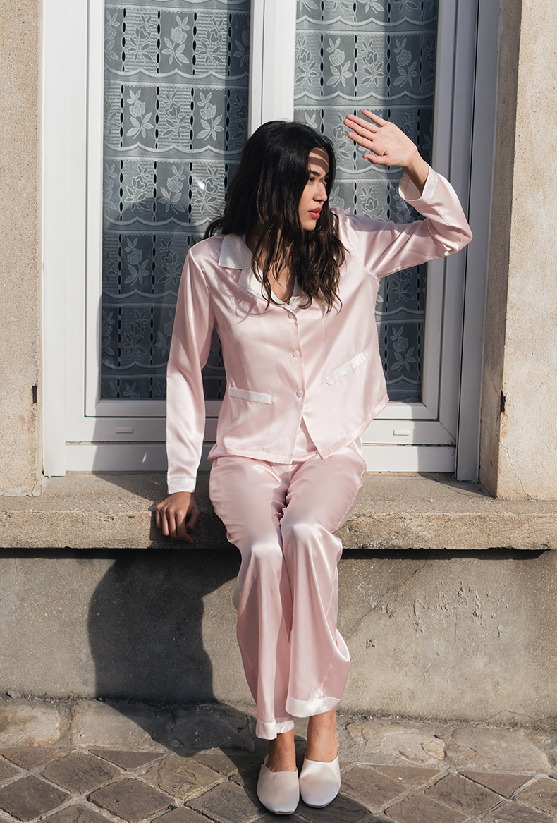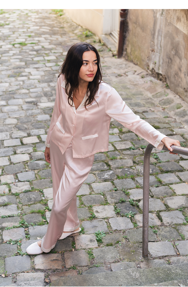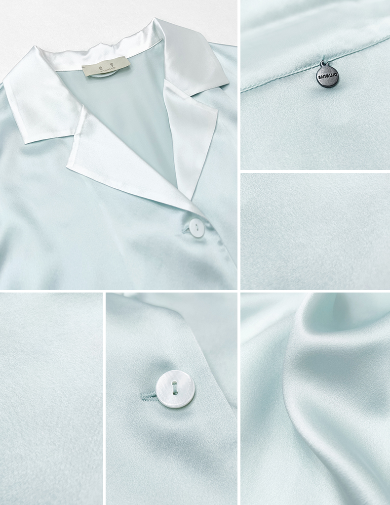 可机洗桑罗23姆米真丝睡衣套装100%桑蚕丝女长袖家居服可外穿
