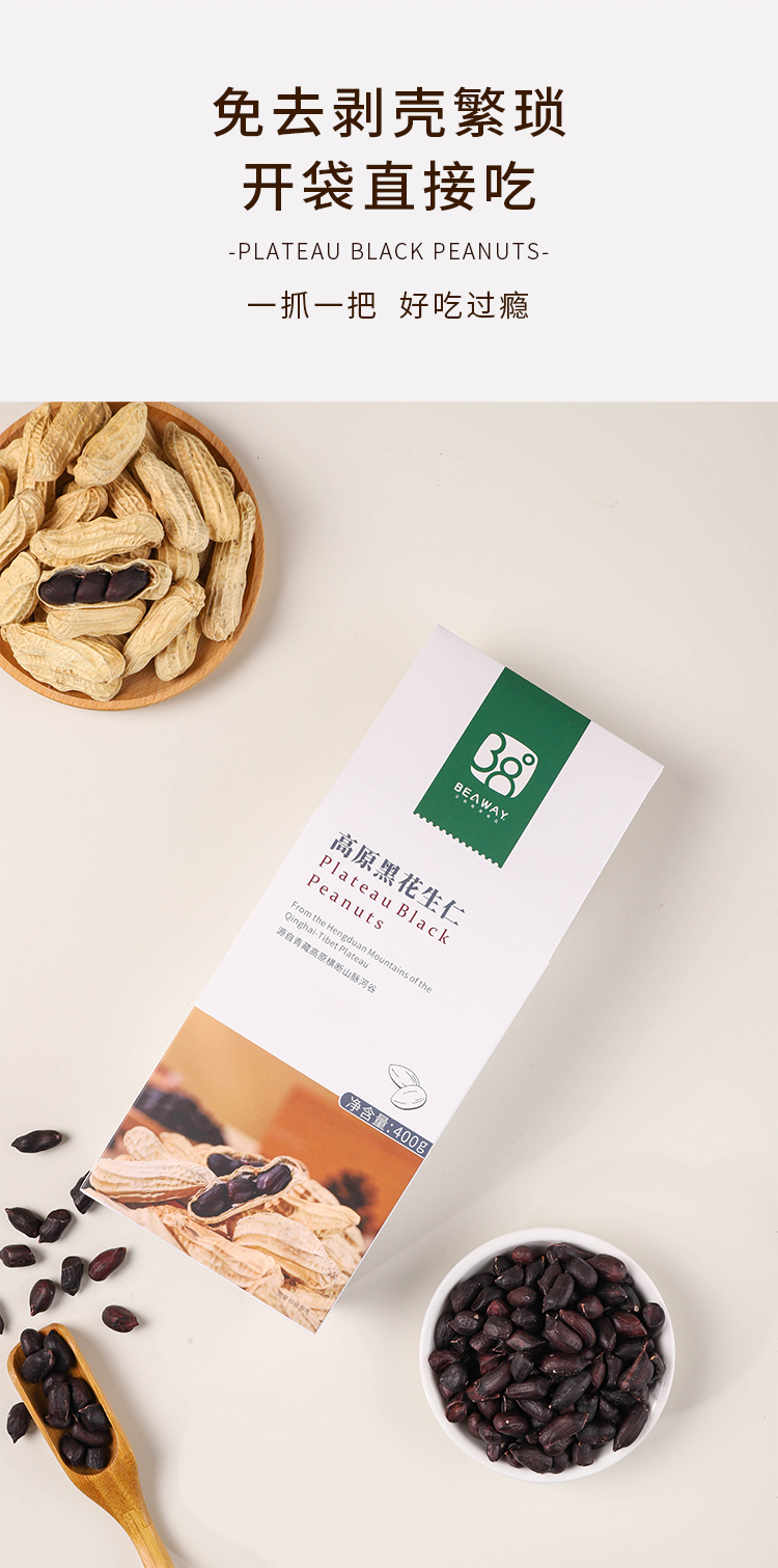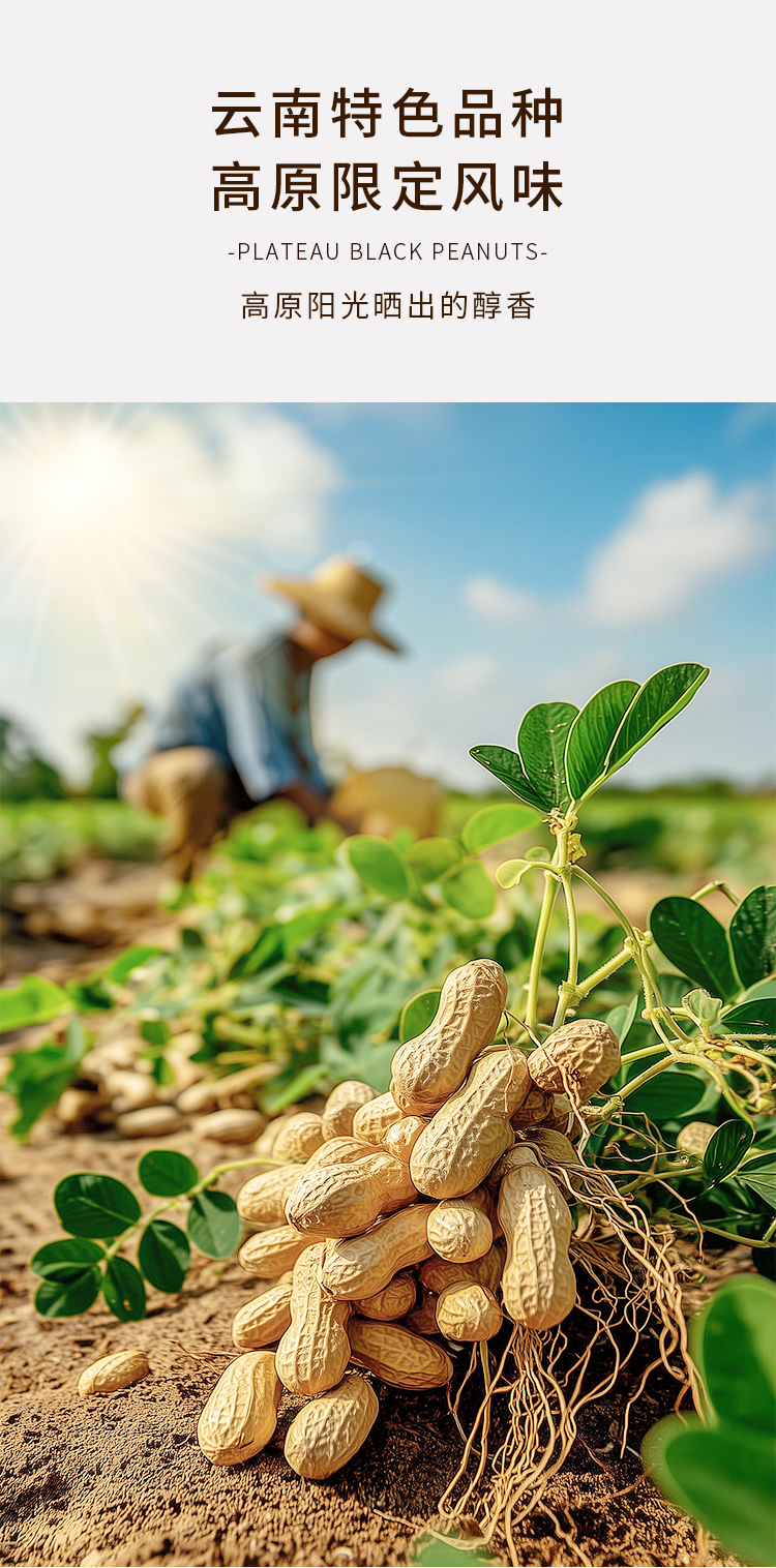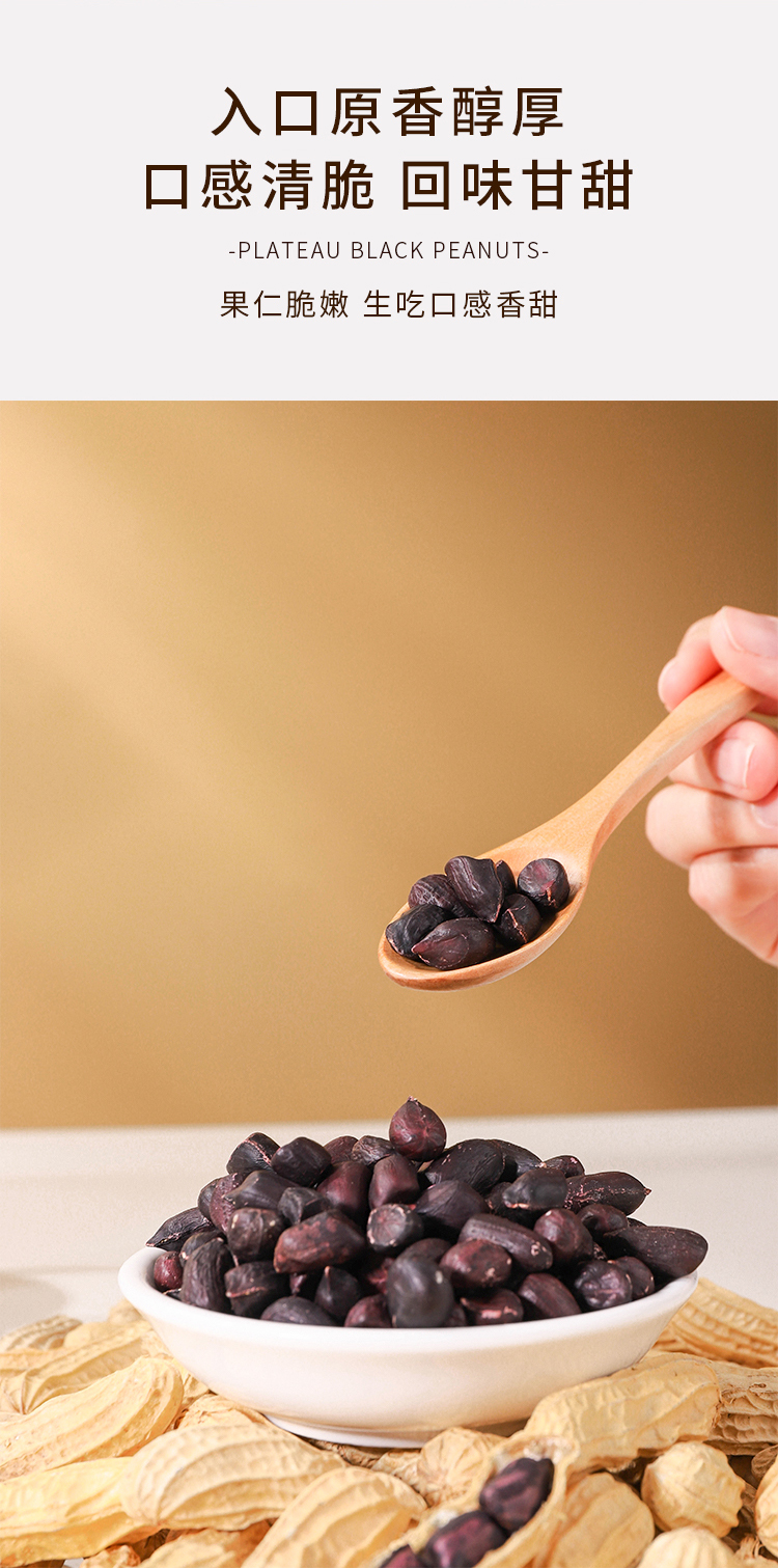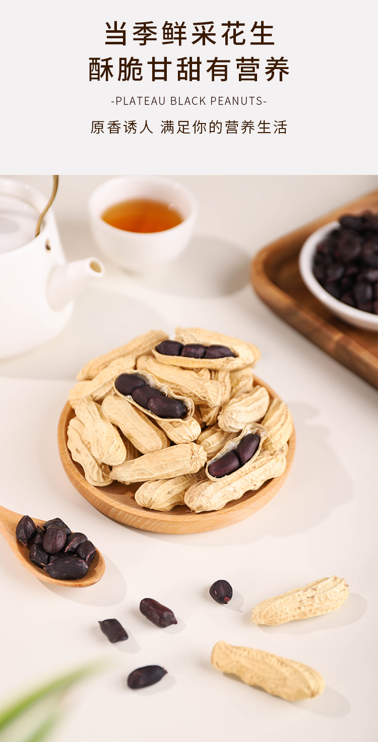 北纬纯净食品|38°云南高原黑花生原味生晒无烘烤去壳生紫花生