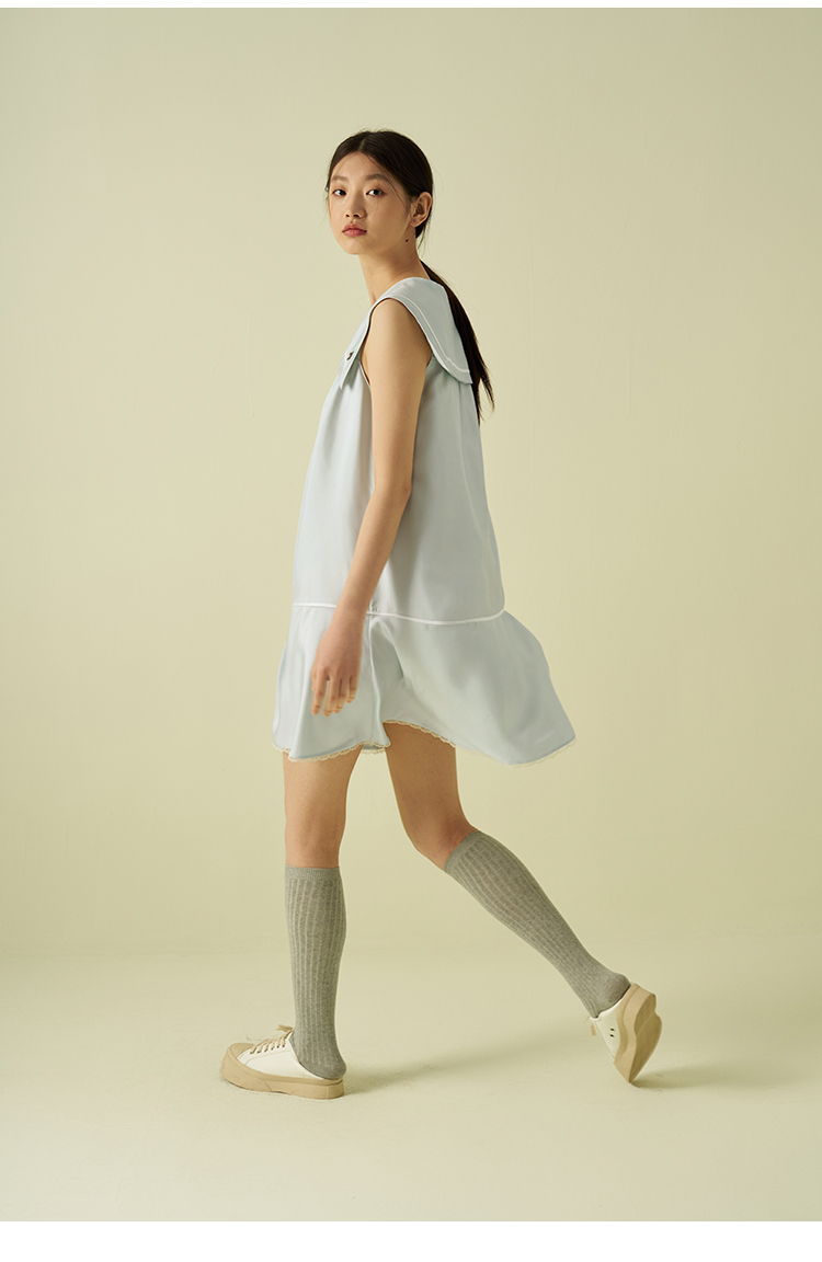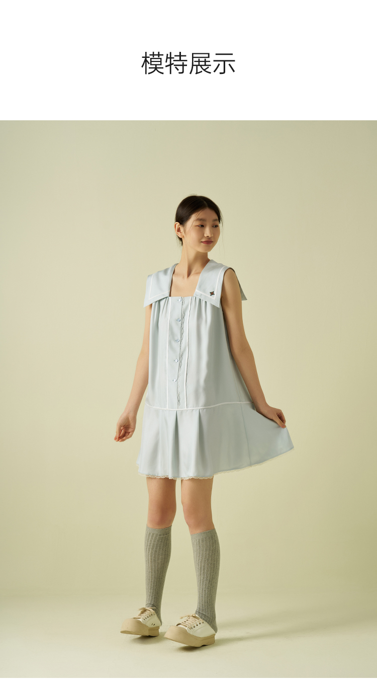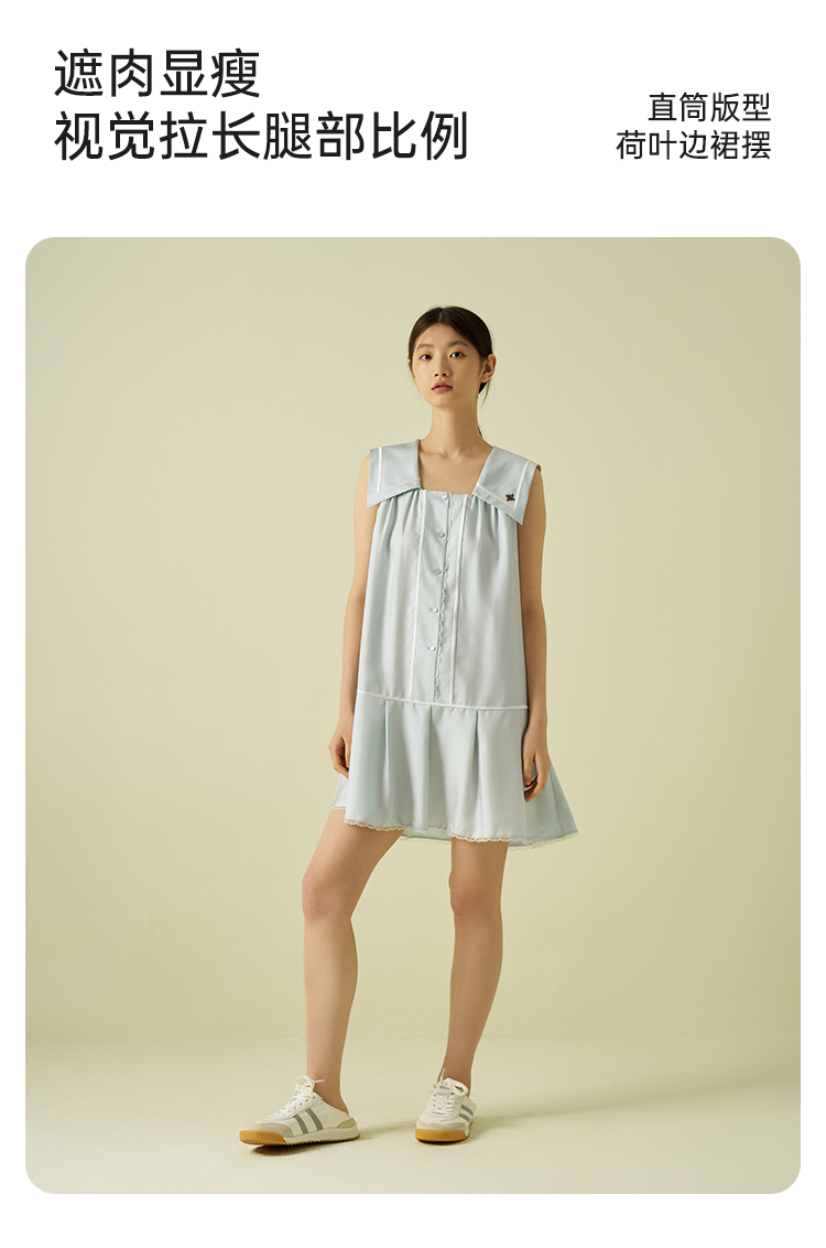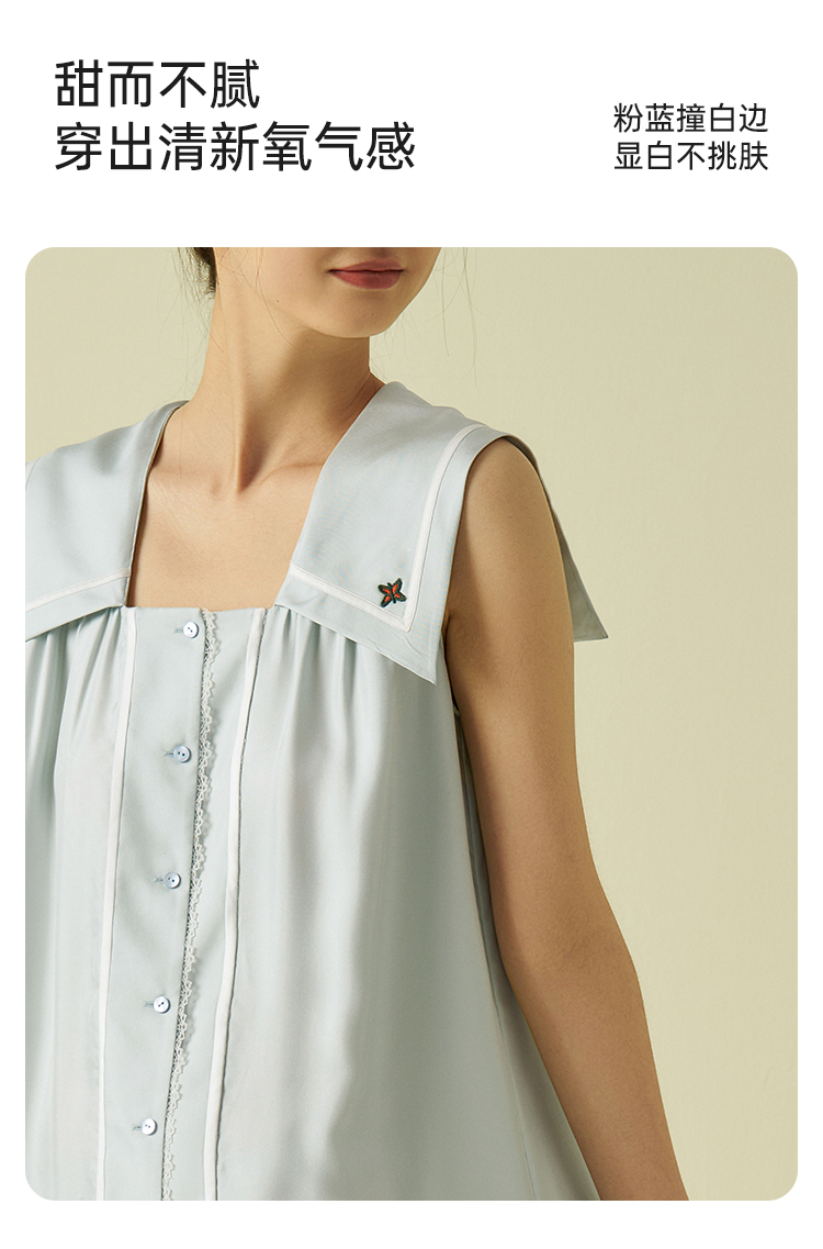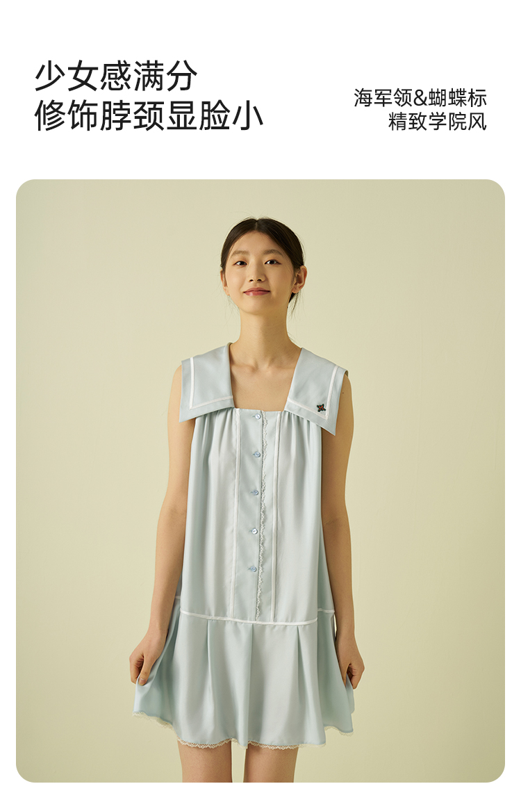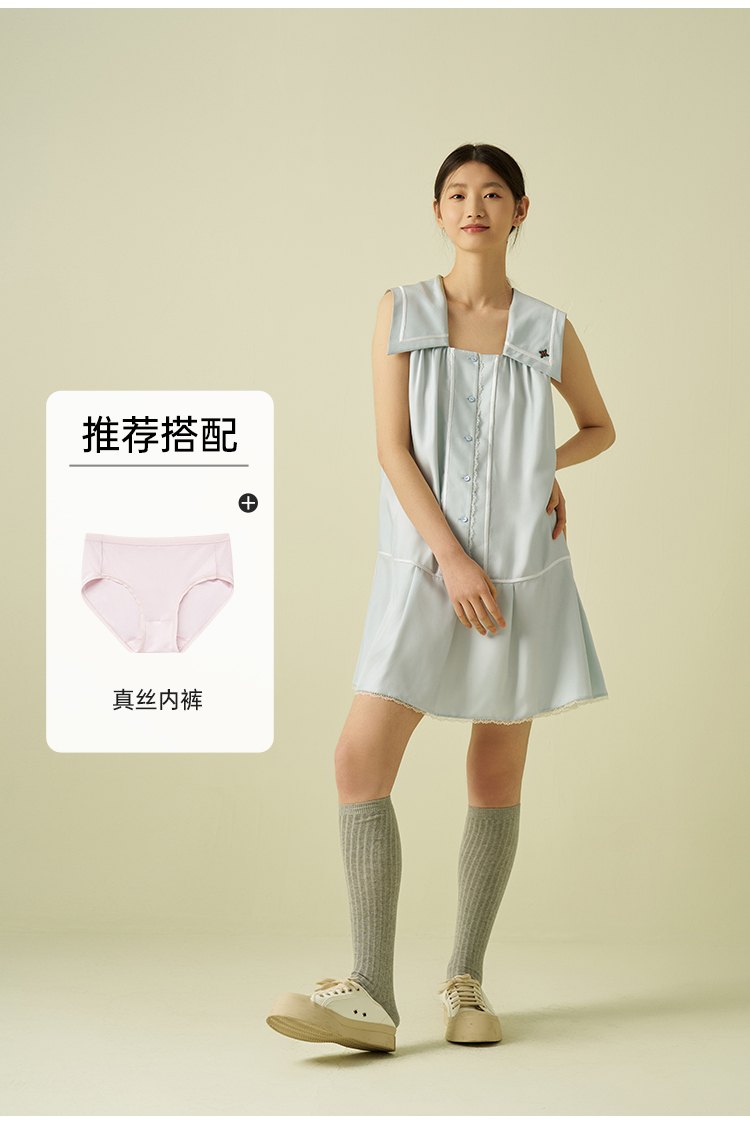 桑罗海军风真丝无袖连衣裙100%桑蚕丝休闲度假风女夏2025年新款