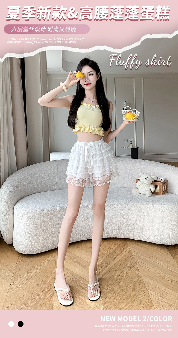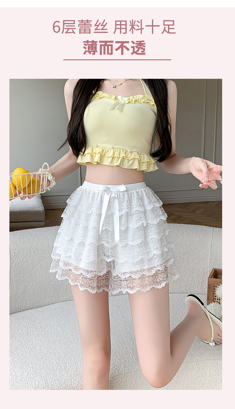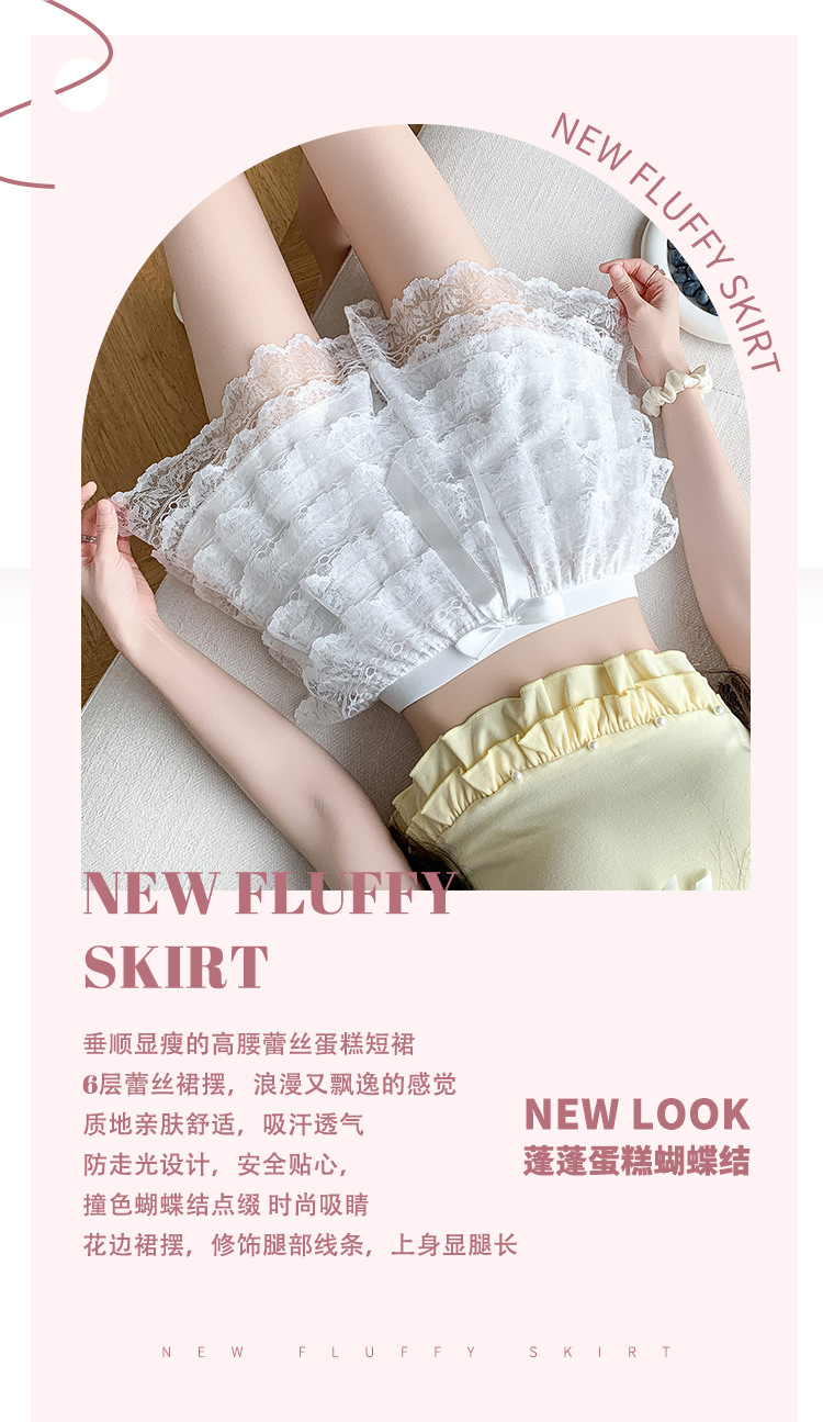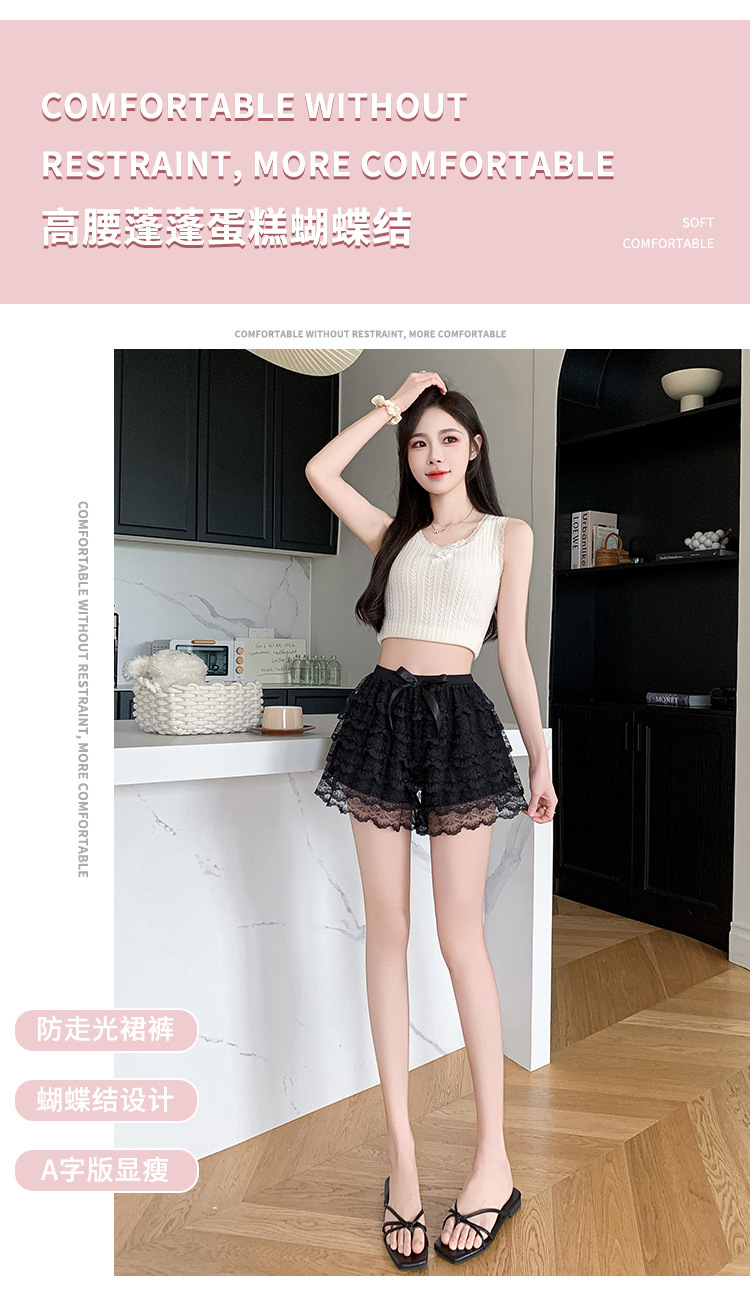 【超美❗️蕾丝蝴蝶结安全裤】垂顺显瘦,防走光裙裤,高腰收腹遮胯!新款蓬蓬蛋糕六层宽松薄款防走光三分透气打底短裤女
