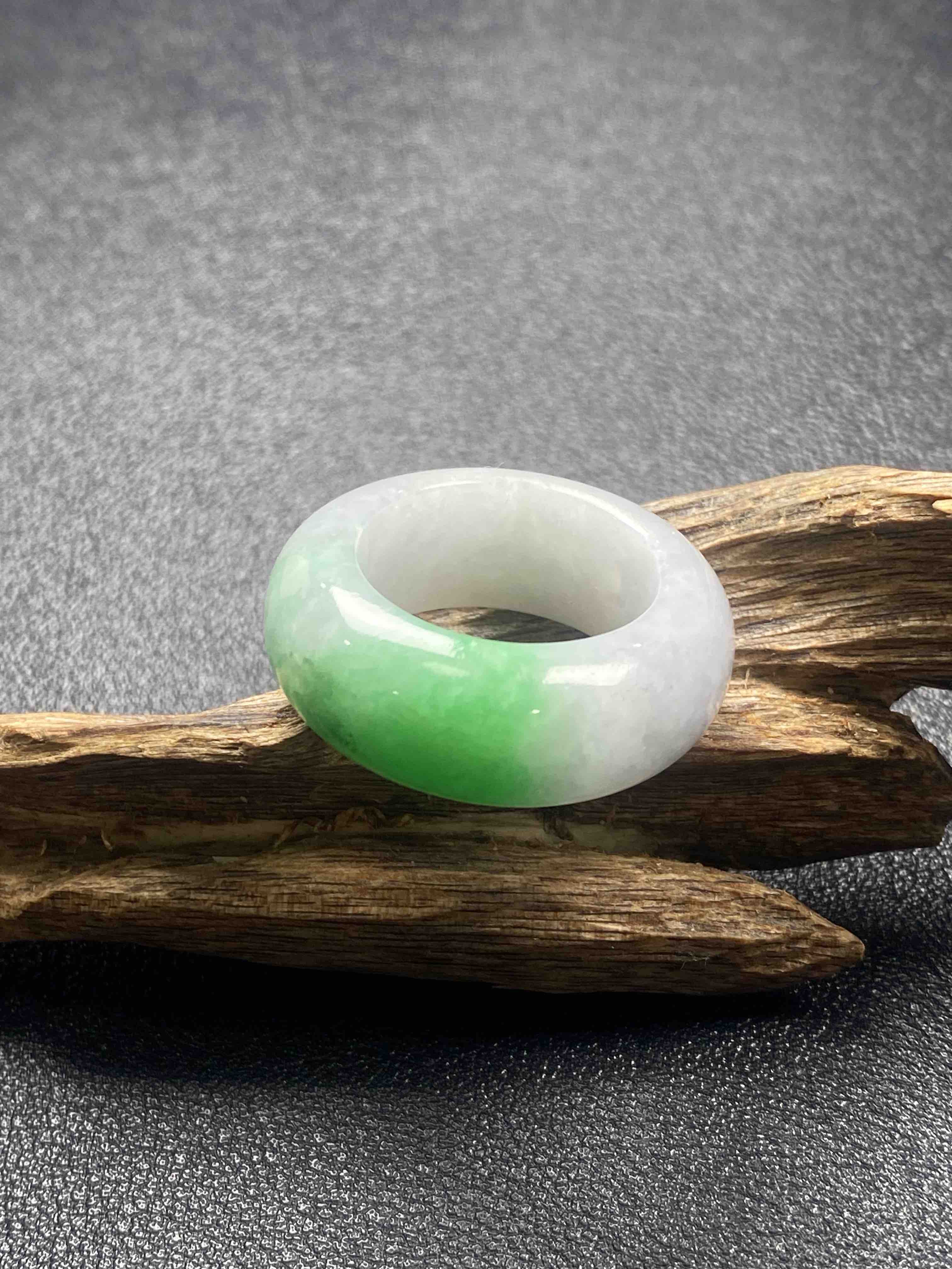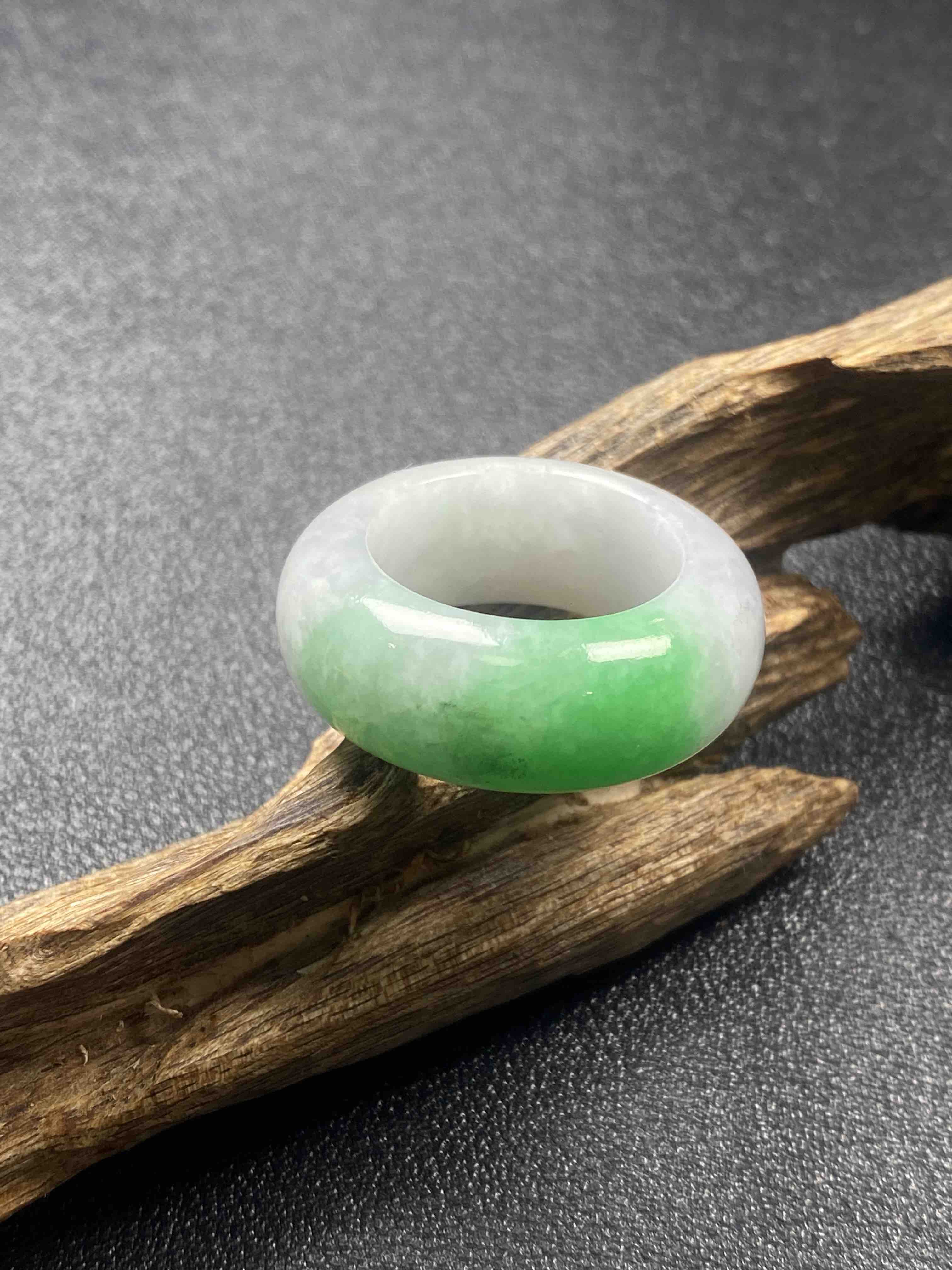 【FC0136】翡翠白底青指环 厚庄饱满 色泽阳绿 圈口20裸石尺寸:30.3*10.8*5.7mm 超值价💰5000