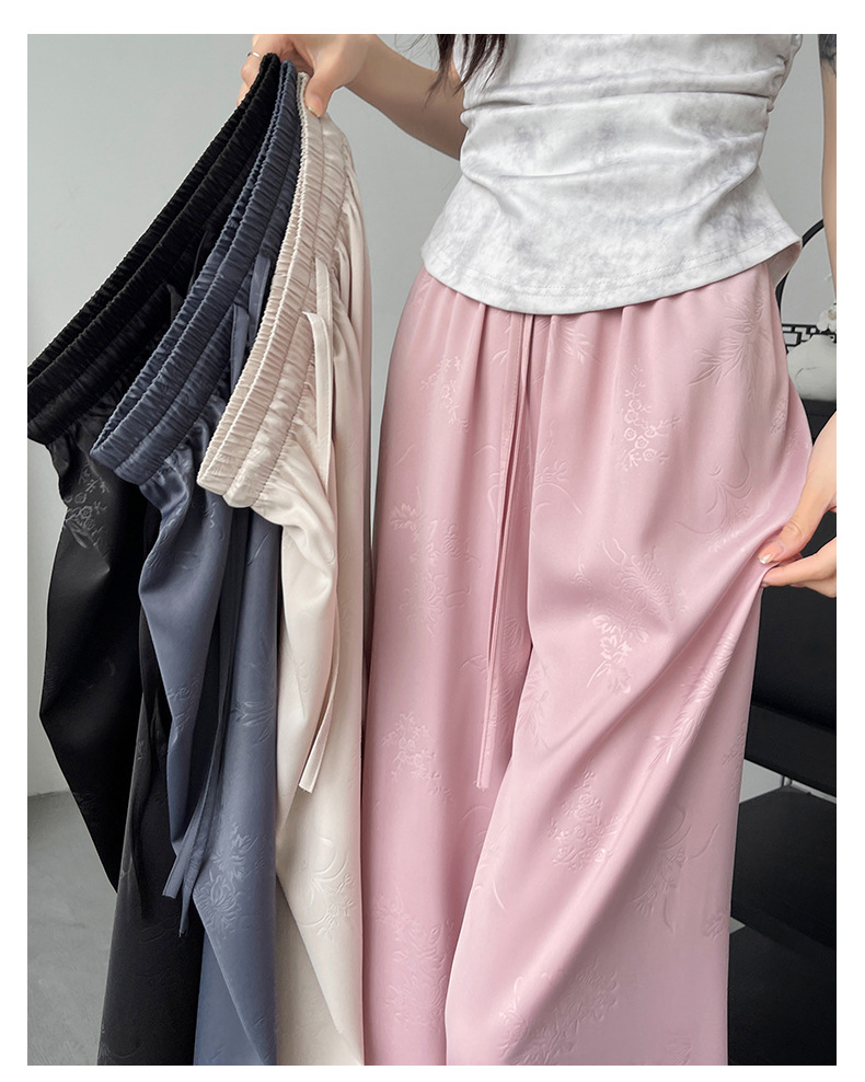 烟雨入江南,花草衔提花!【显瘦新中式国风阔腿冰丝裤】舒适亲肤感,柔软透气不闷吸湿性强,3D立体裁剪设计特色花纹面料,轻薄美观冰凉速干,拯救微胖身材【有书私享】