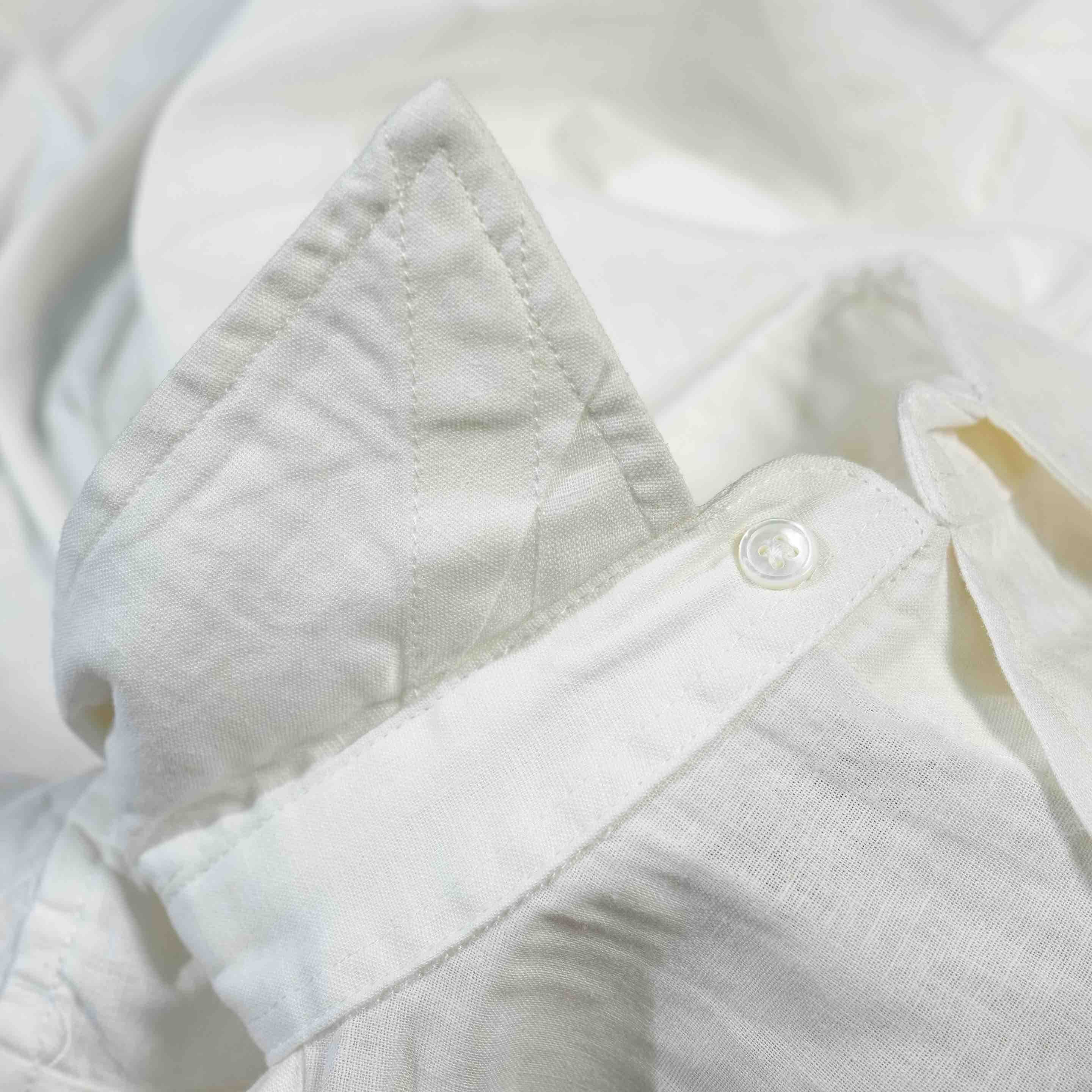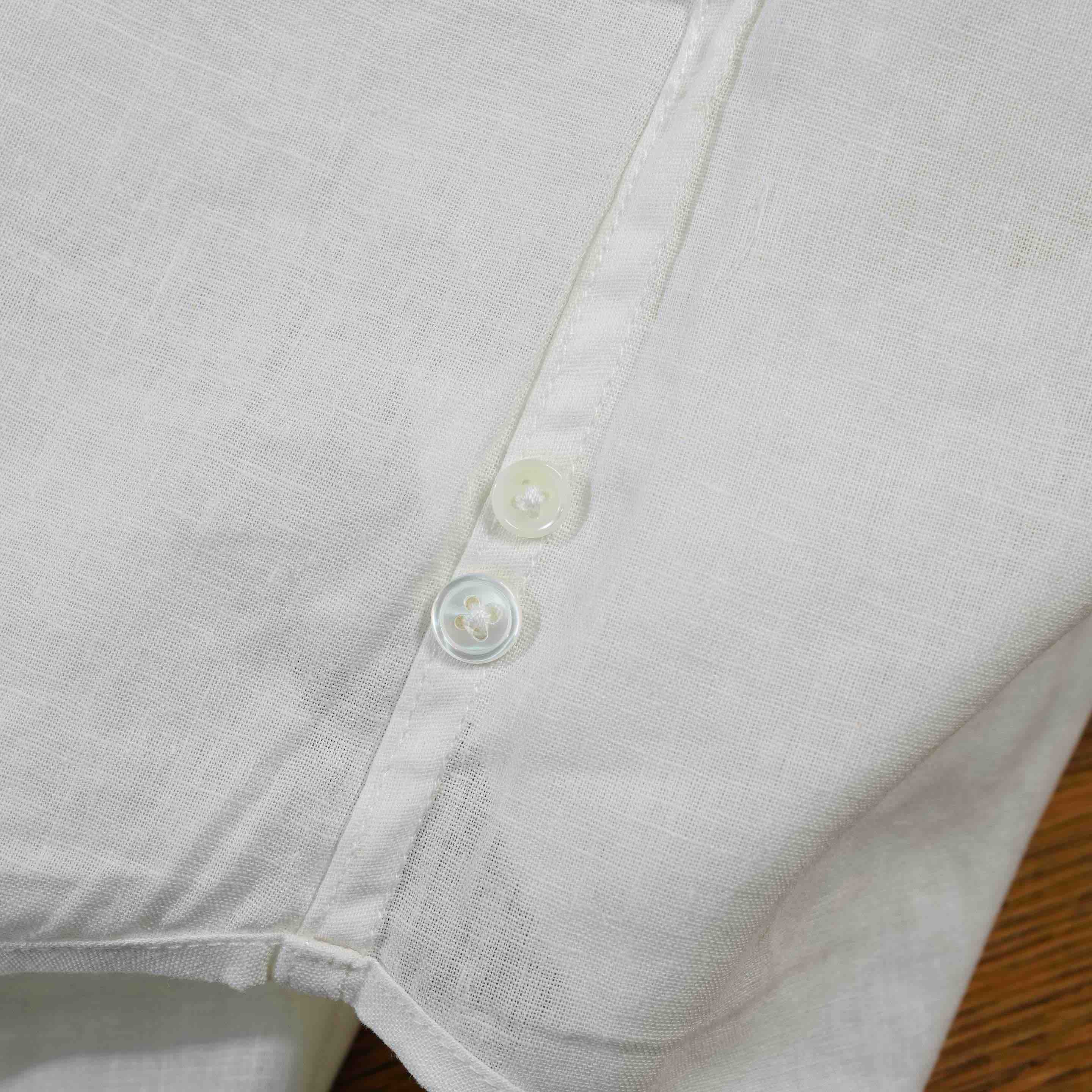 衬衫背后肩膀中间打折工艺也是这款衬衫亮点,加上后副椭圆版型,使衬衫上身后敞开或扣上纽扣都很好看,松弛慵懒又不丢一丝丝正式~