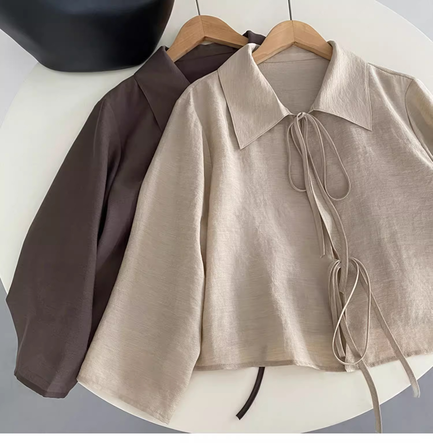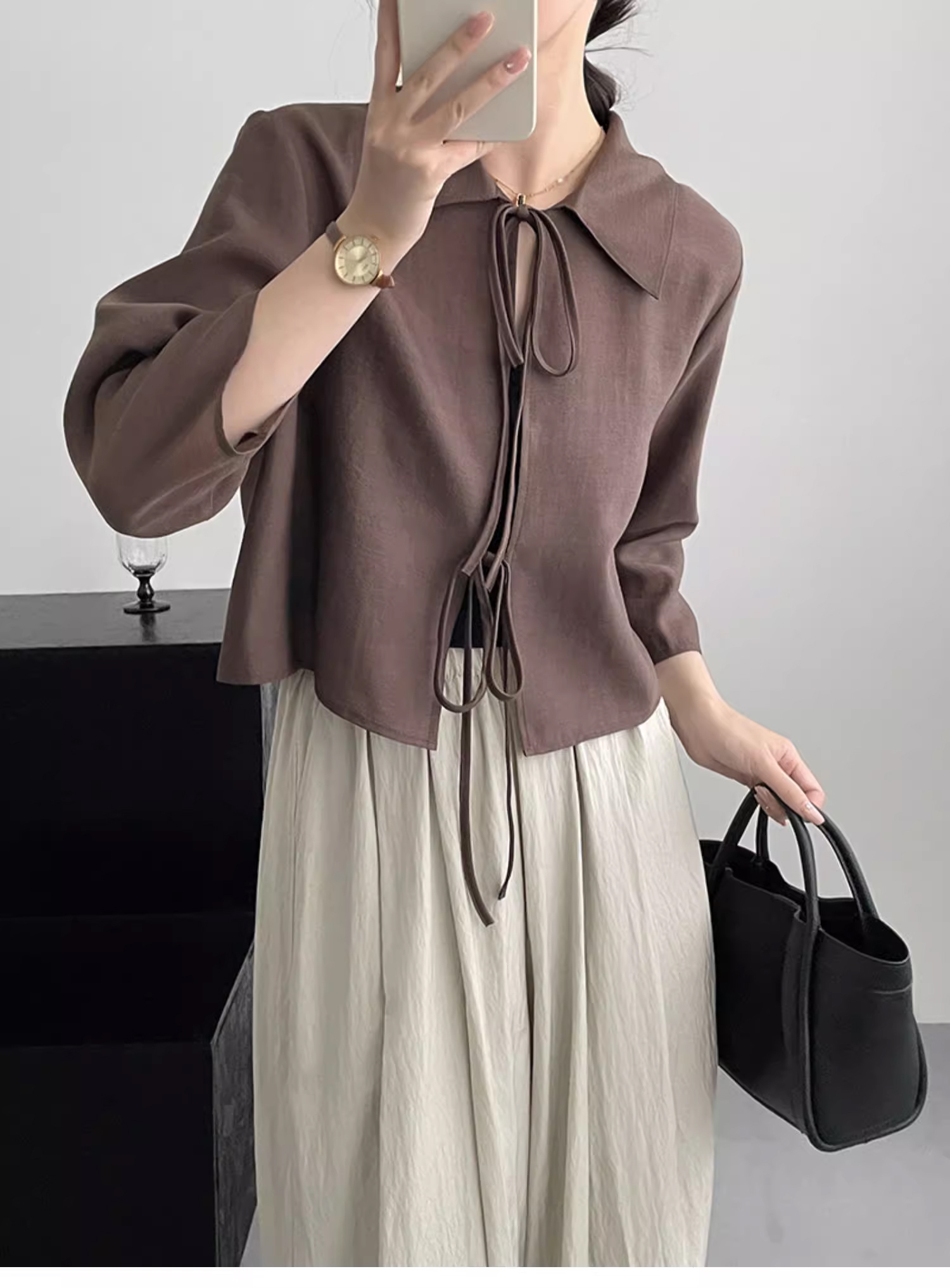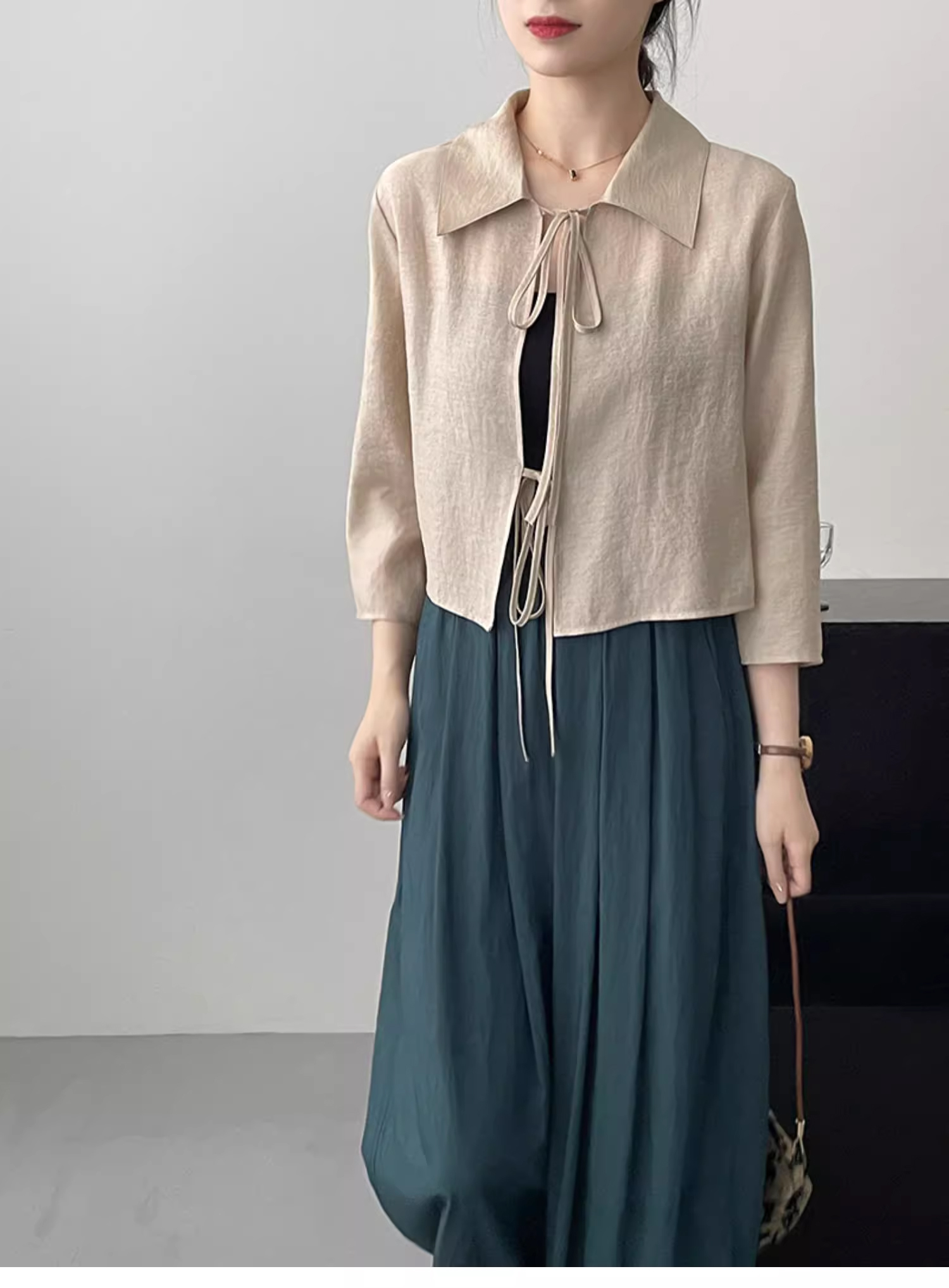 裁缝学苑AQ260新中式国风女装衬衫纸样系带七分袖衬衣上衣样板