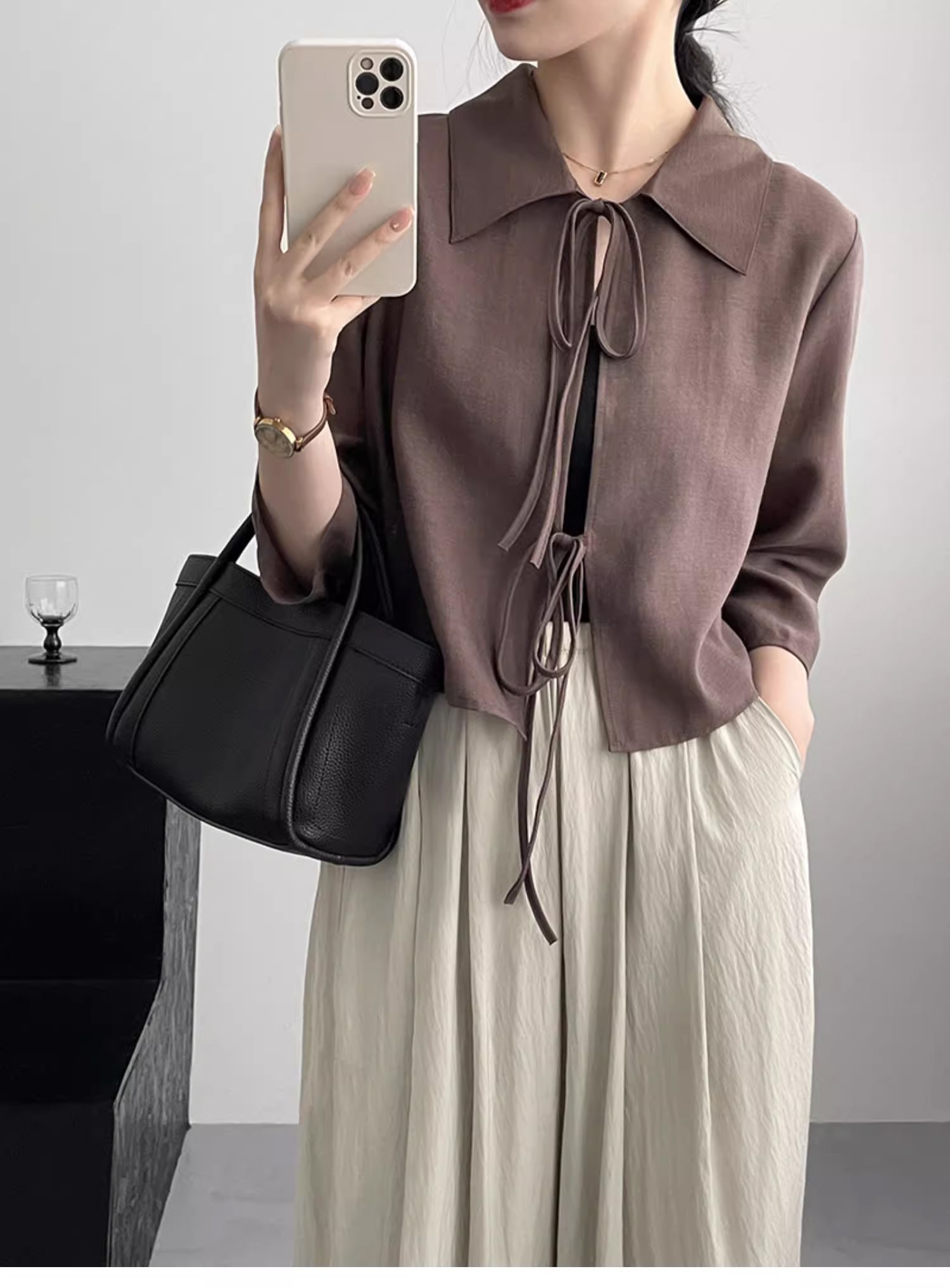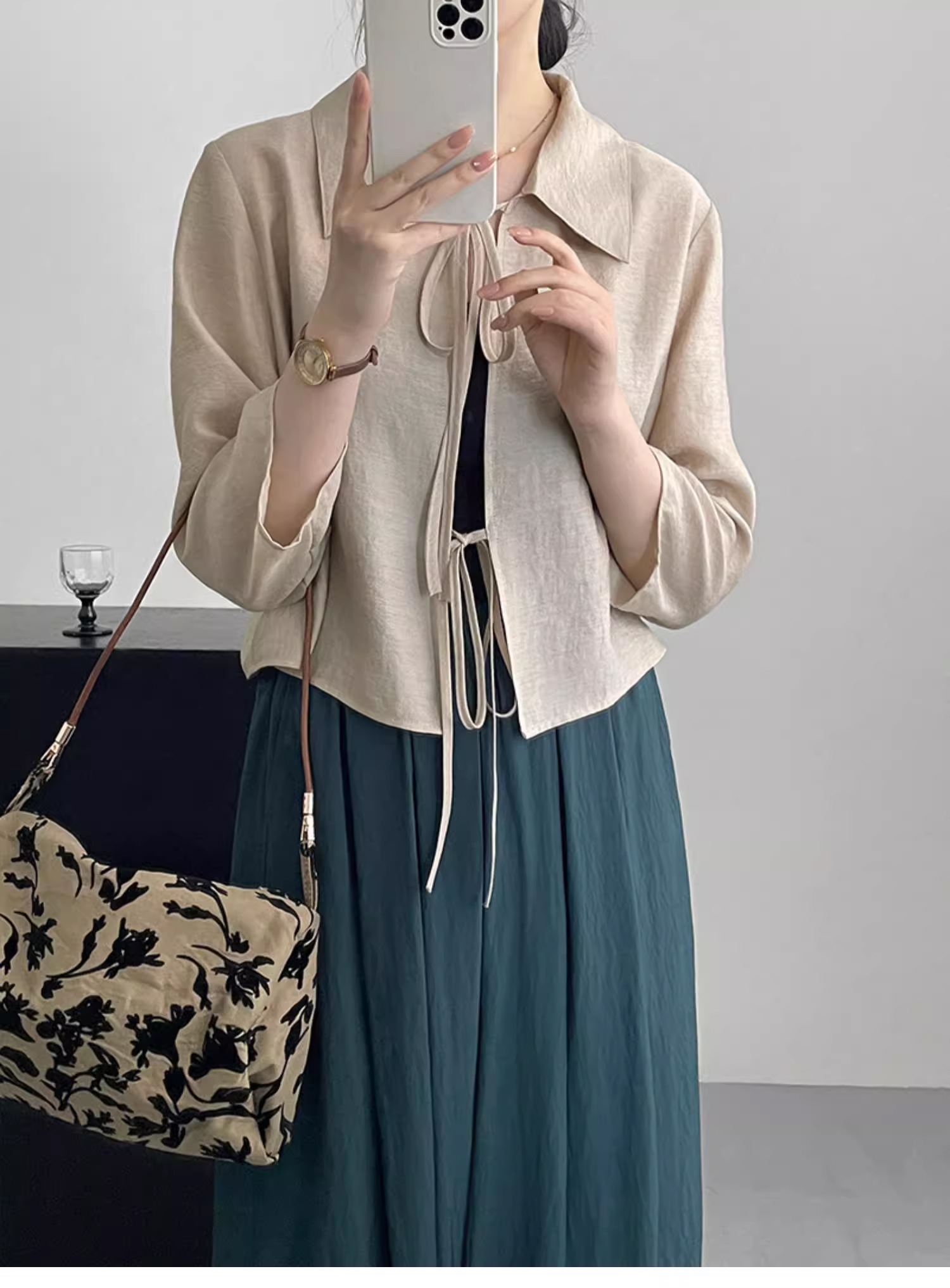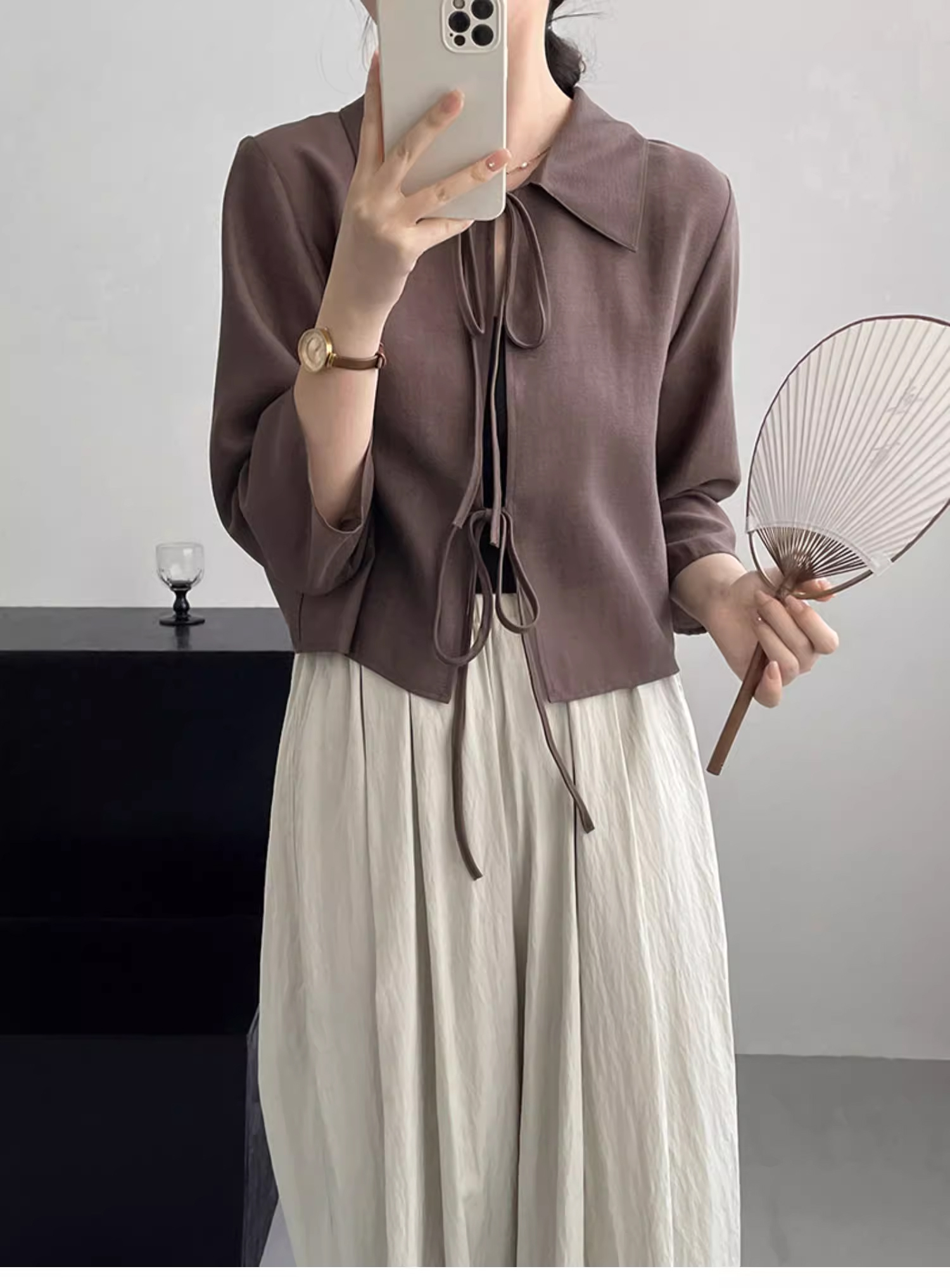 裁缝学苑AQ260新中式国风女装衬衫纸样系带七分袖衬衣上衣样板